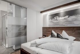 Die Alpen Panorama Appartements für 4 Personen begeistern mit zwei Doppelzimmer, einem Badezimmer mit Badwanne, separatem WC und Doppelwaschbecken sowie einem Badezimmer mit Dusche, Doppelwaschbecken und Haartrockner. Großer Ess- Wohnbereich mit allen Annehmlichkeiten. Jedes Appartement verfügt über 3 Flat-Screen-TVs und einen Süd-Ost- oder Süd- Westbalkon.