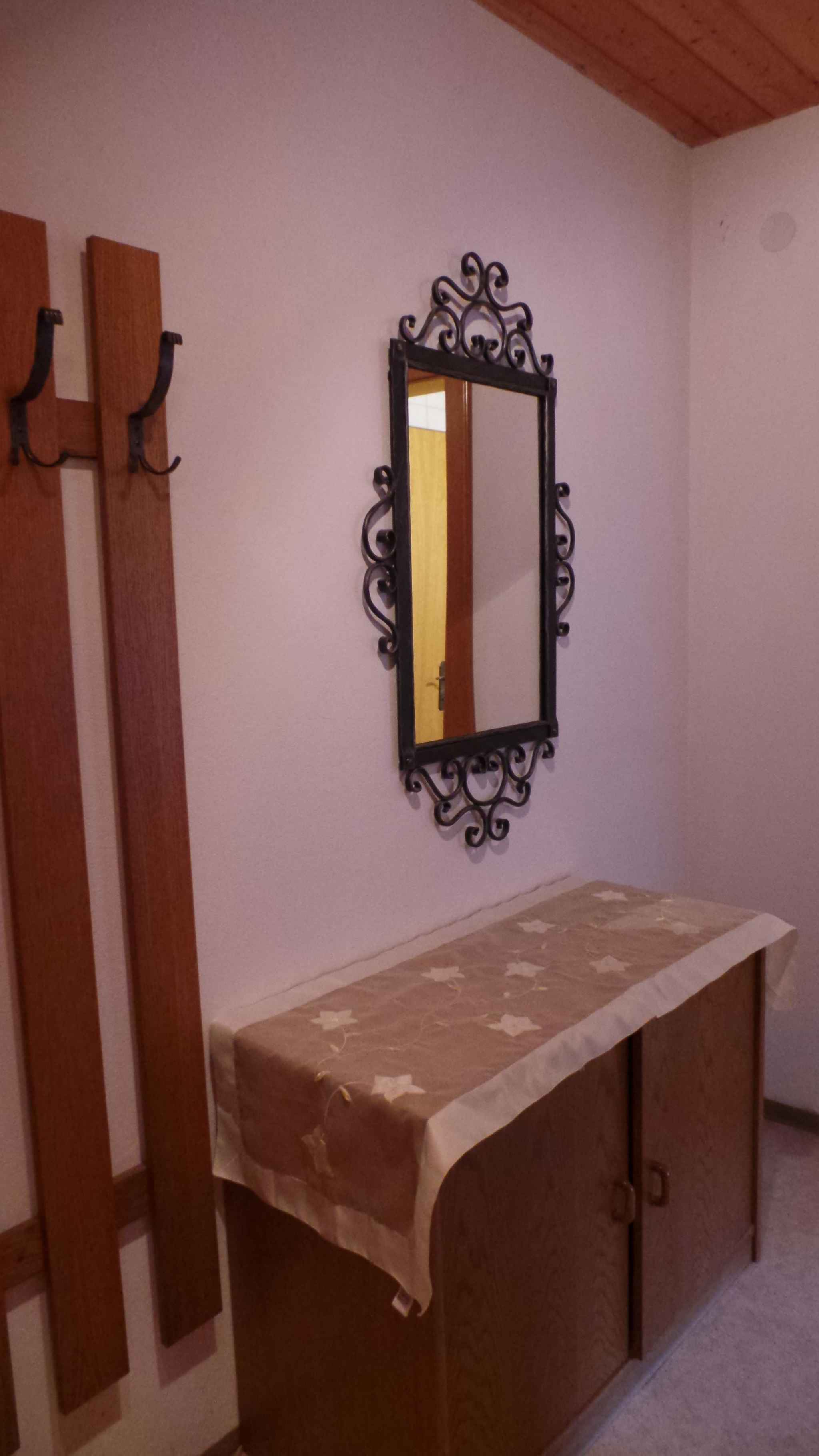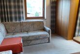 und führt über eine Innentreppe. Die Zimmer teilen sich wie folgt auf: Wohn/Schlafzimmer mit 1 Zusatzbett auf Couch/Sofa, Essecke und TV. Sie haben Zugang zum Balkon. Schlafzimmer mit 1 Doppelbett. Kochnische mit Elektroherd (2 Platten), Kühlschrank und Kaffeemaschine. Bad mit Dusche und WC. TV- bzw. Rundfunksender können per Satellit empfangen werden.