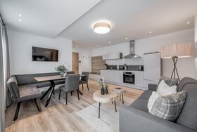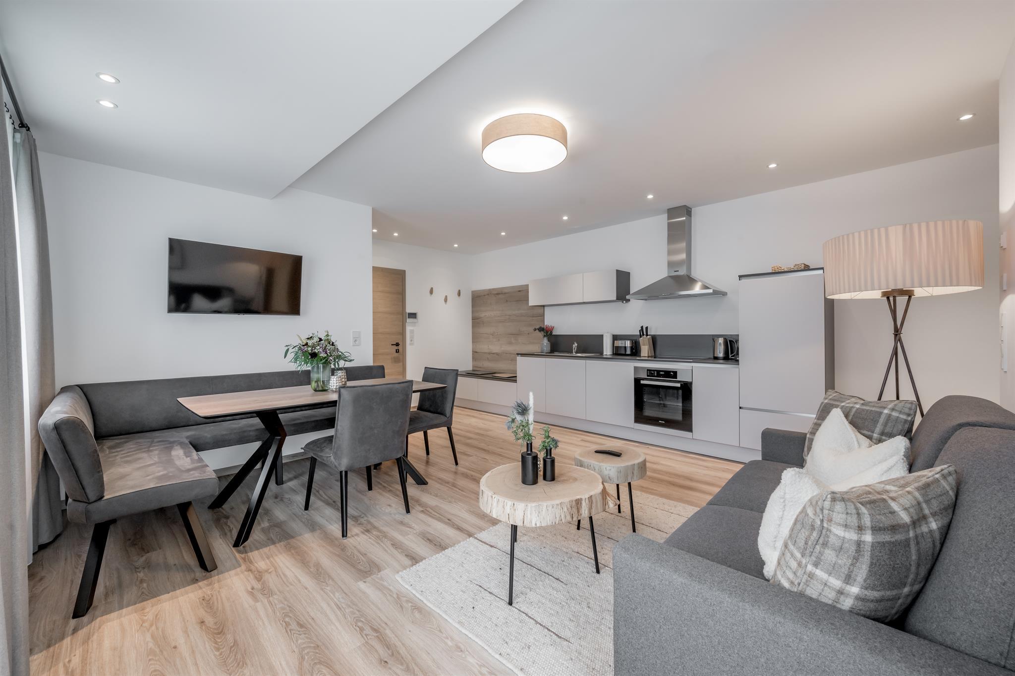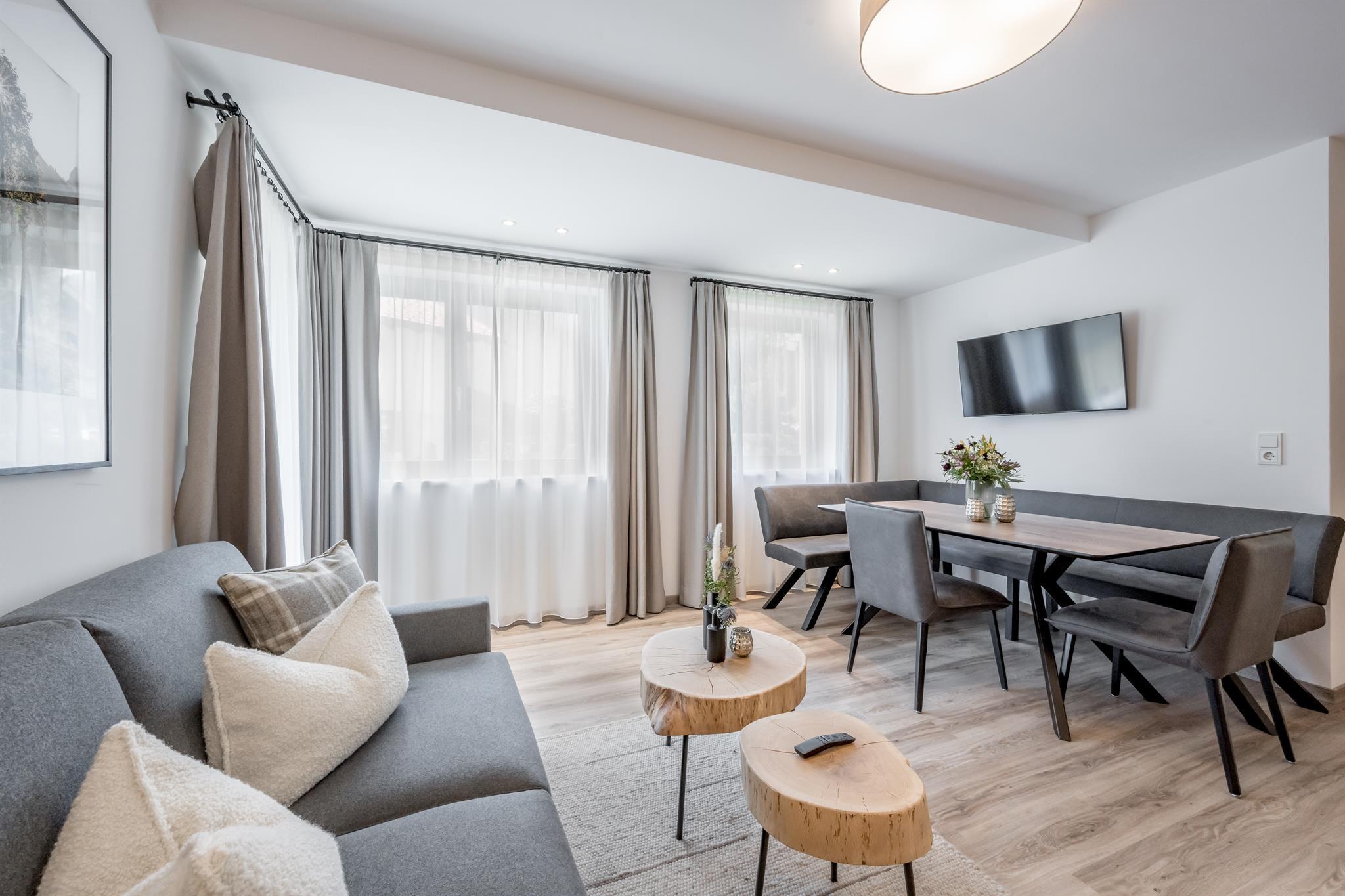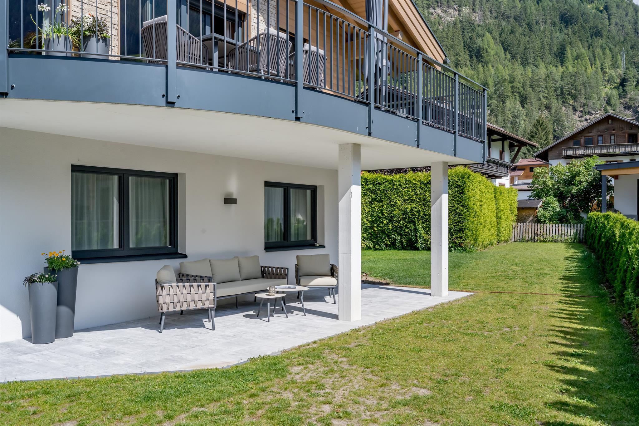 Unser NEUES und MODERNES Appartement befindet sich im Erdgeschoss mit direktem Zugang zum Garten und bietet Ihnen: 2 Doppelzimmer mit jeweils TV und einem Badezimmer mit Dusche/WC; 1 Vorraum mit Garderobe; 1 voll ausgestattete, moderne Wohnküche (Induktionsherd, Wasserkocher, Kaffeemaschine uvm.) mit gemütlichem Essbereich und Sofa (Schlafsofa für 2 weitere Personen). Genießen Sie die Ötztaler Bergluft im Garten oder auf Ihrer Terrasse mit ca. 60 m². Größe des Appartements ca. 66,50 m²