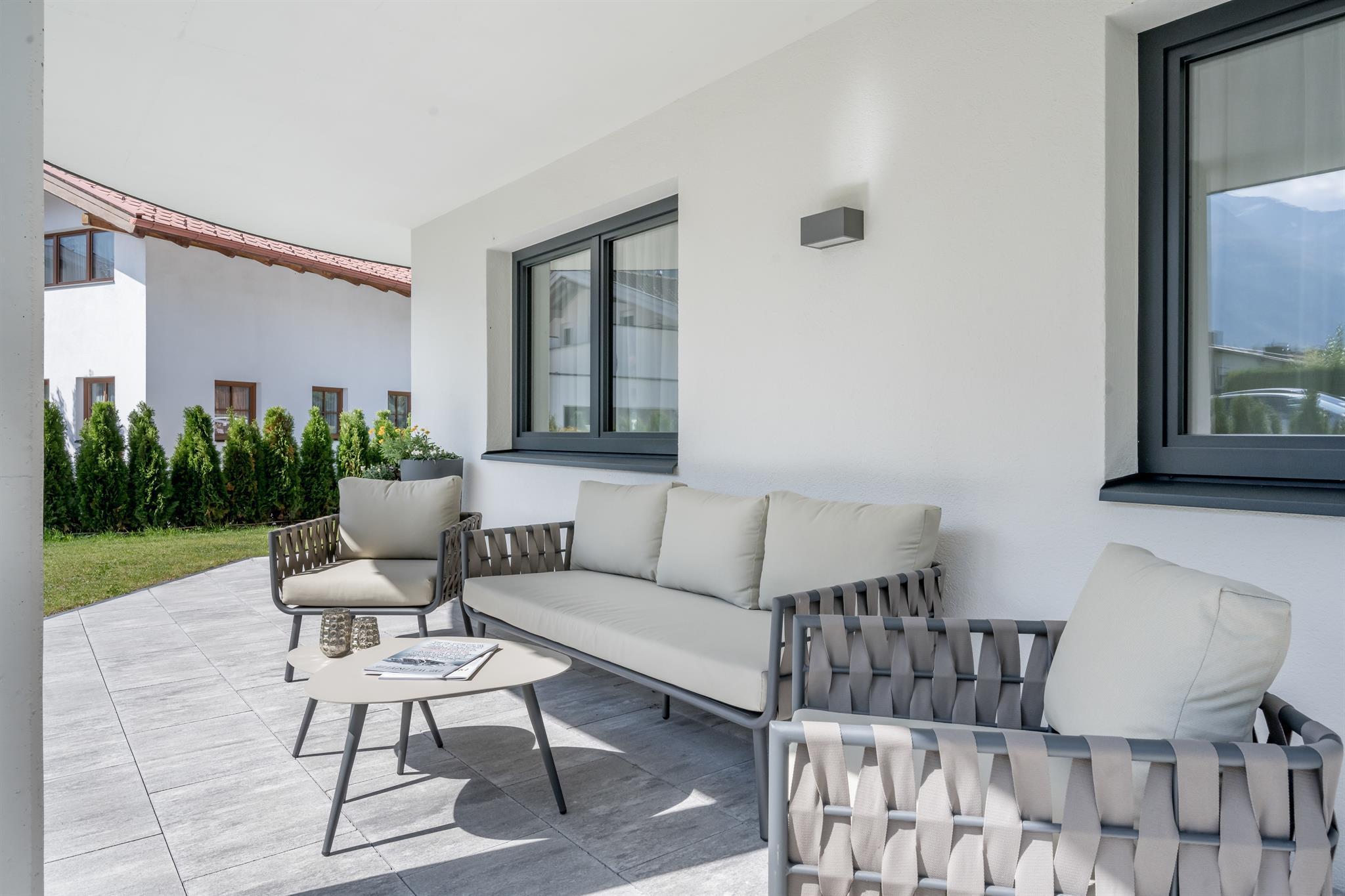 Unser Alpenchalet Tirol mit Natur-Holzböden, verzaubert Sie mit einem Hauch Luxus und Gemütlichkeit. 4 Doppelzimmer, 4 Badezimmer mit Dusche oder Badewanne und WC; 1 separates WC, Vorraum mit Garderobe; 2 voll ausgestattete, moderne Wohnküchen (Induktionsherd, Wasserkocher, Kaffeemaschine uvm.) mit gemütlichem Essbereich und Schlafsofa für 2 weitere Personen, 1 Galerie/Bibliothek zum Entspannen. Das Highlight im Obergeschoss ist ein Kamin, der den Wohnraum von der Galerie trennt. Die Terrasse im Obergeschoss mit ca. 40 m² bietet Ihnen eine herrliche Aussicht auf die Ötztaler Alpen. Genießen Sie die Bergluft im Garten oder auf Ihrer Terrasse im Erdgeschoss. Als Gast unseres Alpenchalet Tirol steht Ihnen ein Garagenplatz kostenfrei zur Verfügung.