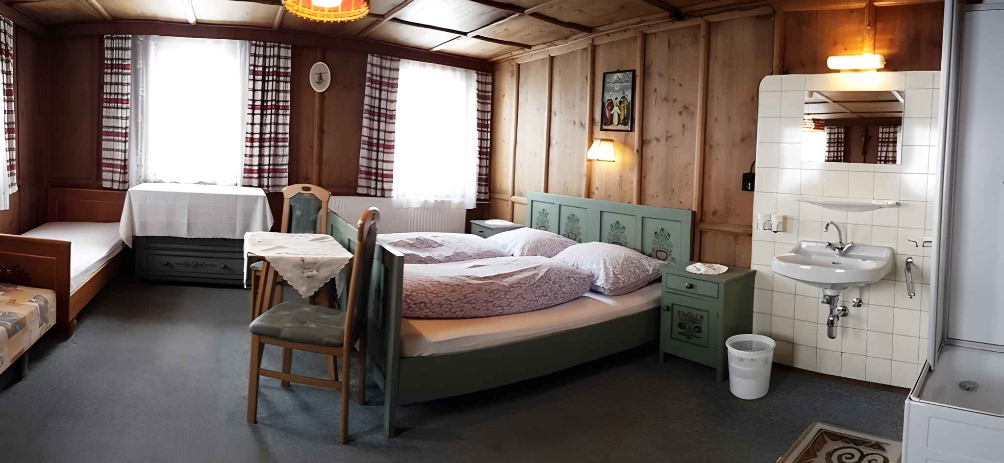 Ihre Ferienwohnung erstreckt sich über 2 Etagen, 5 Zimmer (davon 4 Schlafzimmer), ist 110 qm groß und ist für maximal 10 Personen geeignet. An kälteren Tagen kann Ihre Ferienwohnung beheizt werden mit Zentralheizung. Der Eingang ist im Erdgeschoss und führt über 5 Stufen direkt in den Flur mit Türen zu allen Räumen. Die Zimmer teilen sich wie folgt auf:Erdgeschoss: Wohnzimmer mit Sitzecke, TV und Kachelofen. Küche mit Geschirrspüler, Elektroherd (4 Platten), Backofen, Dunstabzugshaube, Kühlschrank (Eisfach), Mikrowelle, Kaffeemaschine und elektrischem Wasserkocher. Separates WC mit WC. 1. Etage: Schlafzimmer mit 1 Doppelbett und 1 Zusatzbett und Duschkabine. Schlafzimmer mit 1 Einzelbett und Waschbecken. Schlafzimmer mit 1 Doppelbett und Duschkabine. Schlafzimmer mit 1 Doppelbett und 2 Zusatzbetten und Duschkabine. Separates WC mit WC. Darüber hinaus ist Ihre Ferienwohnung mit WLAN- Internetzugang ausgestattet. TV- bzw. Rundfunksender können per Satellit empfangen werden. Vom Flur Ausgang auf den Rundbalkon.