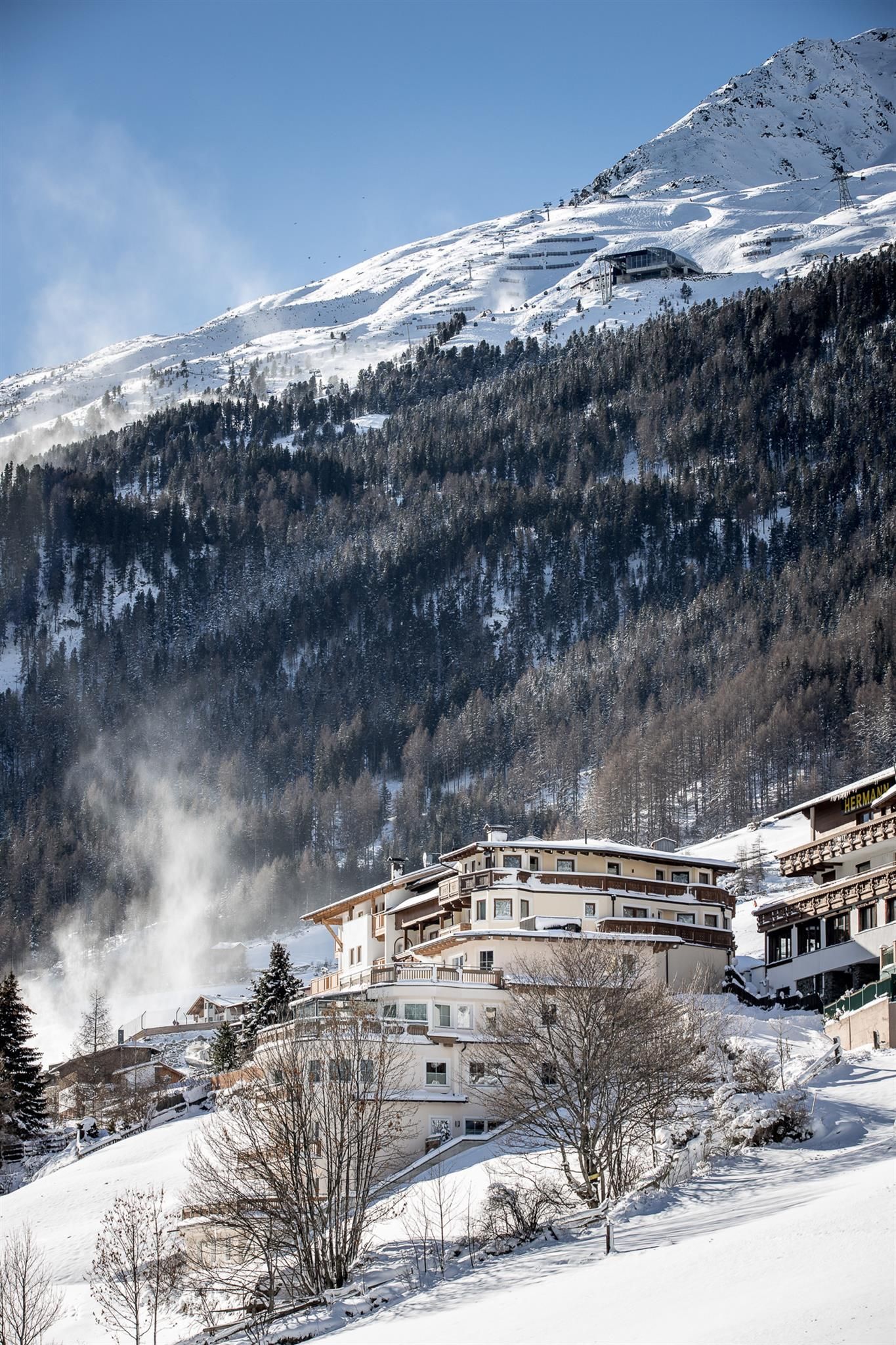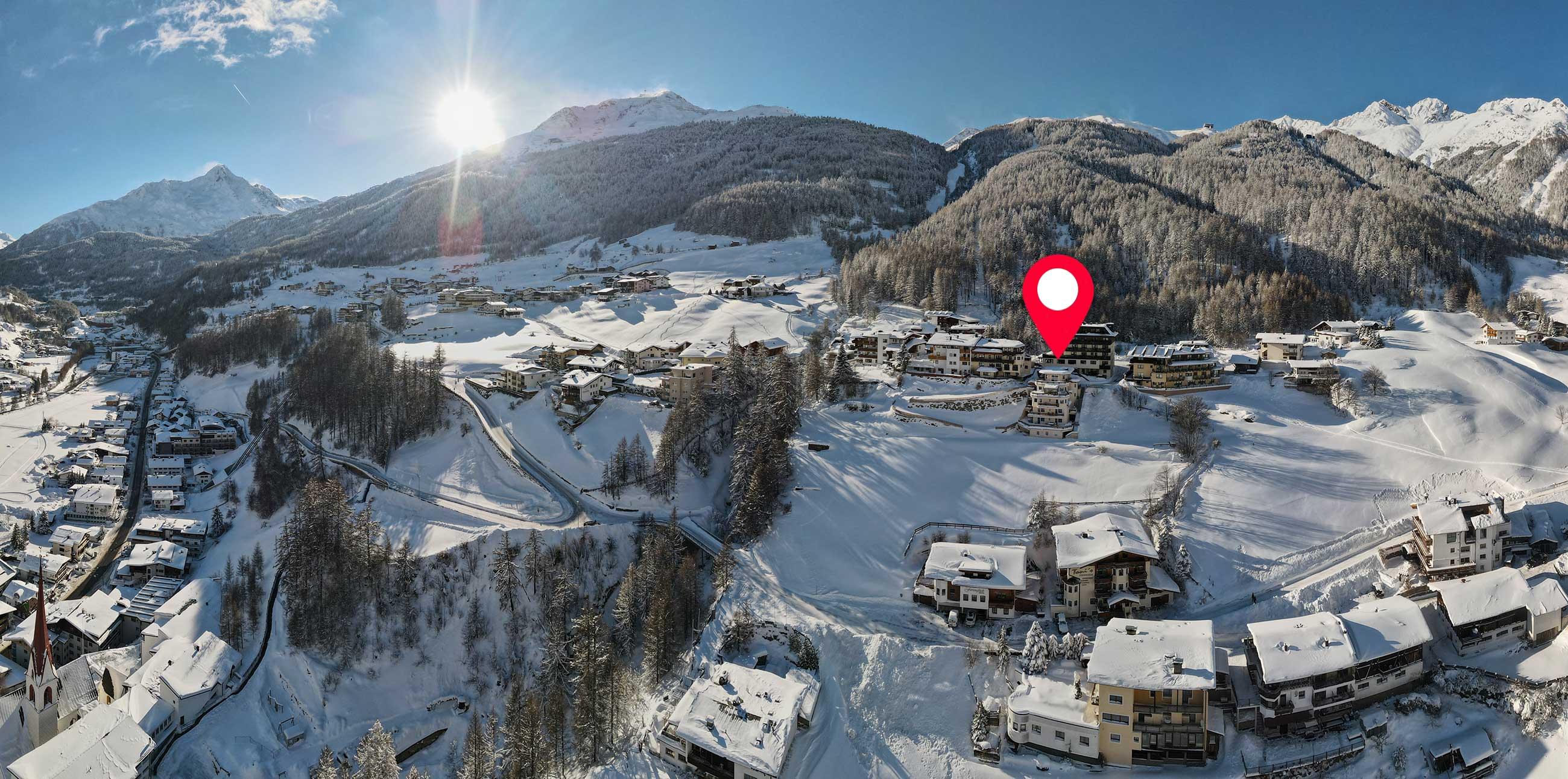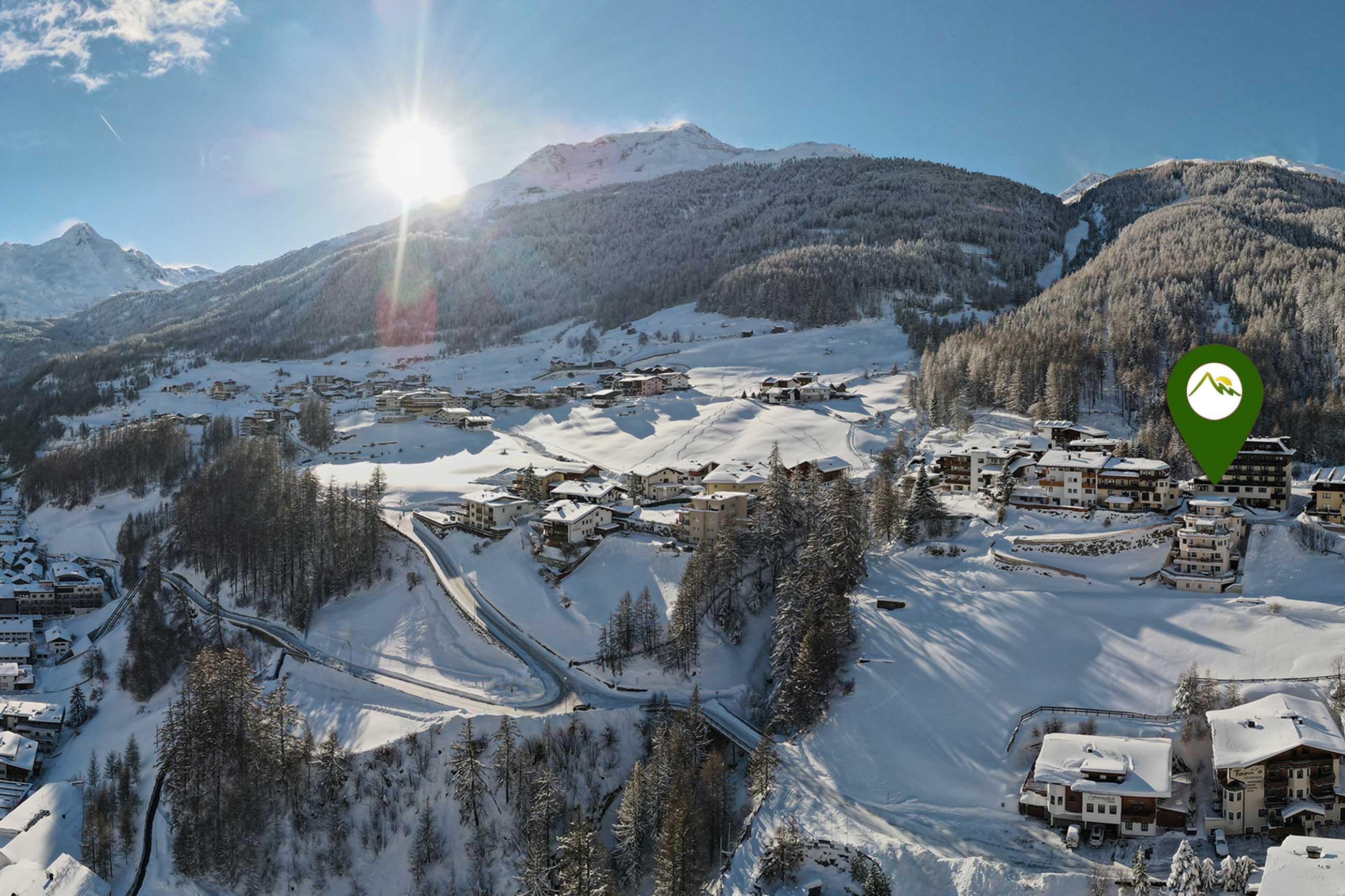 Etwas oberhalb vom Ortszentrum (ca. 8 Gehminuten) gelegen befindet sich unser neues Appartementhaus. Von hier aus haben Sie eine herrliche Aussicht über ganz Sölden und seine atemberaubende Bergkulisse. Geräumige und mit viel Liebe zum Detail eingerichtete Appartements sorgen für einen erholsamen und entspannten Urlaub (Aufzug im Haus)