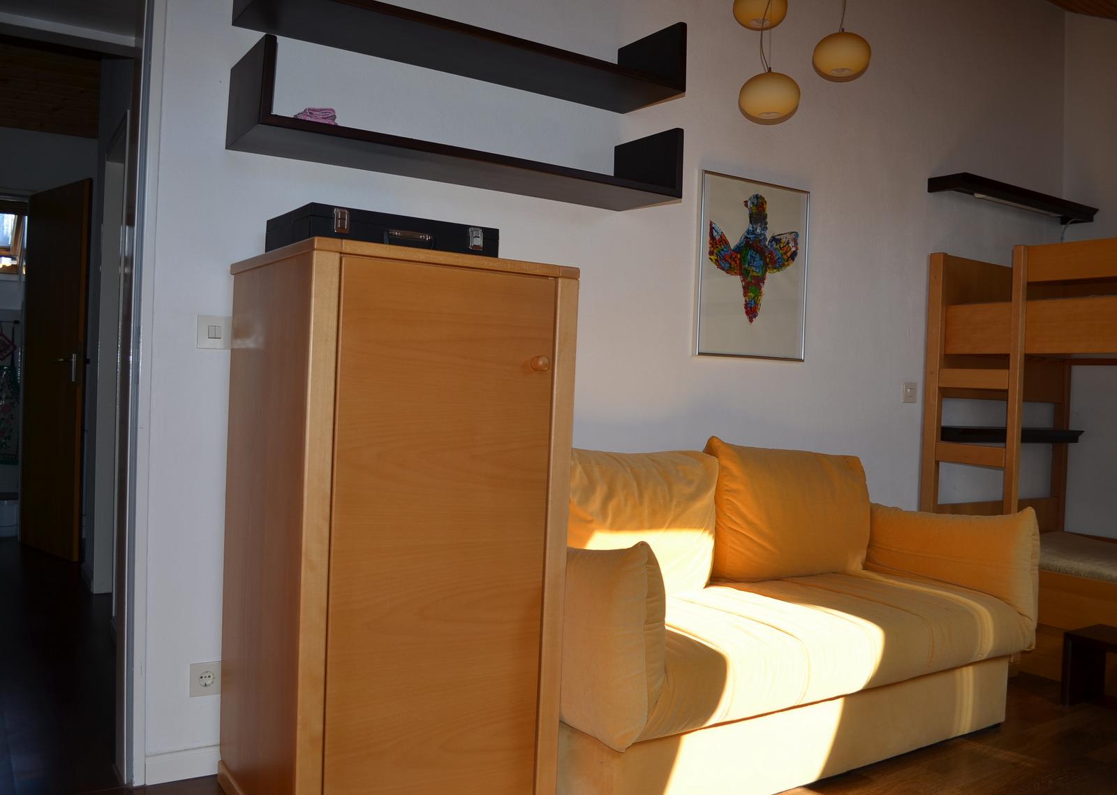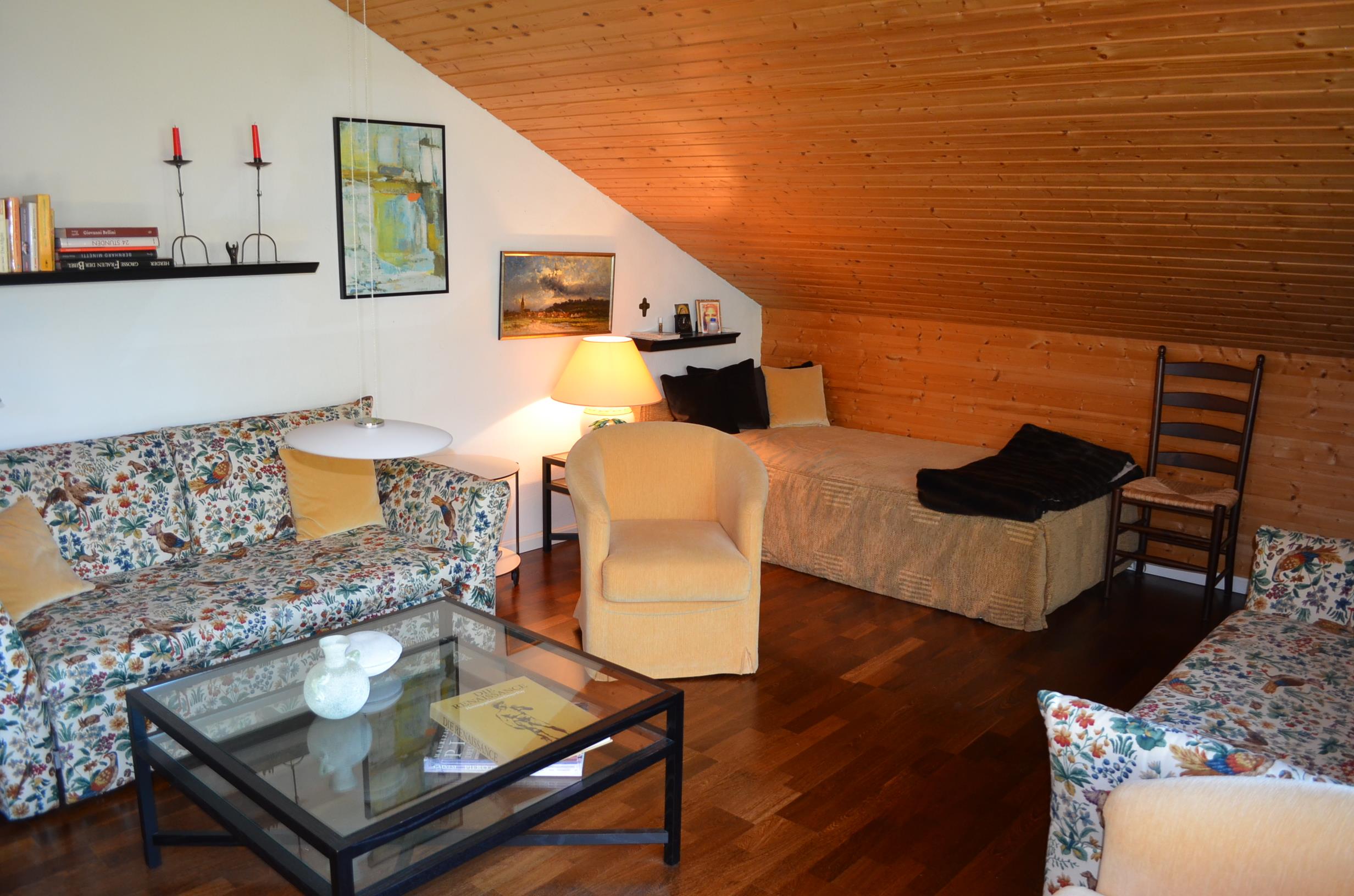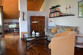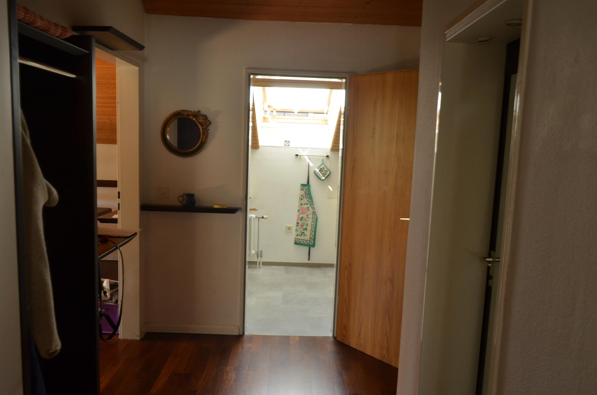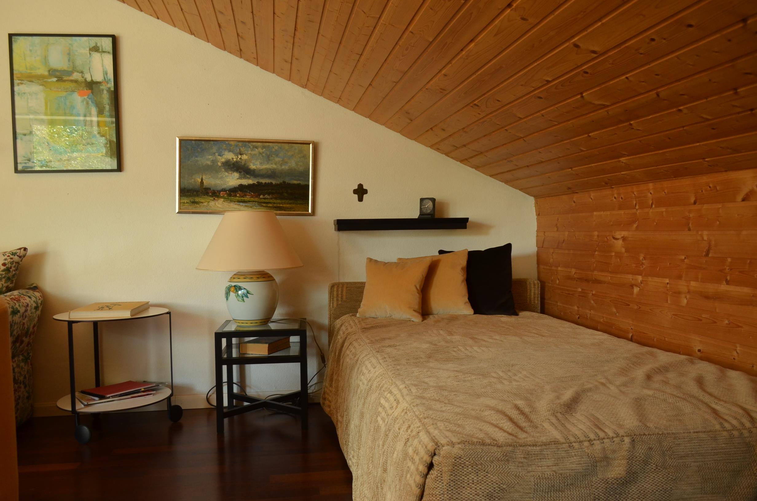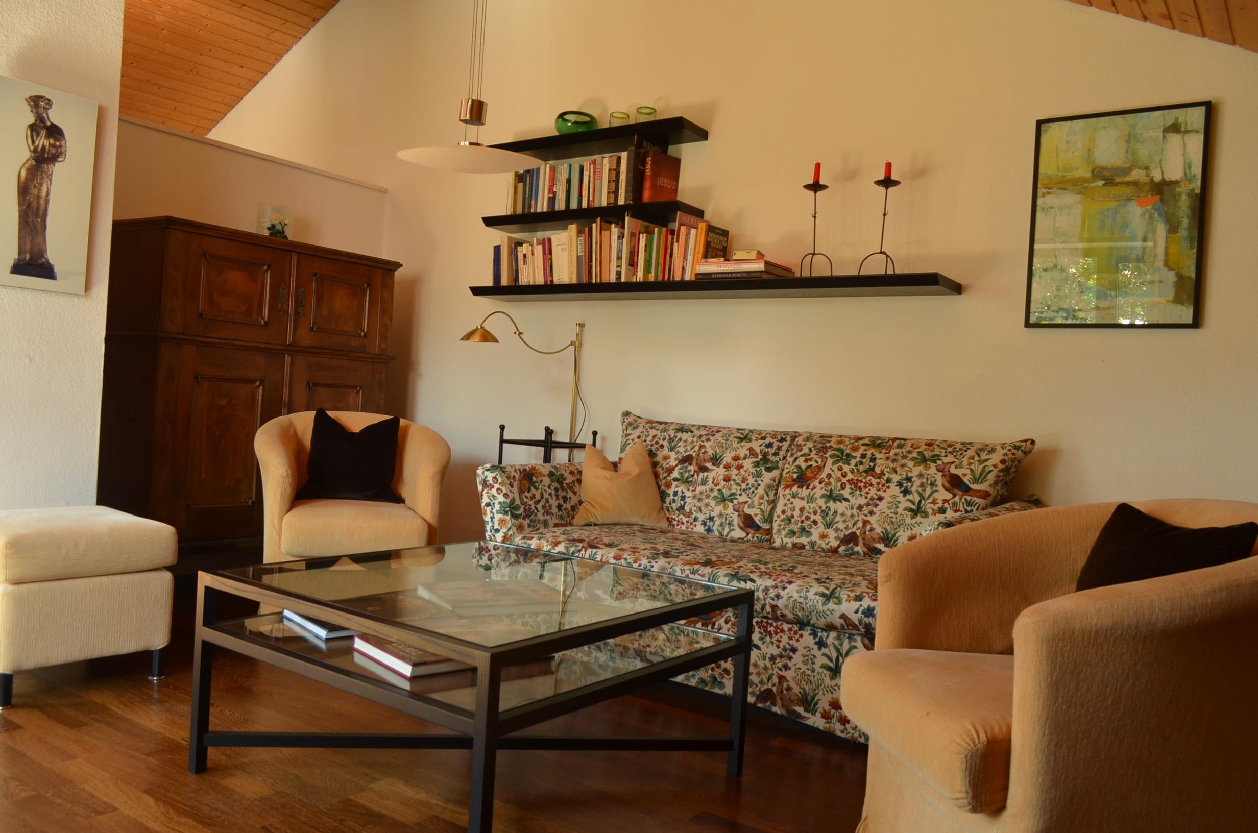 Unsere schöne Dachwohnung (62 qm) mit großem Balkon liegt mitten in Steibis. Wohn-und Esszimmer sind mit schönen zum Teil antiken Echtholzmöbeln ausgestattet. Fernsehen, Bücher, CD-Player stehen zur Verfügung.  Bad mit Dusche und zwei Waschbecken ist getrennt vom WC. Die Küche ist klein, hat aber eine praktische Durchreiche zum Esszimmer. In der Küche gibt es eine Kaffeemaschine, Kühlschrank mit Minieisfach, Mikrowelle, Herd mit vier Kochstellen und einen Backofen. In der geräumigen Diele befindet sich eine Garderobe und Platz für Schuhe zum Abstellen. Das Schlafzimmer ist mit einem Doppelbett (140 x 200), einem Einzellbett und einem Etagenbett ausgestattet. Für Kinder gibt es dort eine kleine Spielecke mit Tisch und Sitzgelegenheiten. Auf dem Balkon mit Blick auf den Hochgrat sind ein Liegestuhl, ein Tisch und zwei Gartenstühle. Im Keller befindet sich eine Waschmaschine, ein Trockner, Möglichkeiten Wäsche aufzuhängen, eine Tischtennisplatte und einen Platz, um die Skier abzustellen.