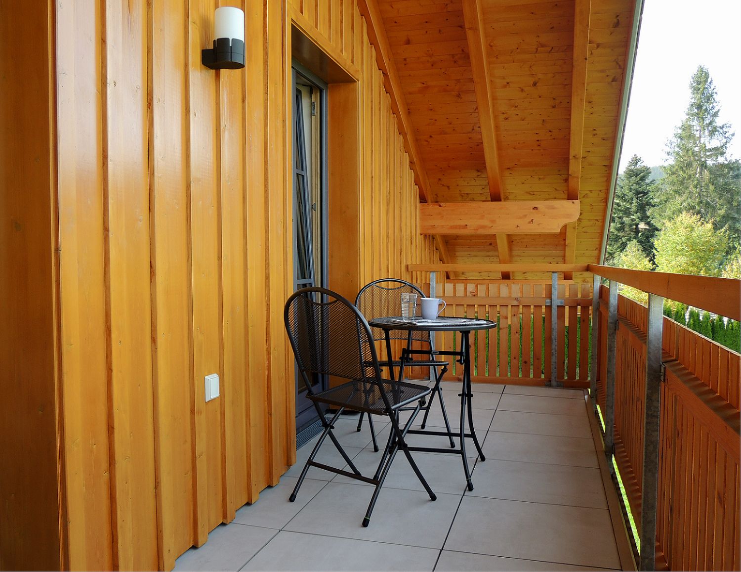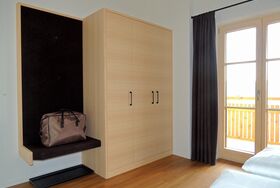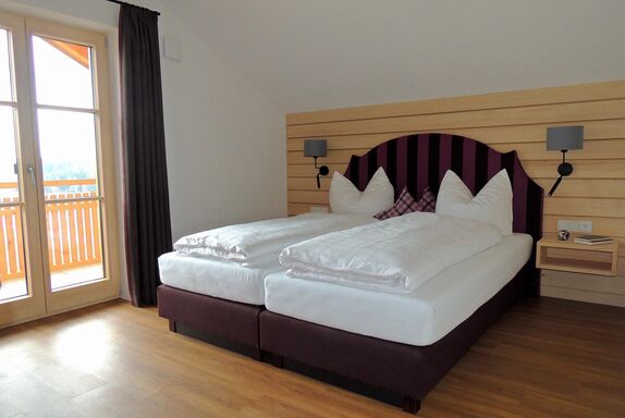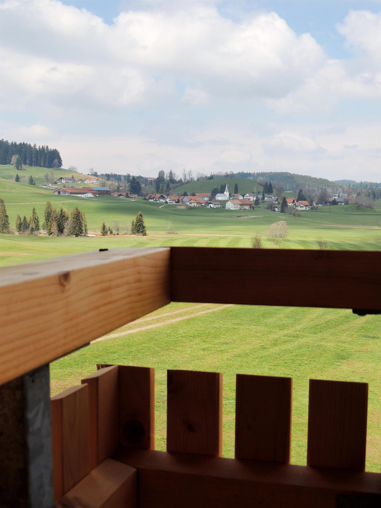 Sie verfügt über einen West- und einen Nordbalkon. Vom nach Norden ausgerichteten Balkon haben Sie einen wunderbaren Blick Richtung Genhofen mit seiner gotischen Stephanskapelle.