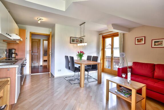 Unsere großzügige Ferienwohnung Hochgrat ist ca. 60m² groß. Die Wohnung befindet sich im 2. Stock und verfügt über einen Ost- und einen Südbalkon.