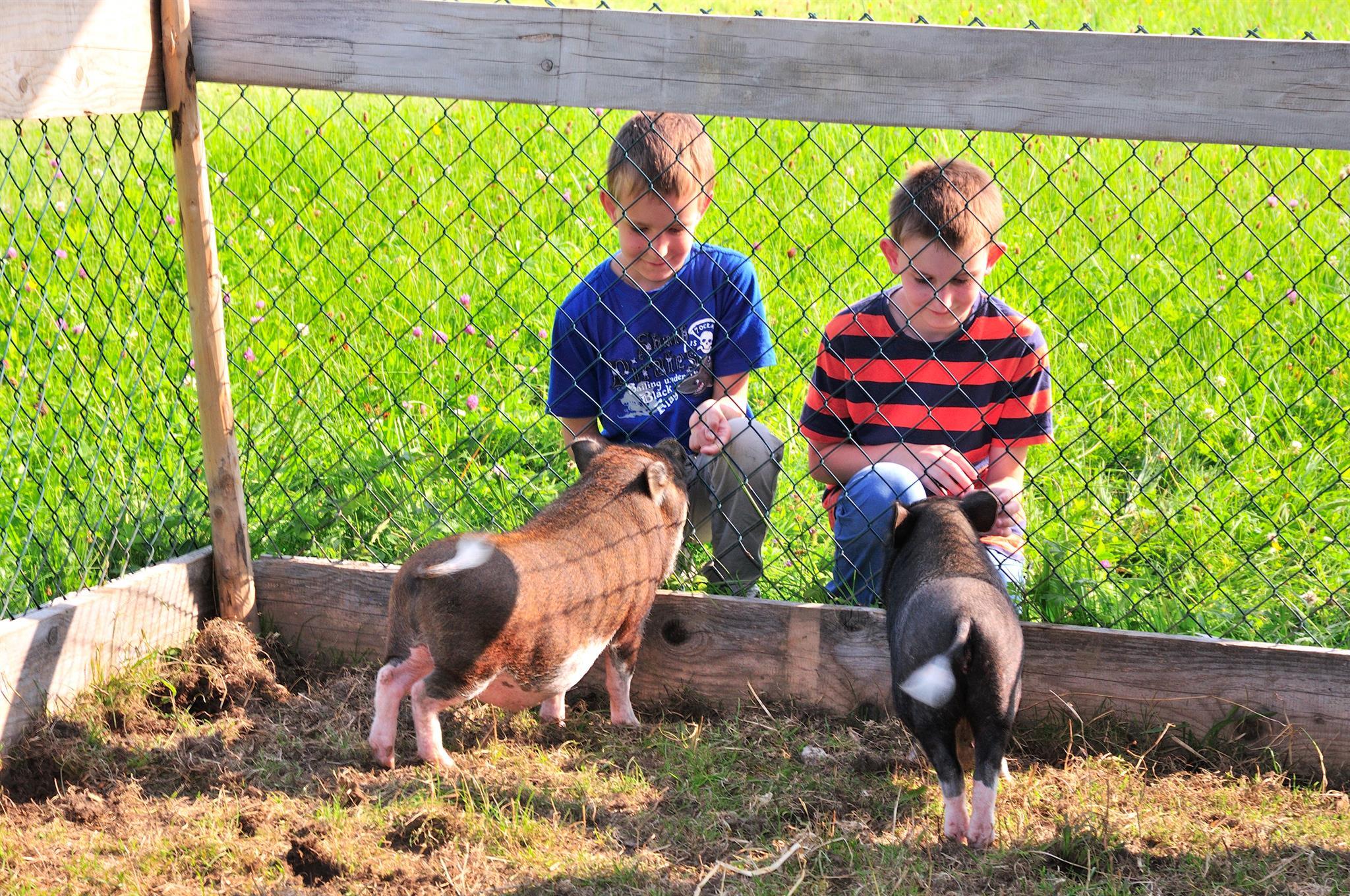 Unsere kleinen Gäste erwartet ein Spielplatz, Kühe und verschiedene Kleintiere.