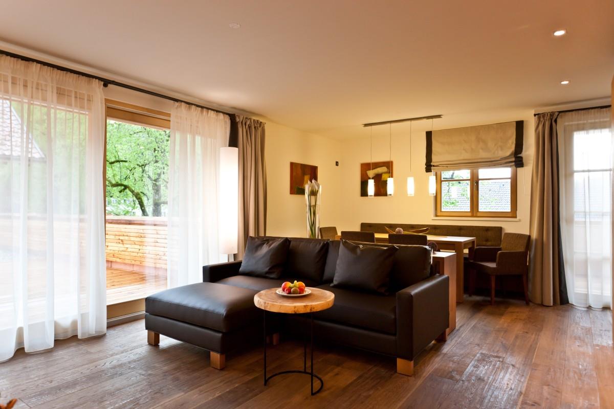 Unser gemütliches Junior-Chalet (Doppelzimmer) Hochgrat ist etwa 33 qm groß. Ausgestattet haben wir es mit hochwertigen Materialien wie edlen Echtholzböden, einem exklusivem Design-Bad mit Regendusche und Betten in Übergröße. Die Fußbodenheizung und der große Flachbild-TV machen dir selbst bei Schmuddel Wetter den Tag zum Genuss. Bei sonnigem Wetter kannst du deine eigene Terrasse mit Liegestuhl so richtig genießen. Das Telefonieren ins deutsche Festnetz sowie die Nutzung das WLAN´s ist natürlich genau so inklusive wie die Nutzung unserer großzügig gestalteten Aromasauna. Bei unserem reichhaltigen Dorfhaus-Frühstücksbuffet kannst du deinen Urlaub voll und ganz auskosten.