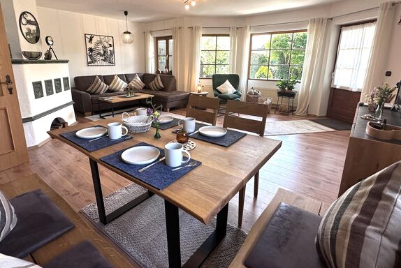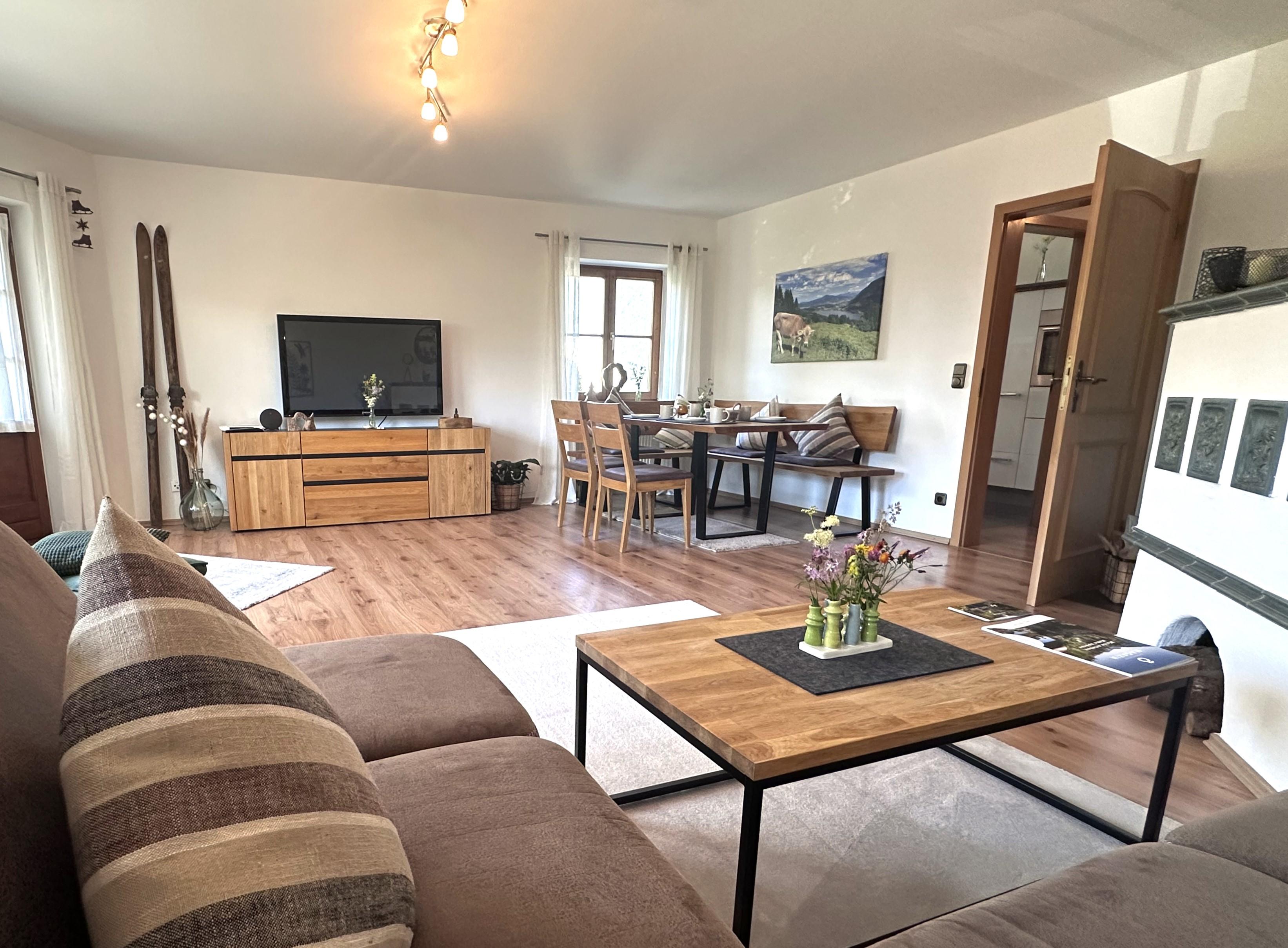 Wir dürfen Sie ganz herzlich in unserer neuen Ferienwohnung Heidi begrüßen. Die 81 qm große Wohnung, bestehend aus einem hellen großen WZ mit Kachelofen, 2 Schlafzimmern und 2 Bädern mit überdachter Terrasse und Garten/Liegewiese ist komplett ebenerdig.