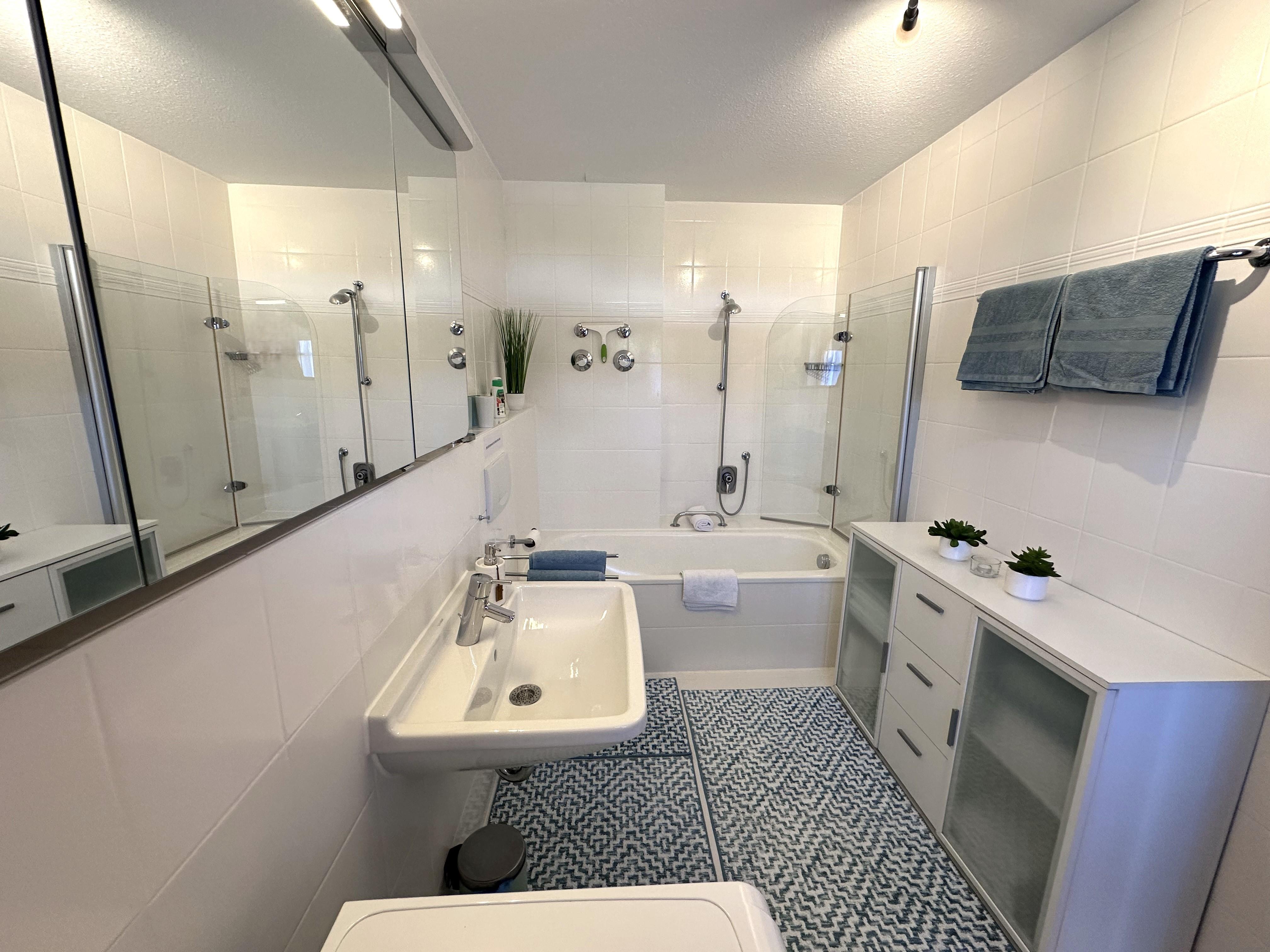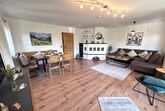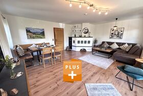 Das Wohnzimmer mit moderner ausziehbarer Eckcouch, Couchtisch und Sideboard mit Flatscreen-TV bietet außerdem eine Sitzgruppe mit Eckbank (alles Massivholz) zum geselligen Zusammensein am gemütlichen Einbaukachelofen. Die zeitlos moderne Küche ist voll ausgestattet. Beide Schlafzimmer sind ebenfalls komplett neu möbliert. Durchgängiger Parkettfußboden - kein Teppich! Das große Tageslichtbad bietet WC, Badewanne und Nutzung einer Waschmaschine/Trockner, das kleine eine Dusche und WC.