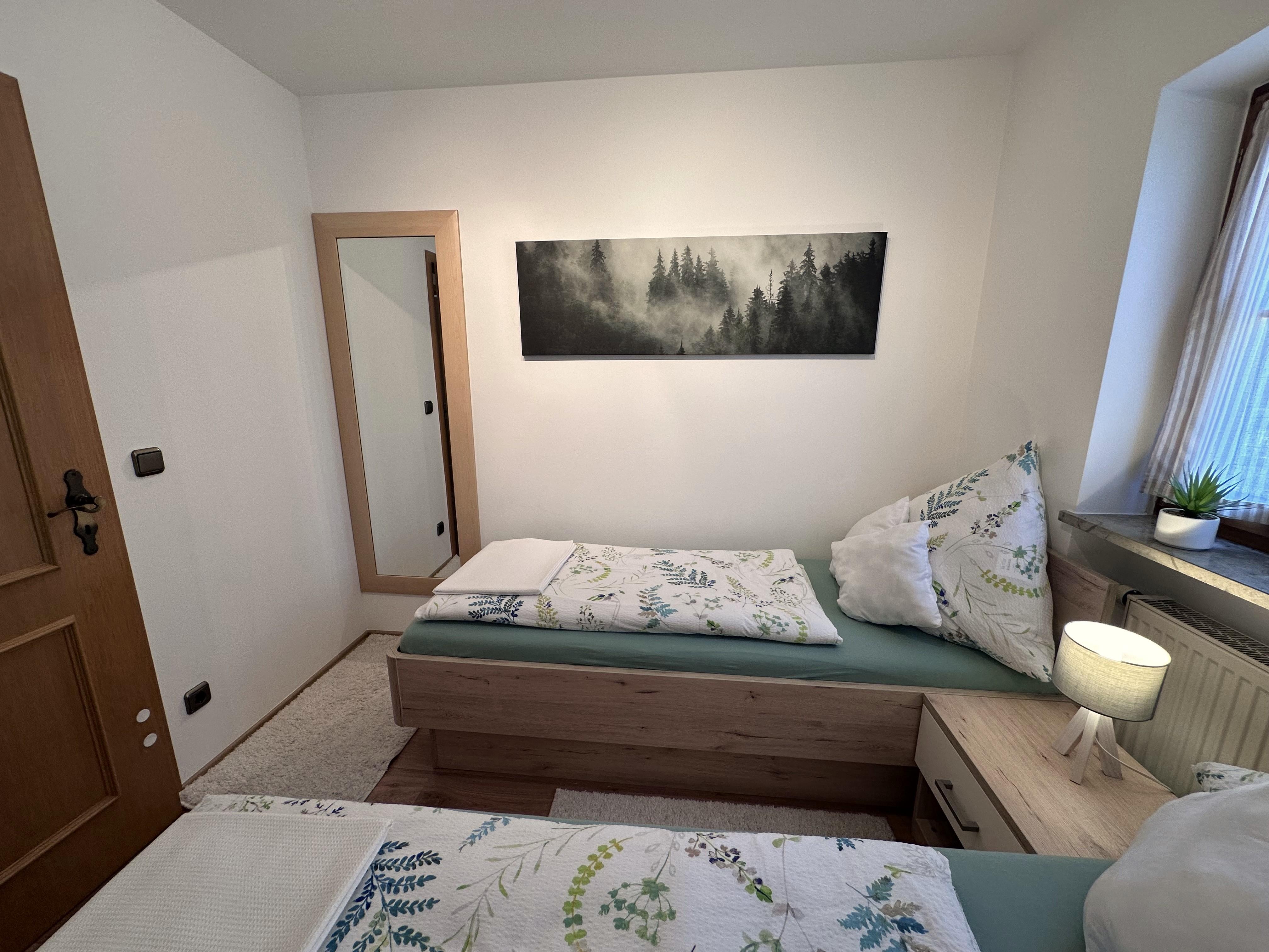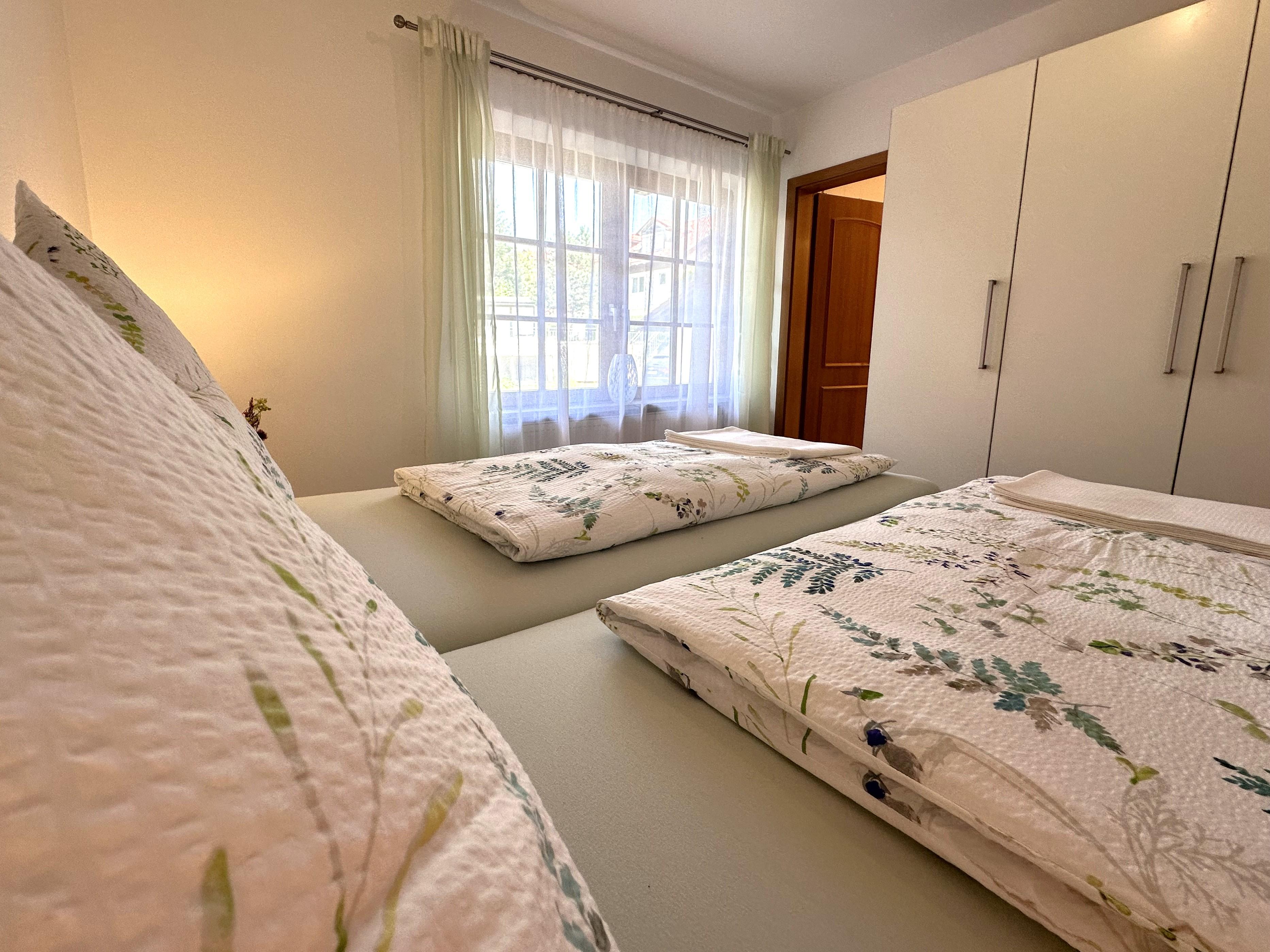 Unsere neu möblierte FeWo liegt nur wenige Gehminuten vom Ortskern entfernt. Während Ihres Aufenthalts nutzen Sie kostenlos Oberstaufen PLUS, d.h. freie Fahrten mit Bergbahnen, Skipässen, E-Bikes u. Badespaß im Aquaria uvm. Vom hellen WZ aus gelangen Sie ebenerdig in den Garten mit Sitzgarnitur, Liegestuhl und Sonne bis in die Abendstunden. Das WZ ist gemütlich eingerichtet mit neuer Couchgarnitur sowie Sitzecke (alles Massivholz) und Flachbild-TV mit Magenta-TV. Der Einbaukachelofen schafft eine gemütliche Atmosphäre. Die moderne Küche ist voll ausgestattet. Erholen Sie sich in 2 Schlafzimmern mit Doppelbett und 2x Einzelbetten. Im großen Tageslichtbad mit Badewanne und WC befinden sich Waschmaschine/Trockner, im kleinen Bad eine Dusche und WC. WLAN ist kostenfrei. Ein abschließbarer Kellerraum steht ebenfalls zur Verfügung.