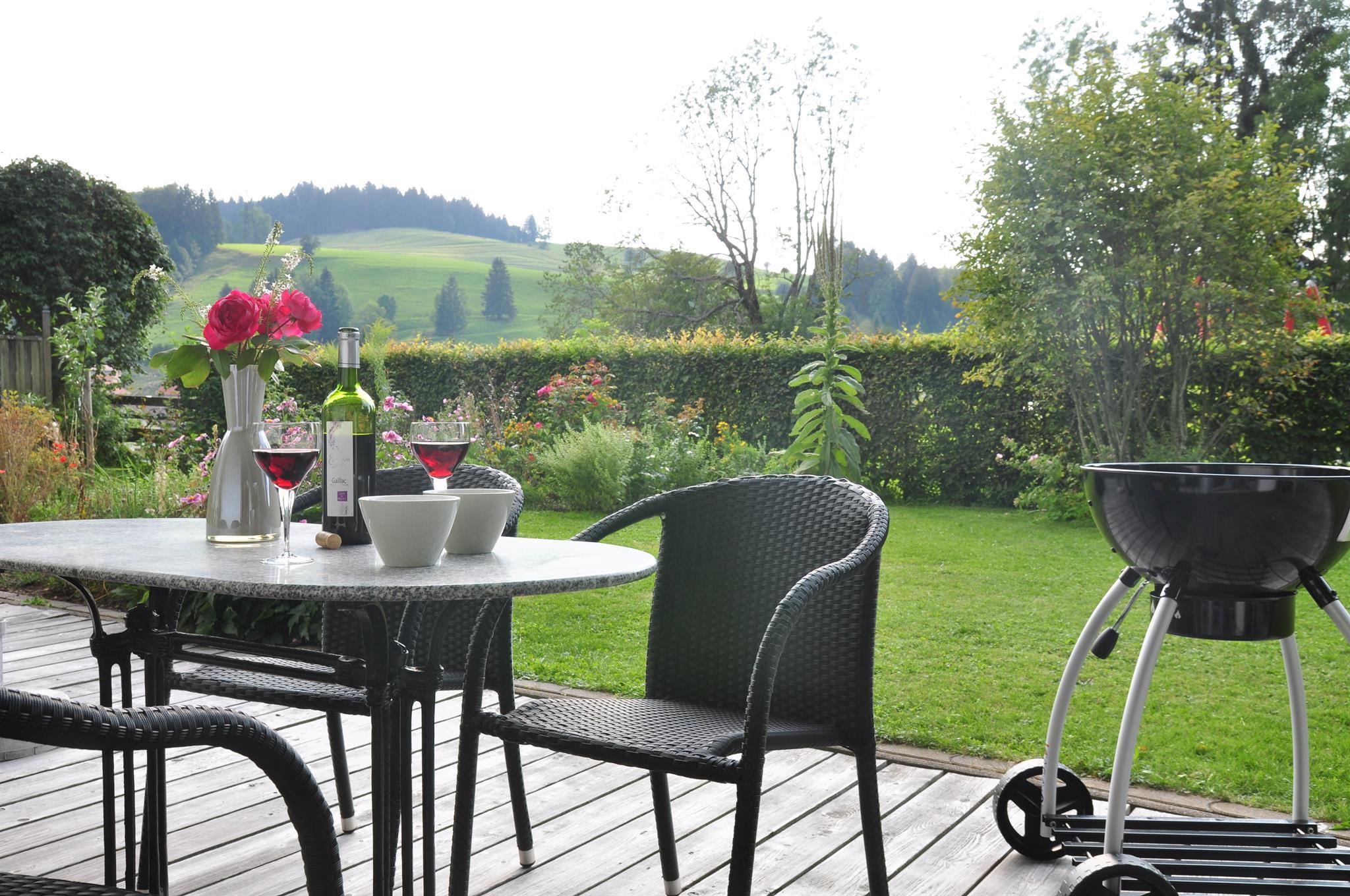 Über das Wohnzimmer haben Sie Zugang zur Terrasse, die mit Tisch und 4 Stühlen sowie Kugelgrill ausgestattet ist.
