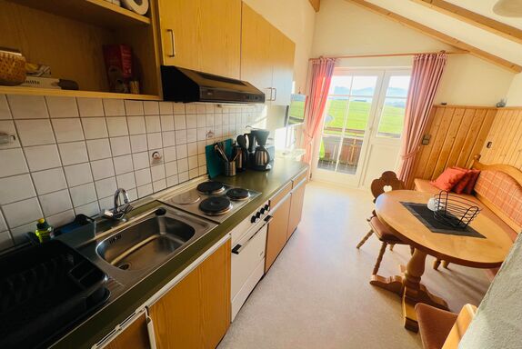 DG 56 qm - Herrlicher Ostbalkon plus zusätzlich großem Südbalkon mit genialer Sicht auf die Nagelfluhkette, 2 separate Schlafzimmer (Ein Baby-Reisebett kann dazugestellt werden),