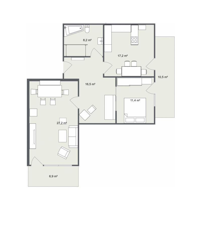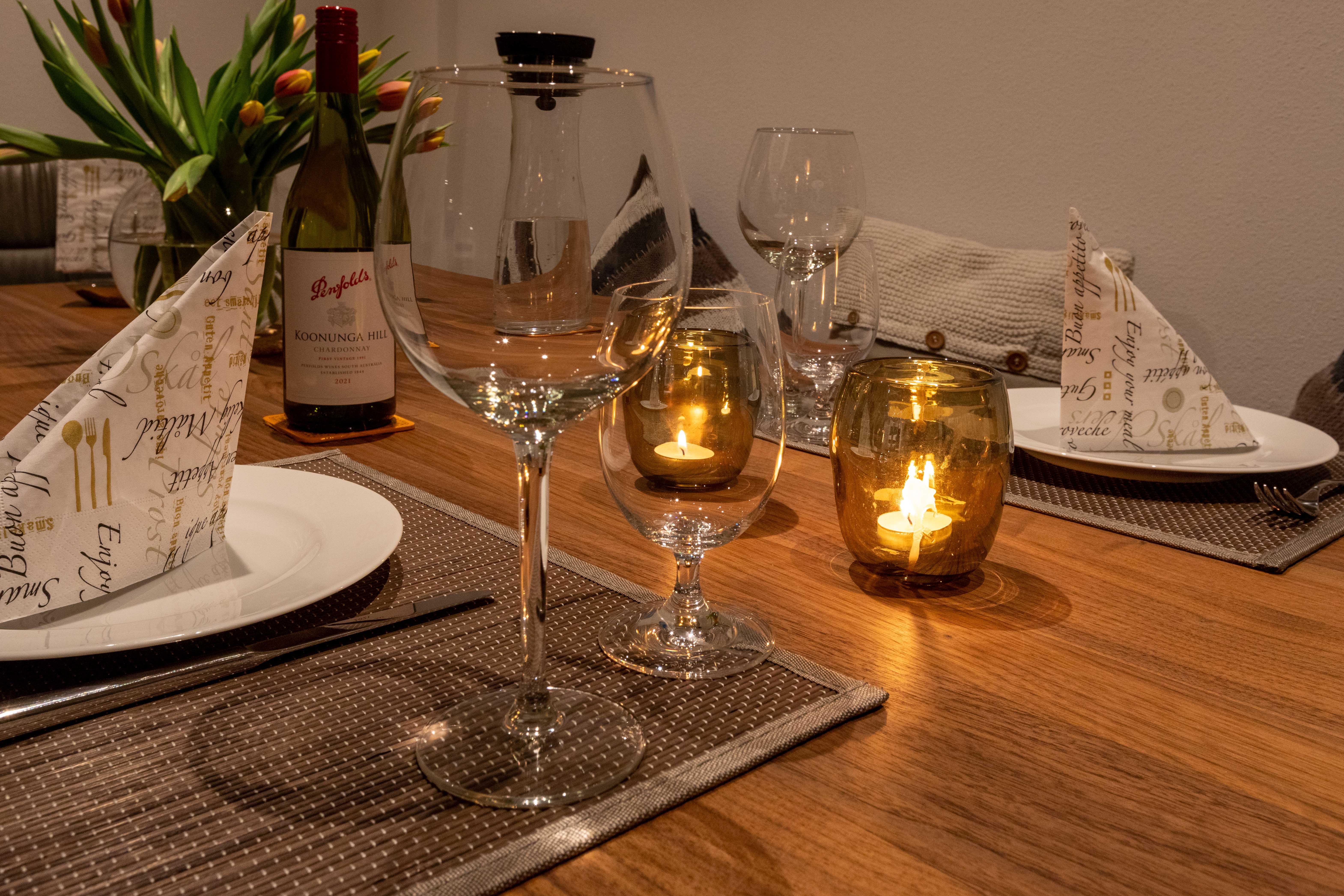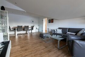 Das hochwertig möblierte Wohnzimmer bietet Entspannung beim Fernsehen oder Musikhören von modernster Technik (TV Soundbar, Blue-Ray-Player.)Besonders gemütlich ist die Essecke, wo Sie auf Lederstühlen oder der Bank am Massivholztisch Platz nehmen. Verschiedene echte Bilder und Grafiken tragen zu dem besonderen Ambiente bei.Vom Wohnzimmer gelangen Sie auf den Südbalkon und können es sich in den Loungesesseln bequem machen. Das Schlafzimmer ist ebenfalls mit bequemen und wertigen Möbeln ausgestattet. Der Kleiderschrank und eine Bank bieten ausreichend Platz für Ihre Garderobe. Hier nutzen Sie den zweiten Flachbildfernseher oder lassen sich von den großen Fotografien für besondere Träume inspirieren. Ein fest installierter Safe steht zur Verfügung.In Schlafzimmer, Küche und Wohnzimmer erlauben Plissees und elektrische Rollläden absolute Privatsphäre. Vom Schlafzimmer und von der Küche gelangen Sie auf den nach Osten gerichteten zweiten Balkon,wo ebenfalls ein Tisch und vier Stühle stehen
