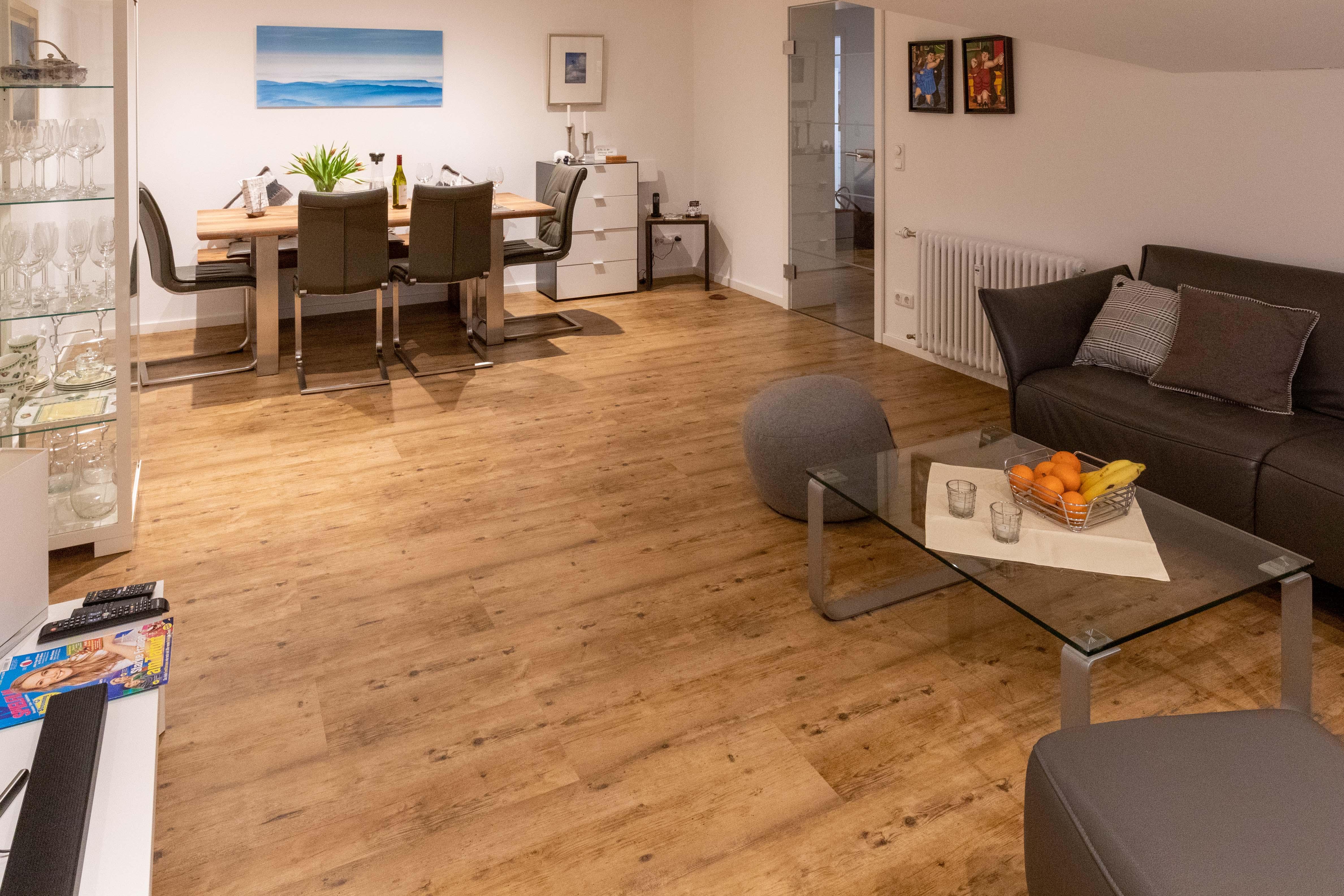 Die Ferienwohnung liegt am schönen Kurpark nahe der Ortsmitte von Oberstaufen. Diverse Geschäfte, Boutiquen, Cafés und Restaurants befinden sich in kurzer Fußentfernung. Auch ein großer Abenteuerspielplatz bietet Kindern Spaß im Kurpark.Die 80 m² große Wohnung wurde erst im Herbst 2019 komplett neu ausgebaut und hochwertig ausgestattet. Sie dürfen sich auf ein modernes, hochwertig möbliertes Feriendomizil freuen, in dem sich nicht nur Ihre Kinder, sondern gegebenenfalls auch Ihr kleiner vierbeiniger Freund pudelwohl fühlen werden.Genießen Sie die Nachmittagssonne von den Loungesesseln auf dem Südbalkon und die Aussicht auf die Berge und die Morgensonne beim Frühstück in der Küche oder auf dem angrenzenden zweiten Balkon.Machen Sie es sich gemütlich am großen Esstisch oder in der Ledersitzgruppe vor dem großen Flachbildfernseher mit Blue-Ray-Player. Ihre eigene Musik hören Sie mittels verschiedener Bluetooth-Lösungen im Wohnzimmer und in der Küche.