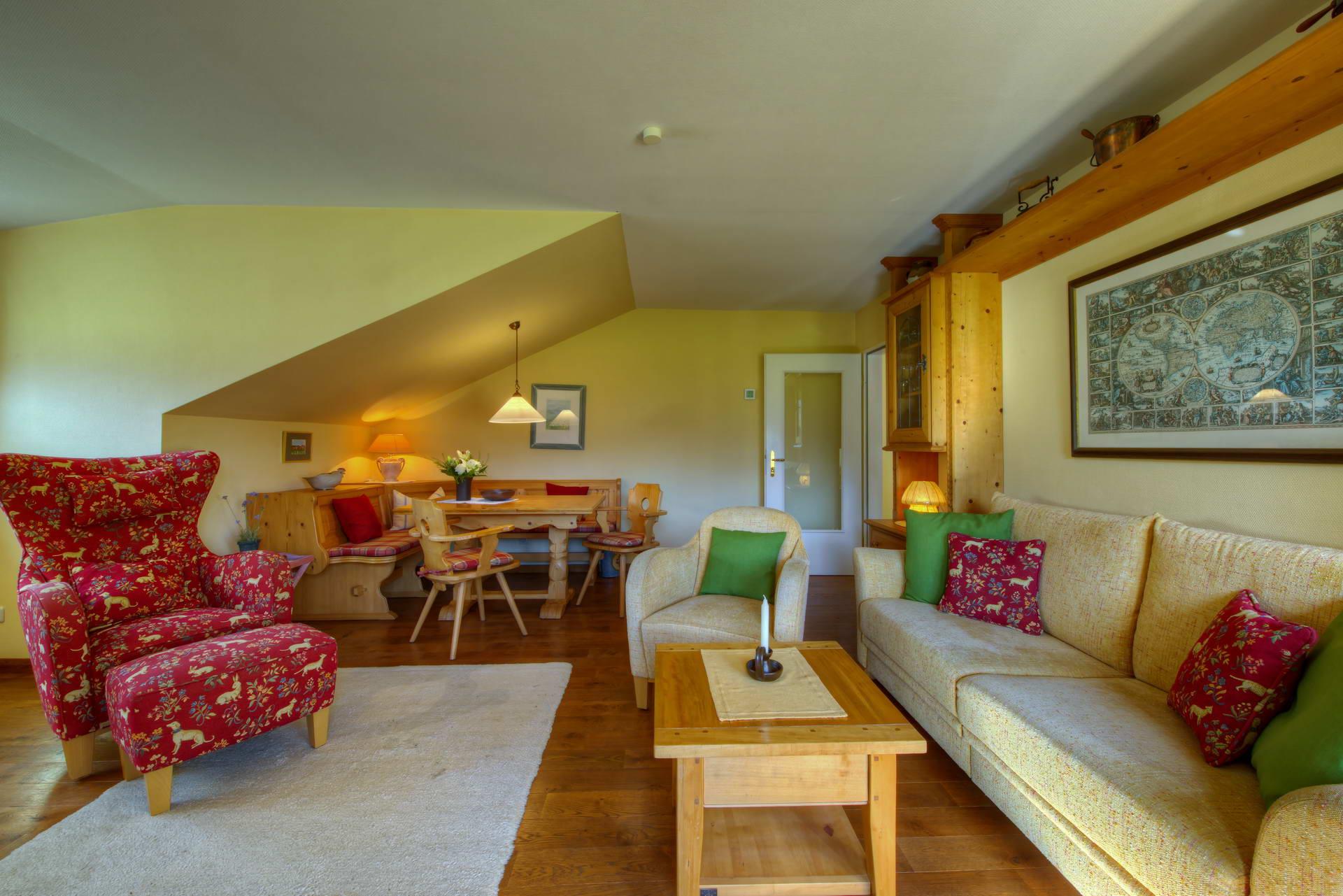 Inmitten des Ortsteiles Steibis am Ende einer Privatstraße liegt das Haus Silberdistel. Hier befindet sich auch unsere gemütliche Ferienwohnung, die sich durch liebevoll und stilgerechte Ausstattung auf hohem Niveau auszeichnet. Wir bieten Ihnen ein separates Schlafzimmer mit TV, Wohn-und Esszimmer mit TV, Küche, Bad und Flur sowie einen wunderschönen Balkon mit Bergblick. WLAN kostenfrei. Ein Kinderbett und Kinderhochstuhl haben ebenso noch Platz.