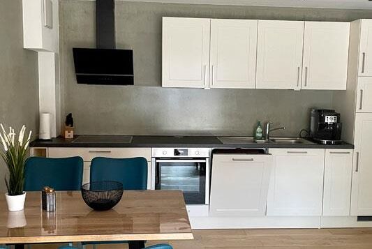 Die komplett eingerichtete und gut sortierte Küche mit Backofen, Induktionskochfeld, Geschirrspüler, Kühlschrank inkl. Gefrierfach rundet die Ausstattung ab und lässt keine Wünsche mehr offen.