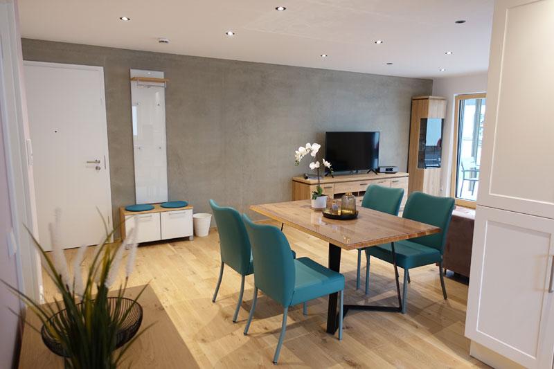 Die Wohnung hat 61qm. Im Wohn- und Elternzimmer befindet sich jeweils ein großflächiger Smart-TV.