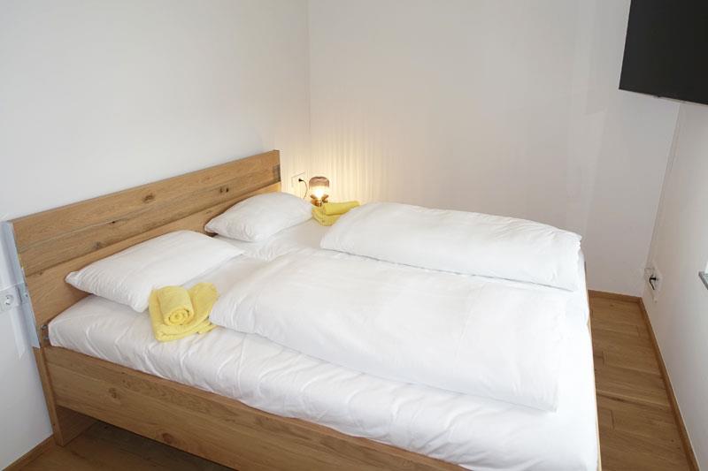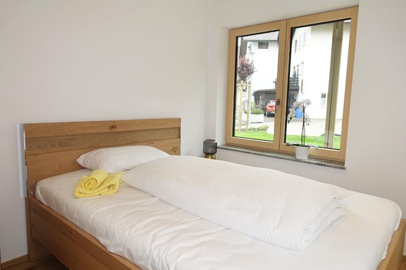 Das Eltern-Schlafzimmer ist mit einem Bett in der Größe 1,80 x 2,00 m in Komforthöhe ausgestattet und verfügt ebenso wie das 2. Zimmer (Bett in der Größe 1,40 x 2,00 m in Komforthöhe) über ausreichende Schrank- und Ablageflächen.