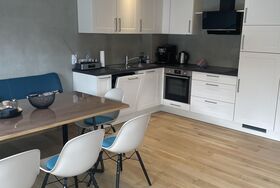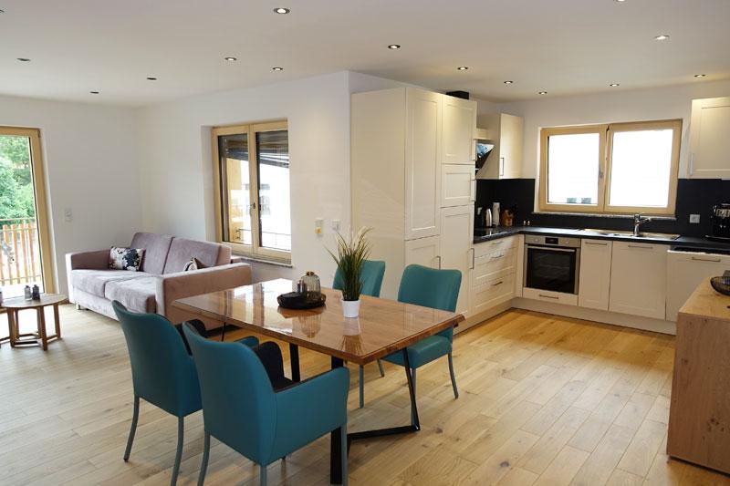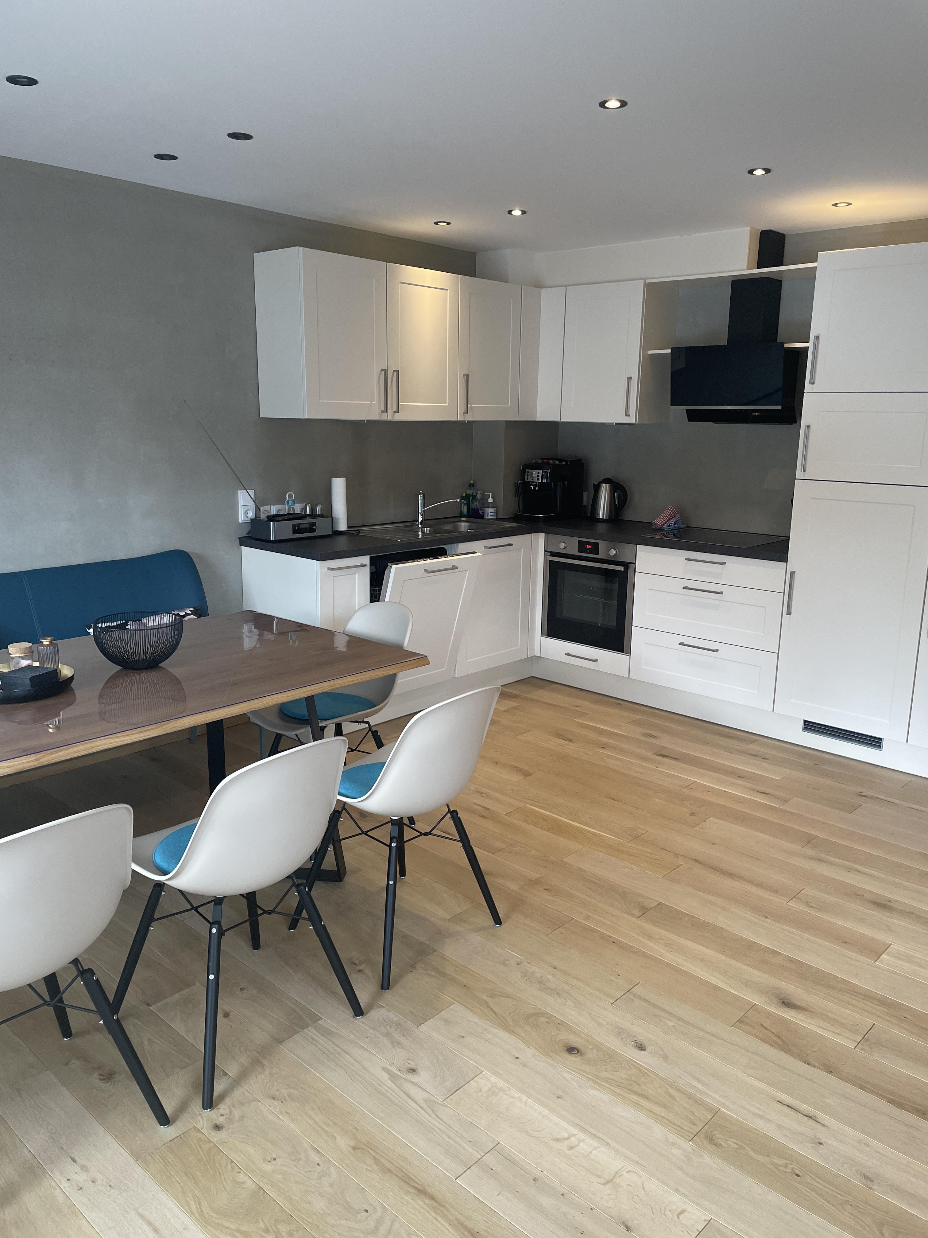 Die Wohnung mit 132 m² wurde mit Liebe zum Detail im Mai 2021 neu erstellt. Ein luxuriöses Wohlfühl-Feriendomizil mit einer exklusiven und hochwertigen Ausstattung (Echtholz-Parkett; elektrisch bedienbare Jalousien/Rollläden; komfortable Fußbodenheizung; Aufzug). Die Küche ist im modernen Landhausstil gehalten und ebenfalls hochwertig ausgestattet.