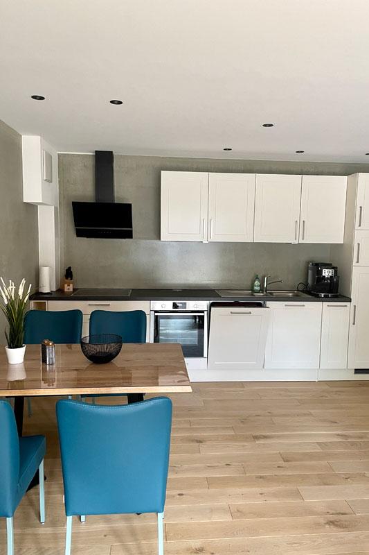Die komplett eingerichtete und gut sortierte Küche mit Backofen, Induktionskochfeld, Geschirrspüler, Kühlschrank inkl. Gefrierfach rundet die Ausstattung ab und lässt keine Wünsche mehr offen.