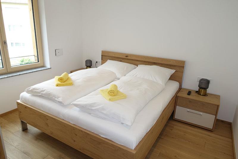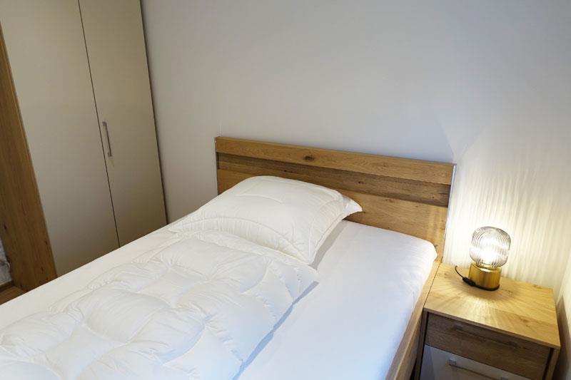 Drei Schlafzimmer sind mit Betten in der Größe 1,80 x 2,00 m in Komforthöhe ausgestattet und verfügen ebenso wie 1 kleineres Schlafzimmer (1,40 x 2,00 m Bett in Komforthöhe) über ausreichende Schrank- und Ablageflächen für Kleidung oder Ähnliches.