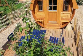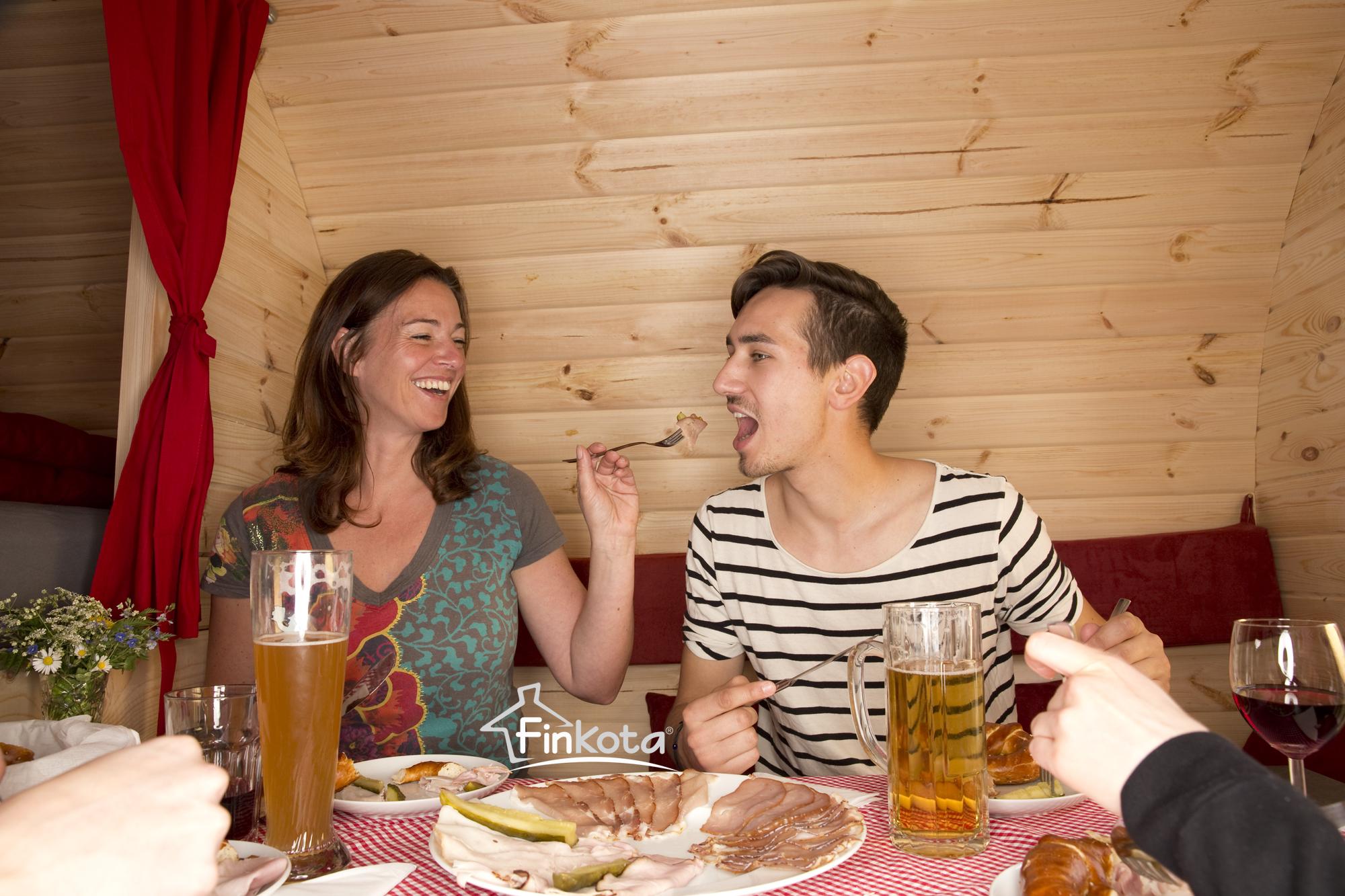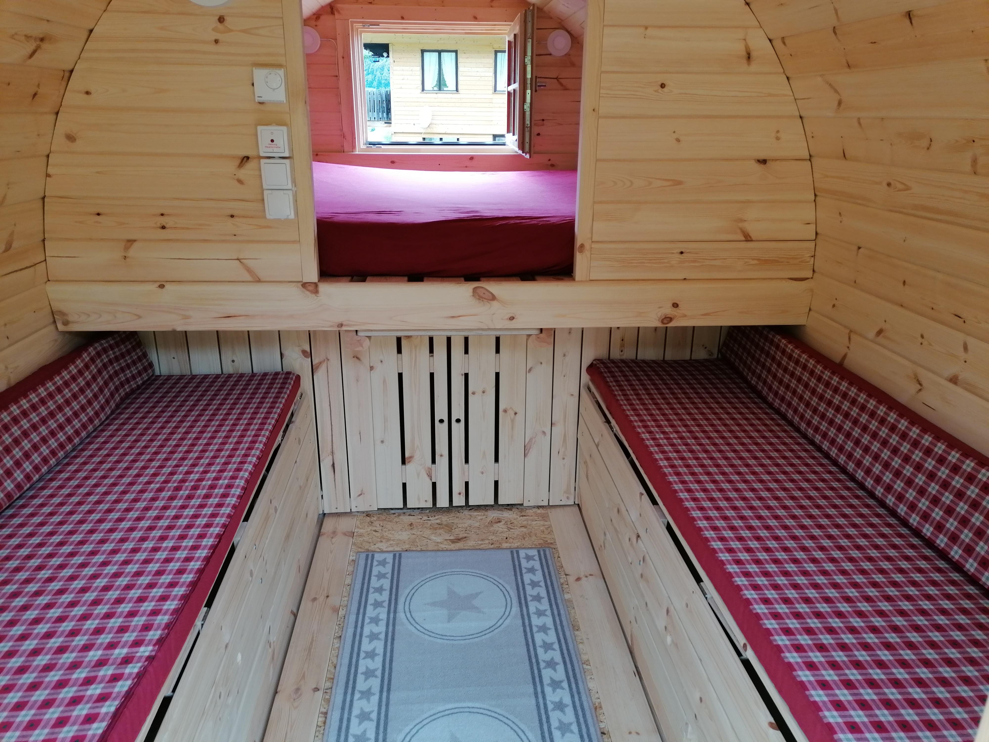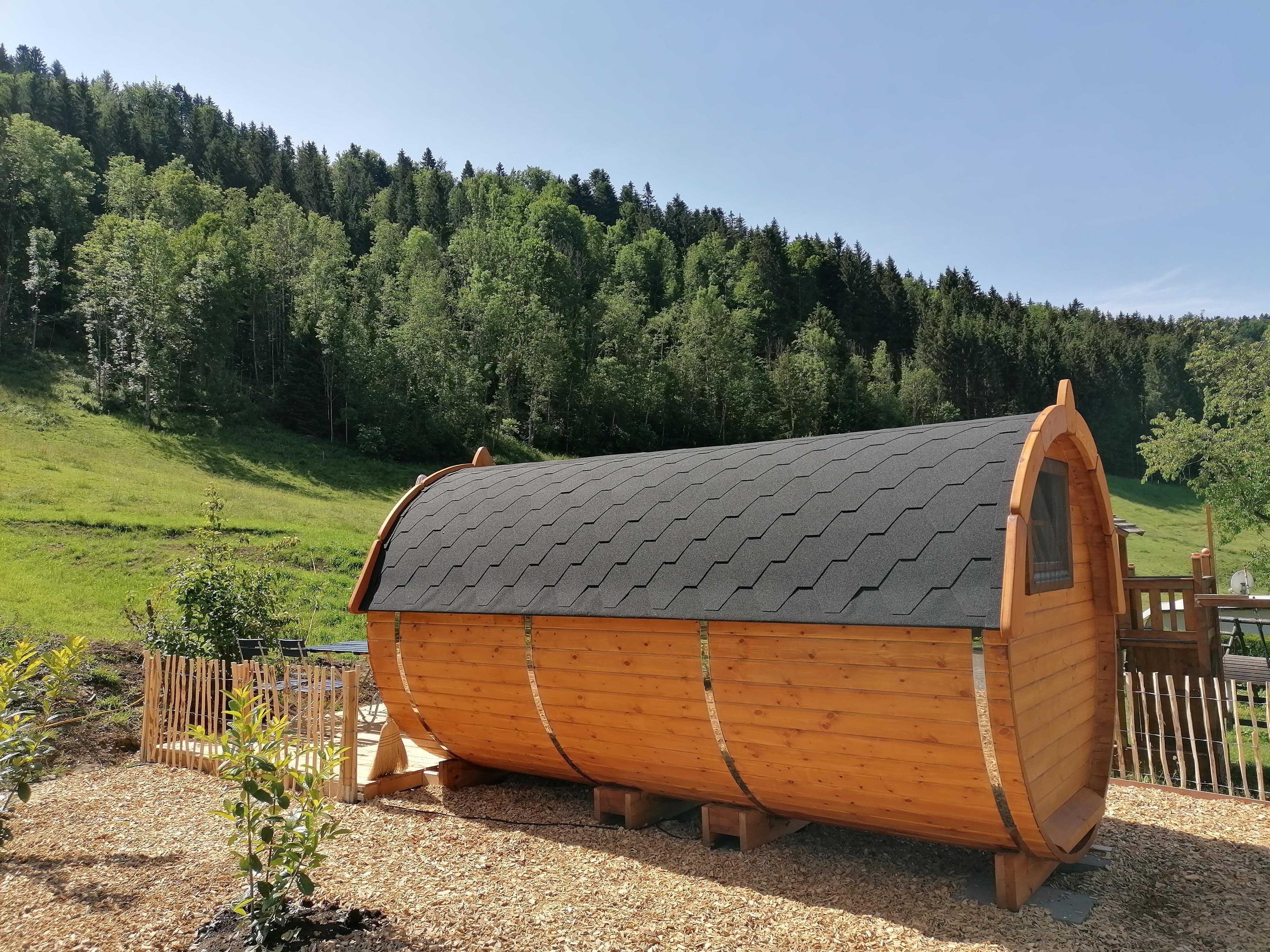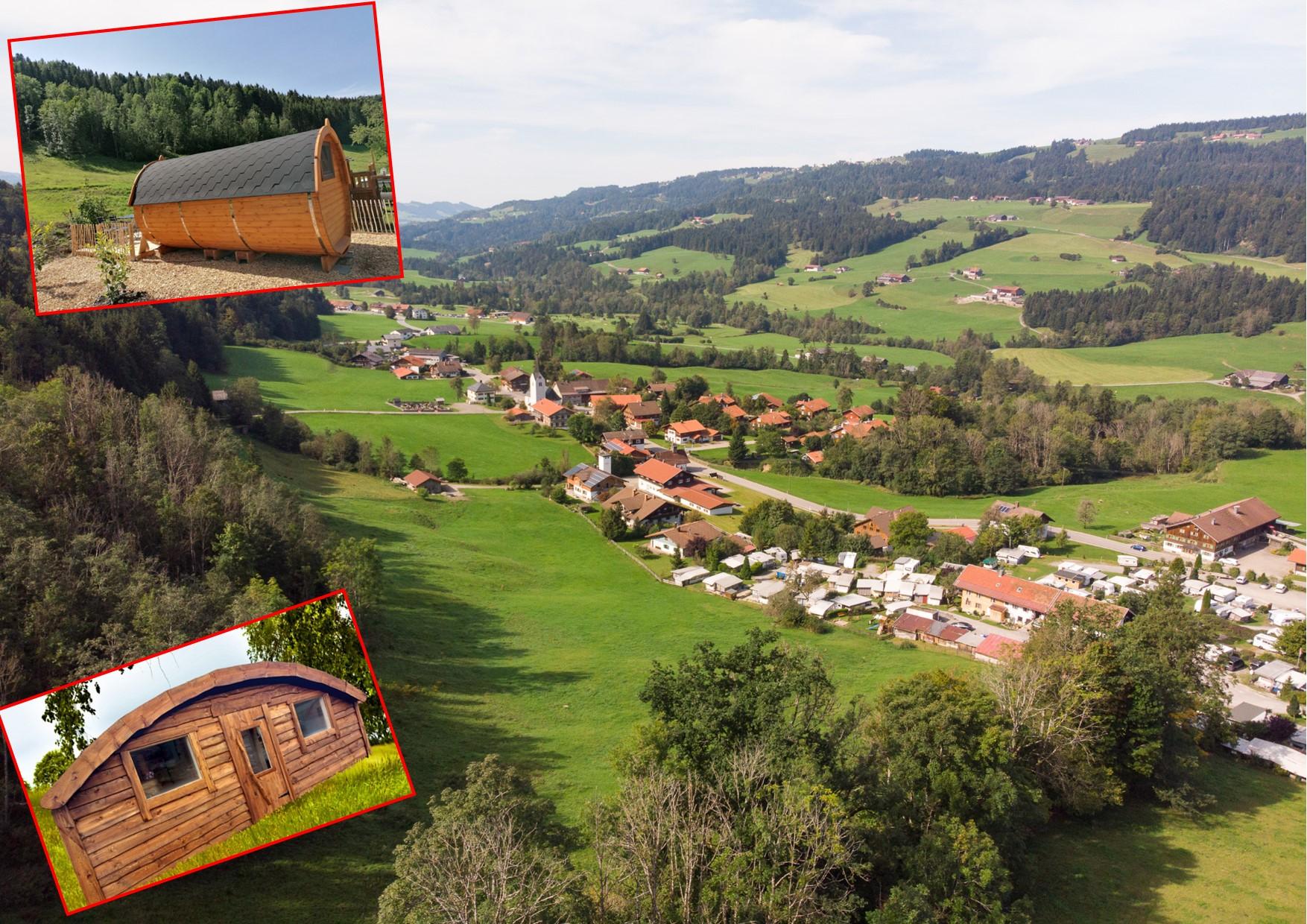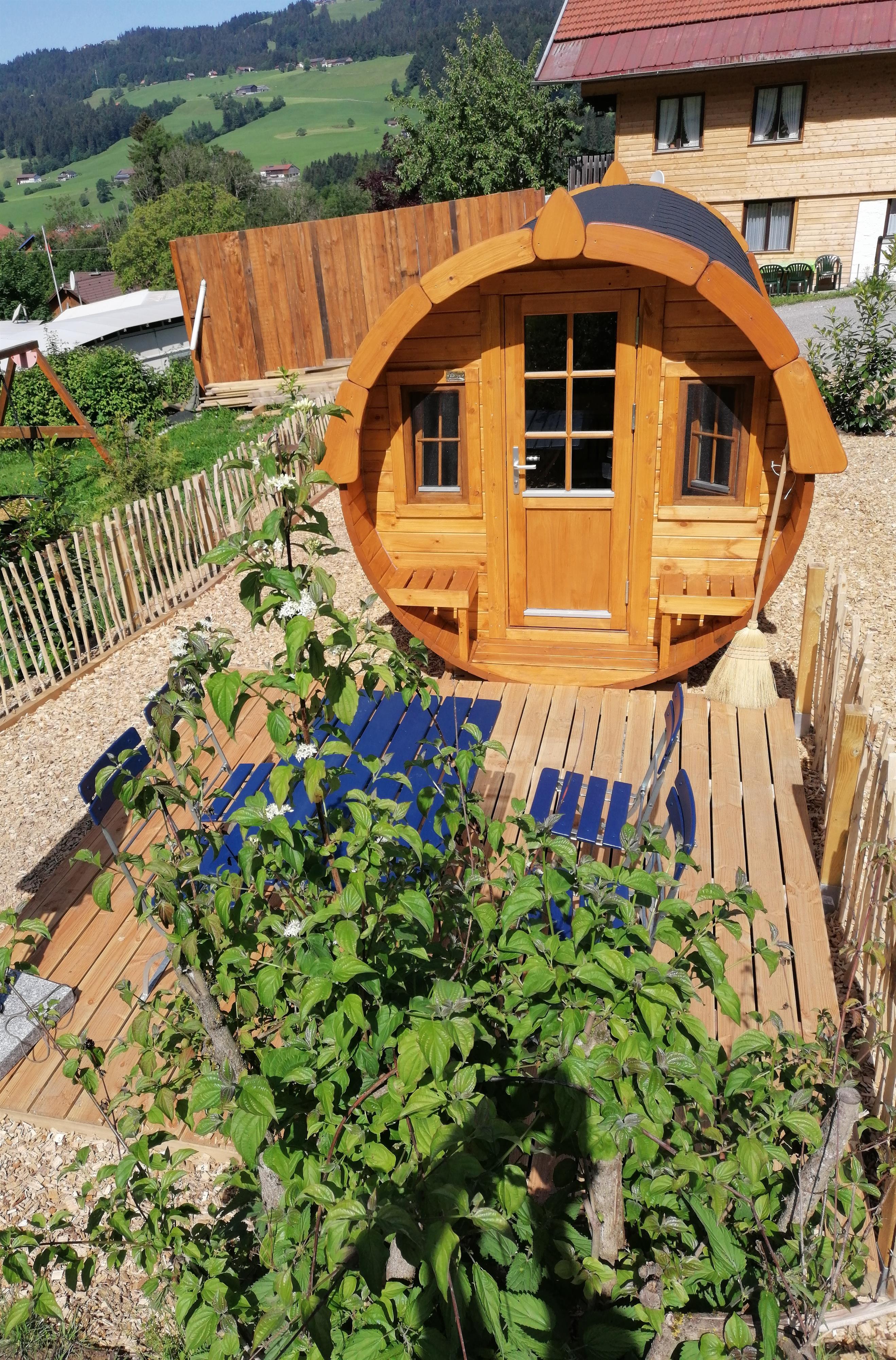 Das rustikale Schlaffass „Wolpertinger“ befindet sich bei Oberstaufen, nahe der österreichischen Grenze auf dem Camping-Aach, und bietet einen fabelhaften Blick auf die Berge. Das Fass verfügt über einen ausziehbaren Tisch mit 6 Sitzplätzen, ein 200x200cm großes Familienbett, sowie zwei Wandelbetten mit einer Größe 210x70 cm.