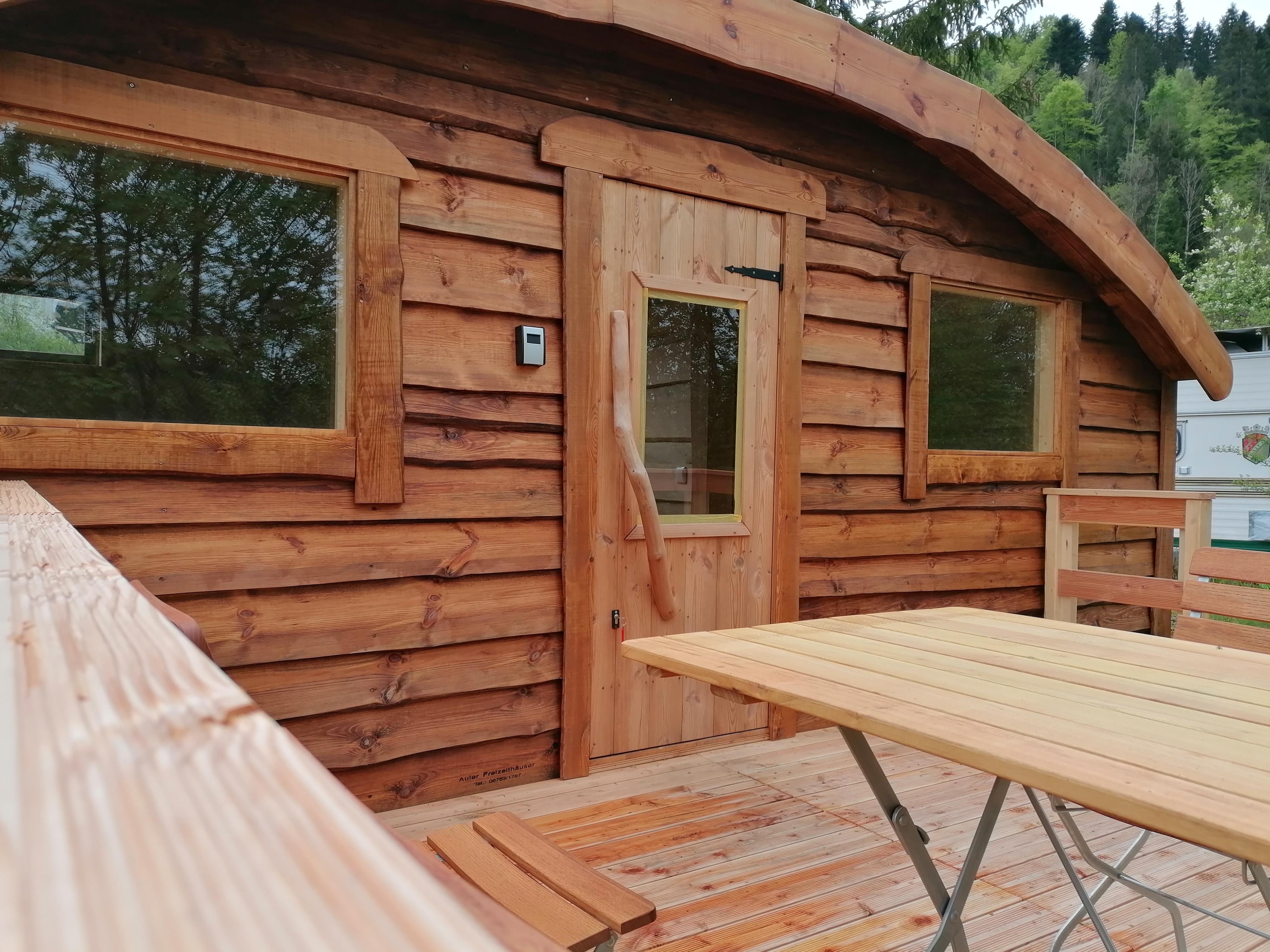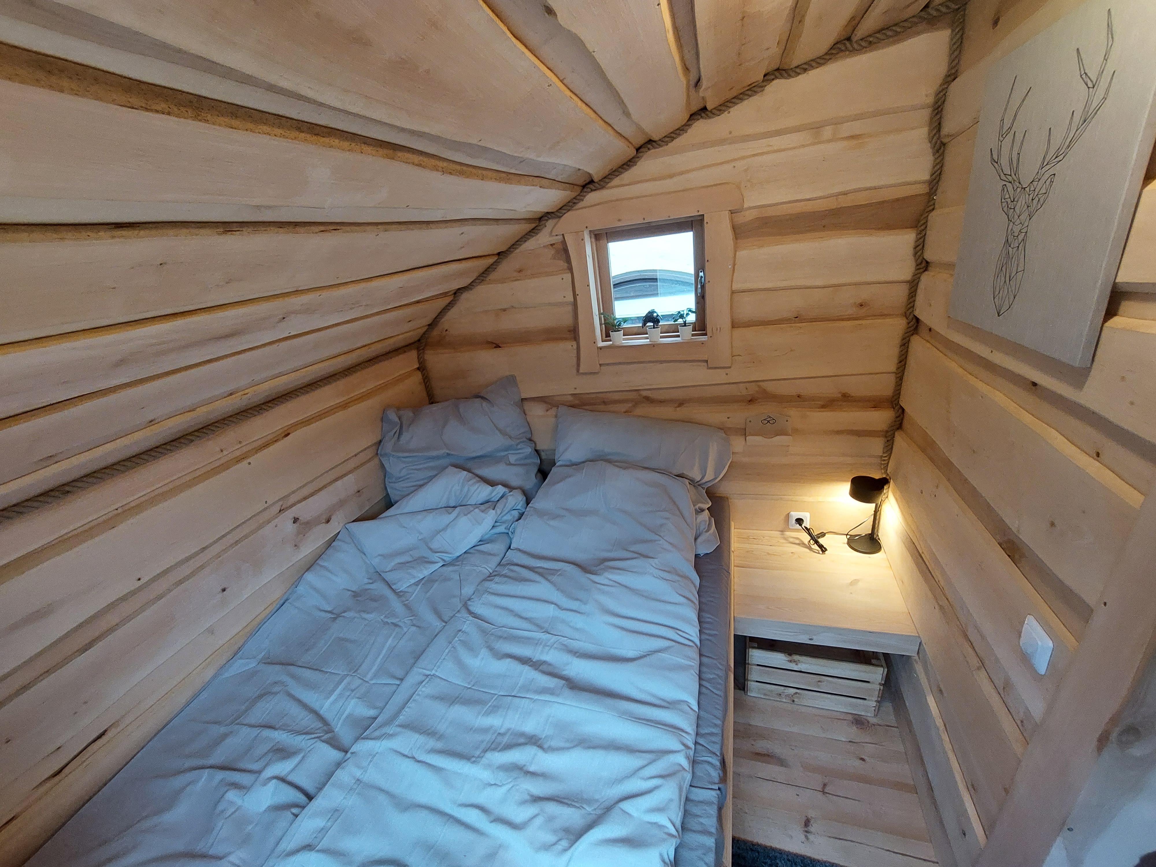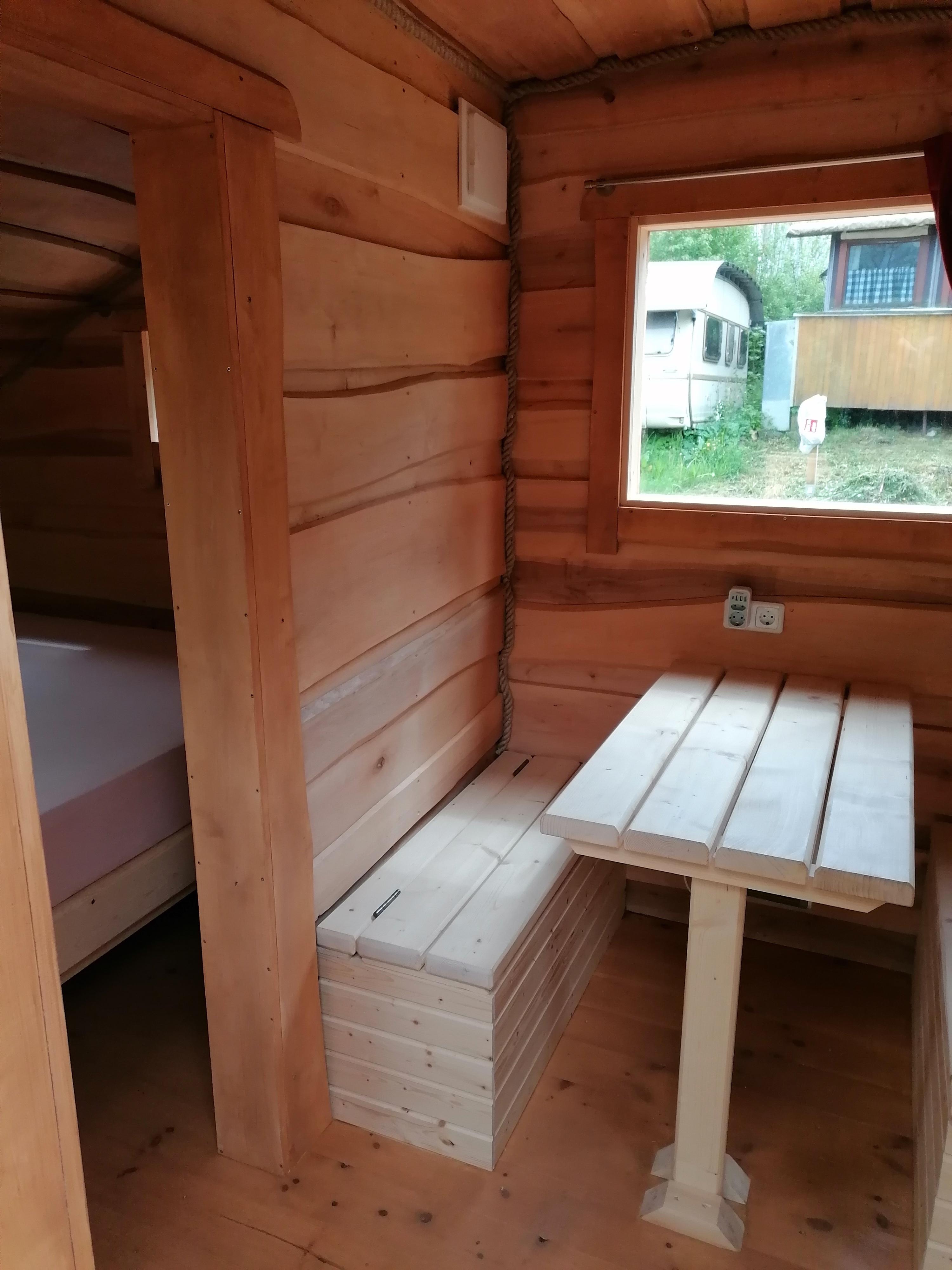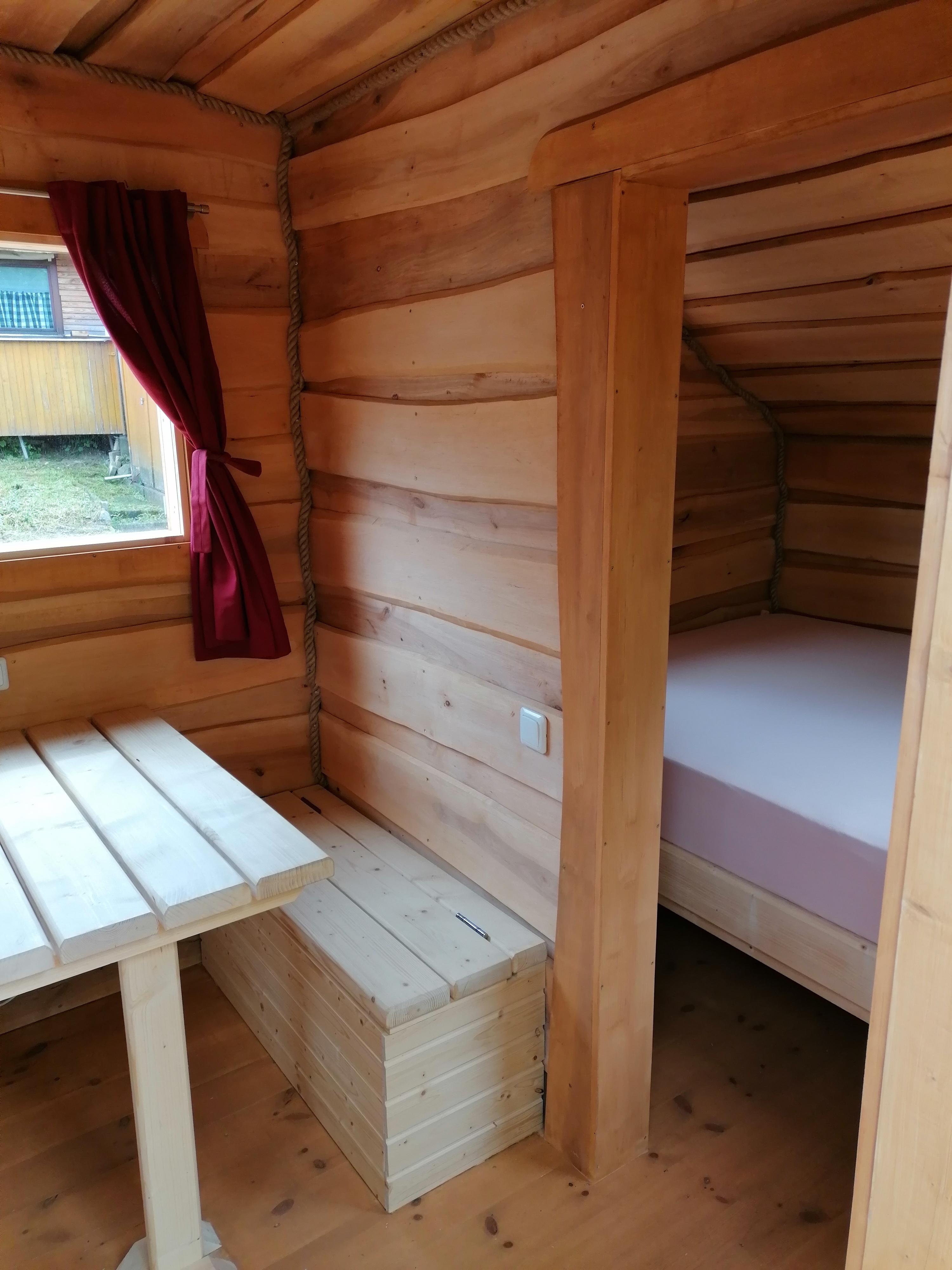 Unsere Schlafhöhle Heini bietet bequem Platz für bis zu 4 Personen - perfekt für Familien - sogar mit zwei Schlafbereichen und einem separaten Essbereich.