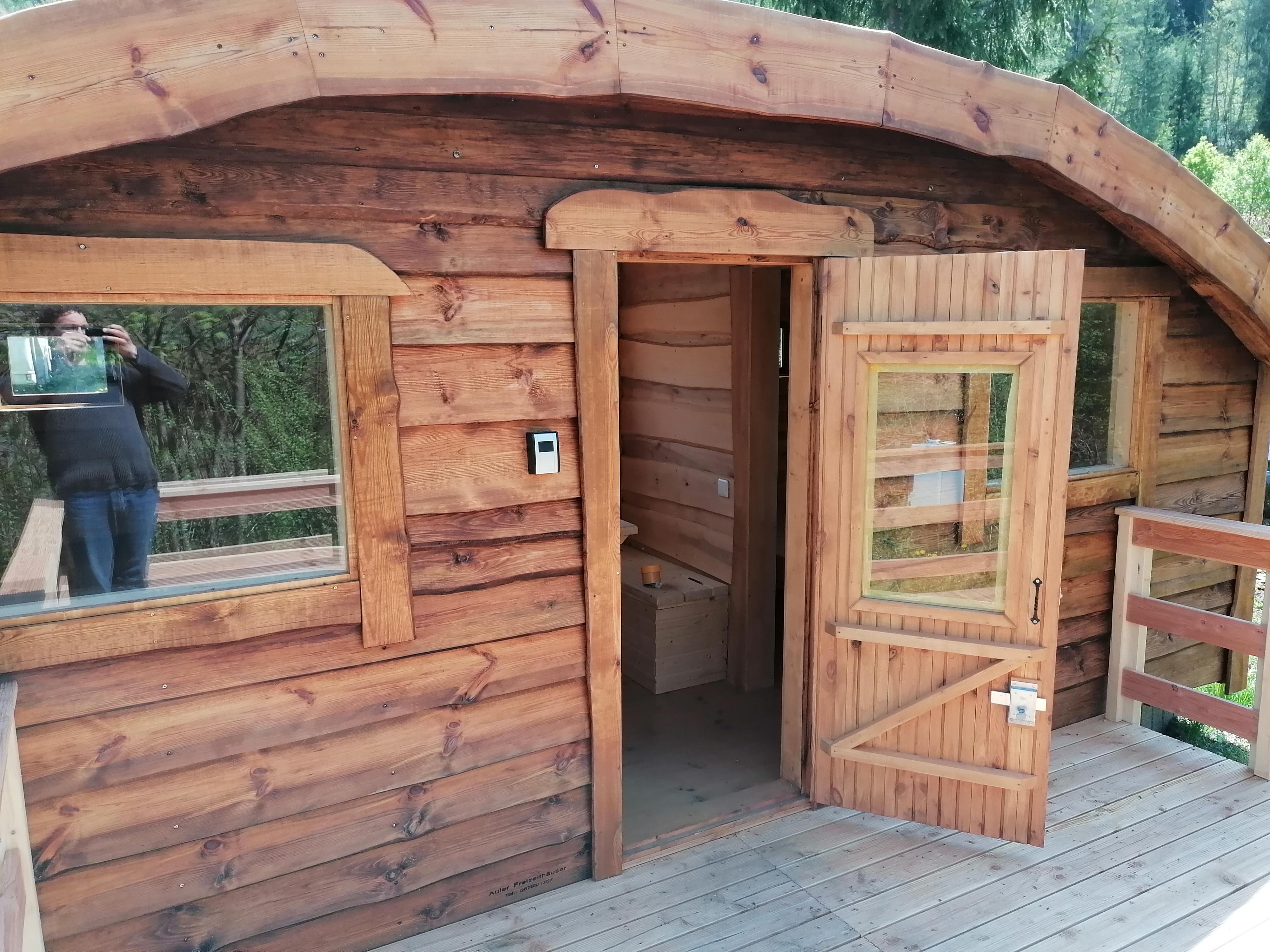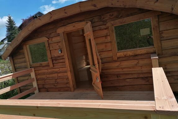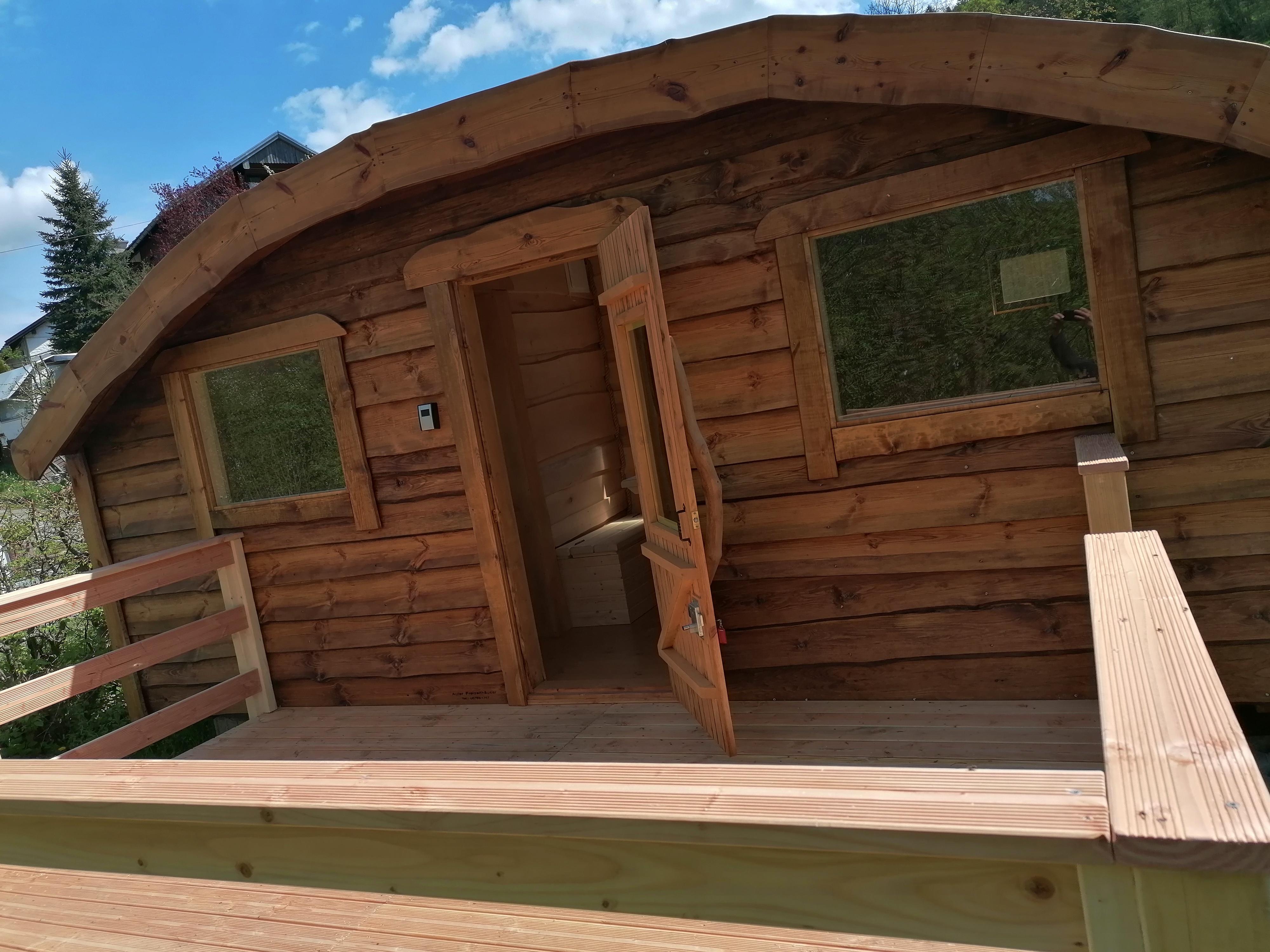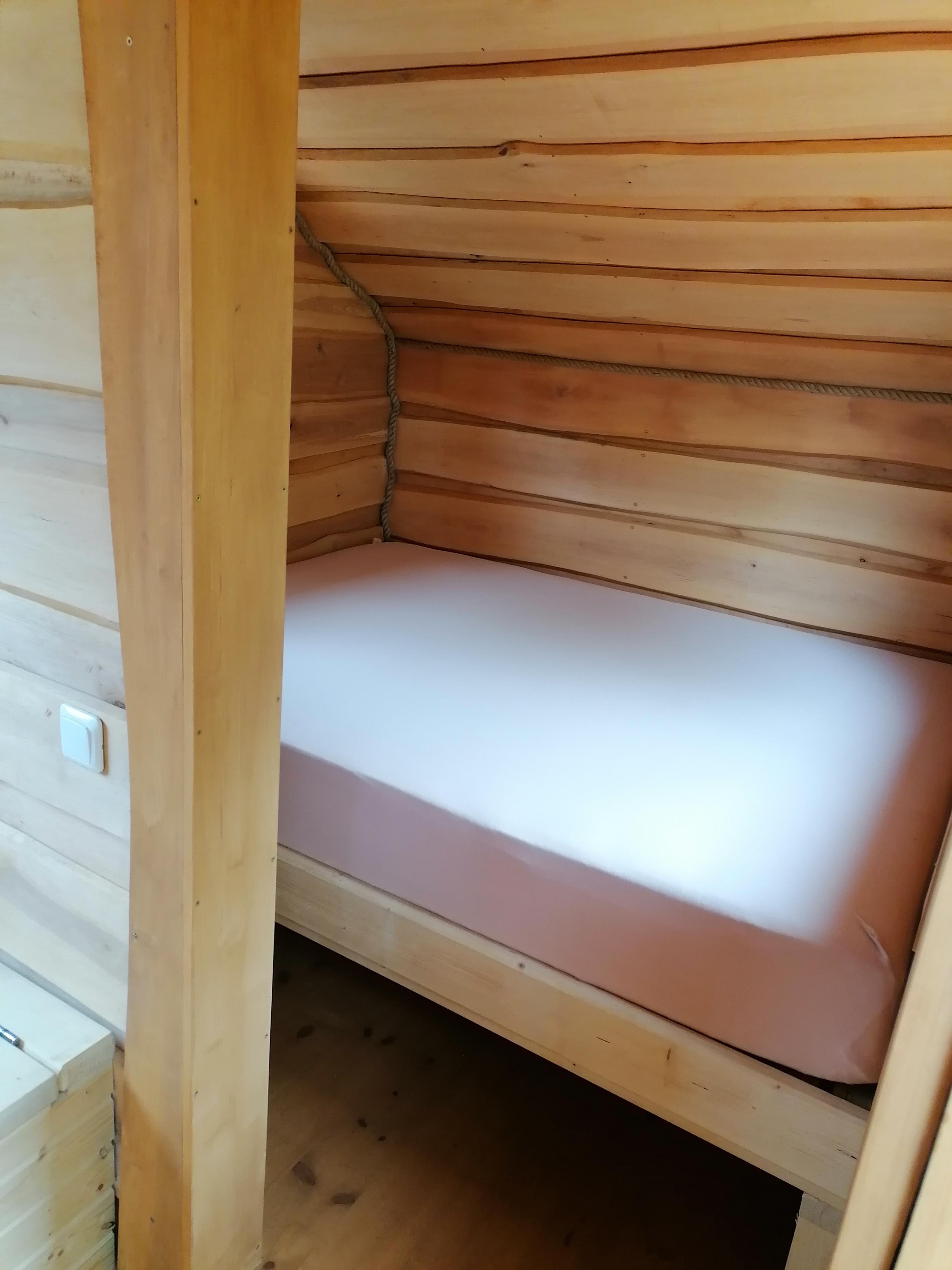 Unsere Schlafhöhle Heini bietet bequem Platz für bis zu 4 Personen - perfekt für Familien - sogar mit zwei Schlafbereichen und einem separaten Essbereich.
