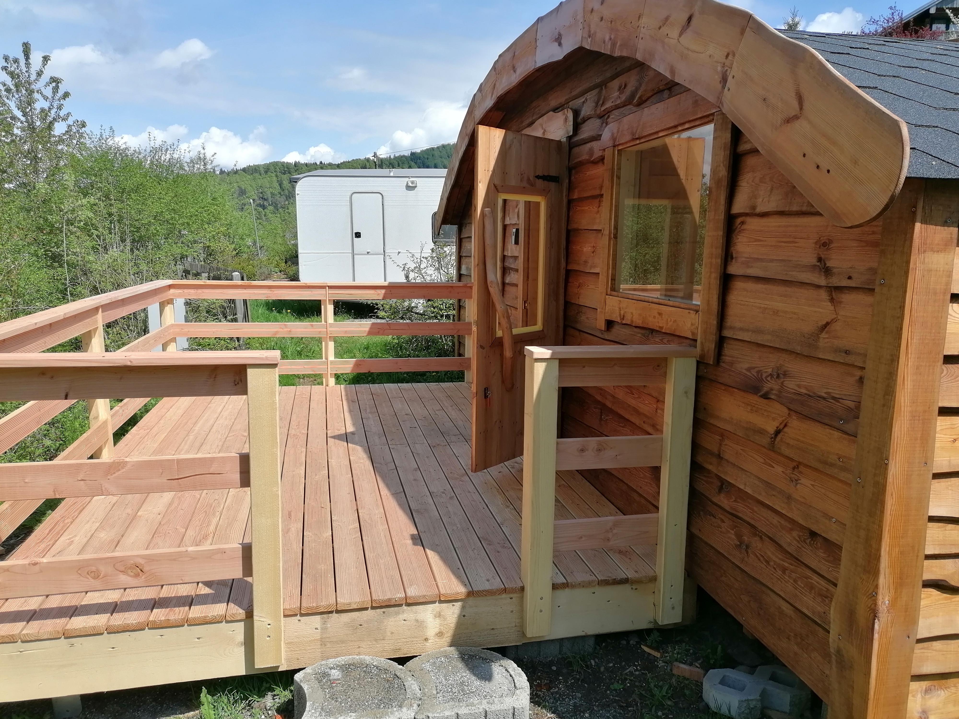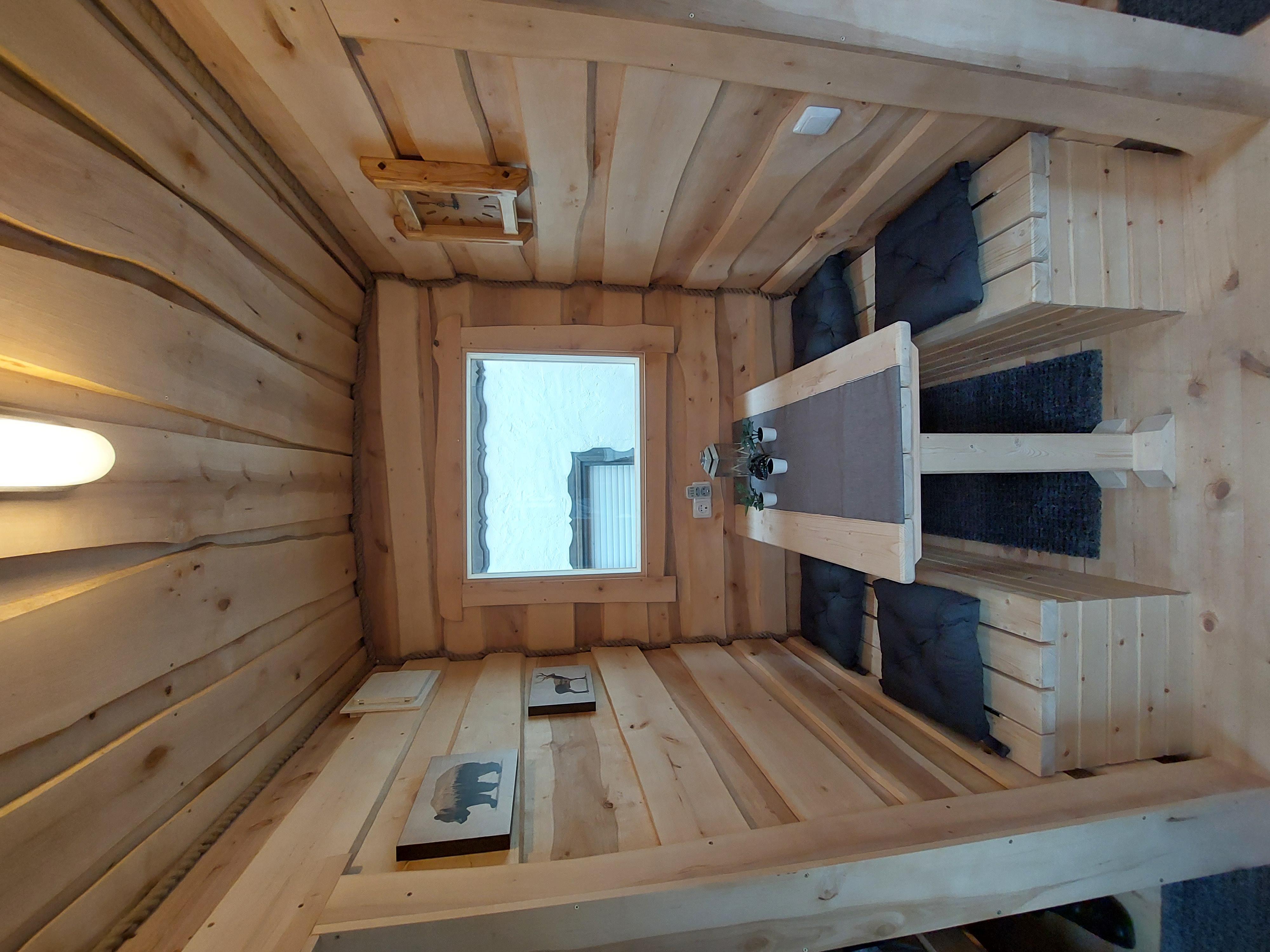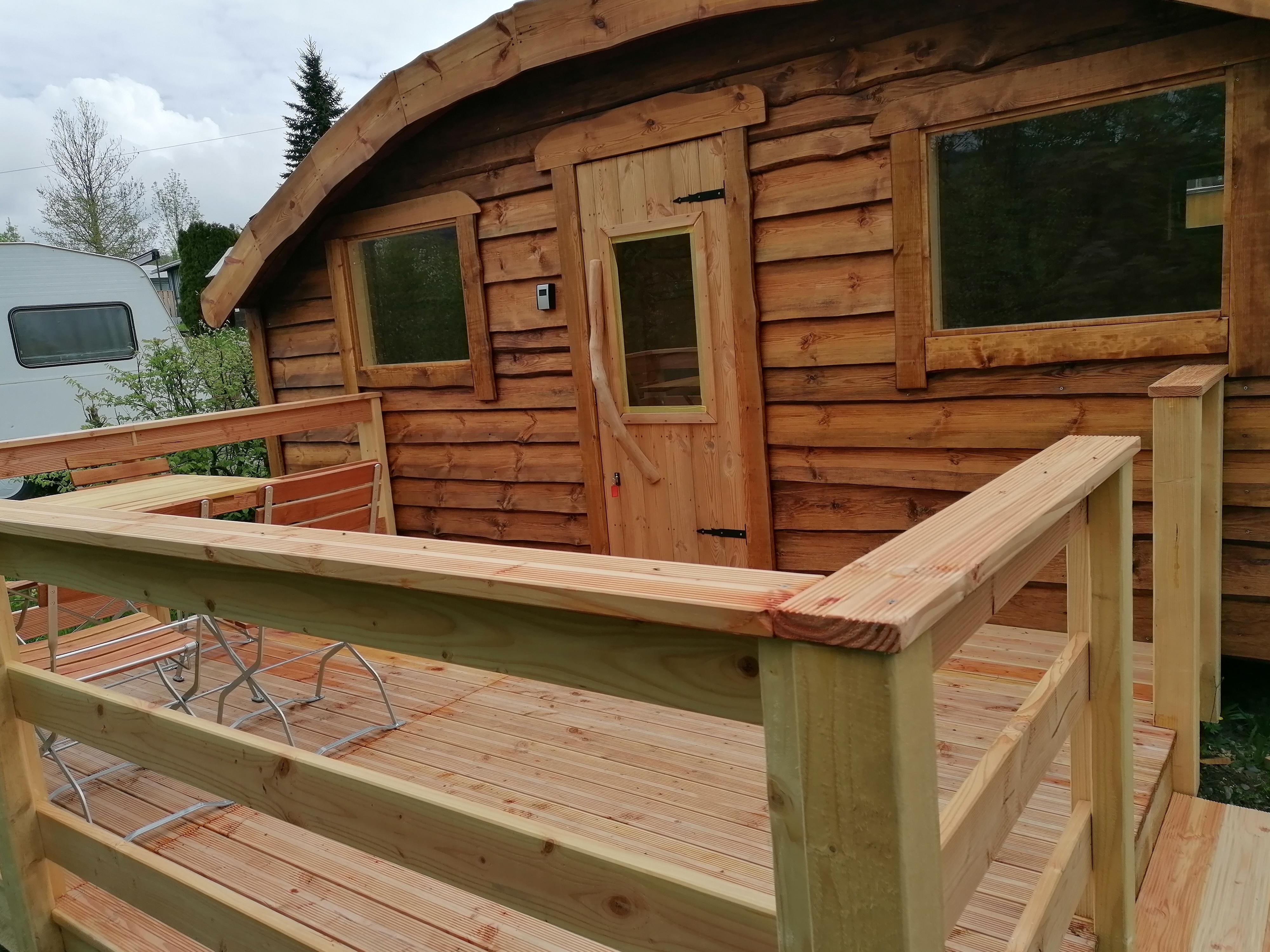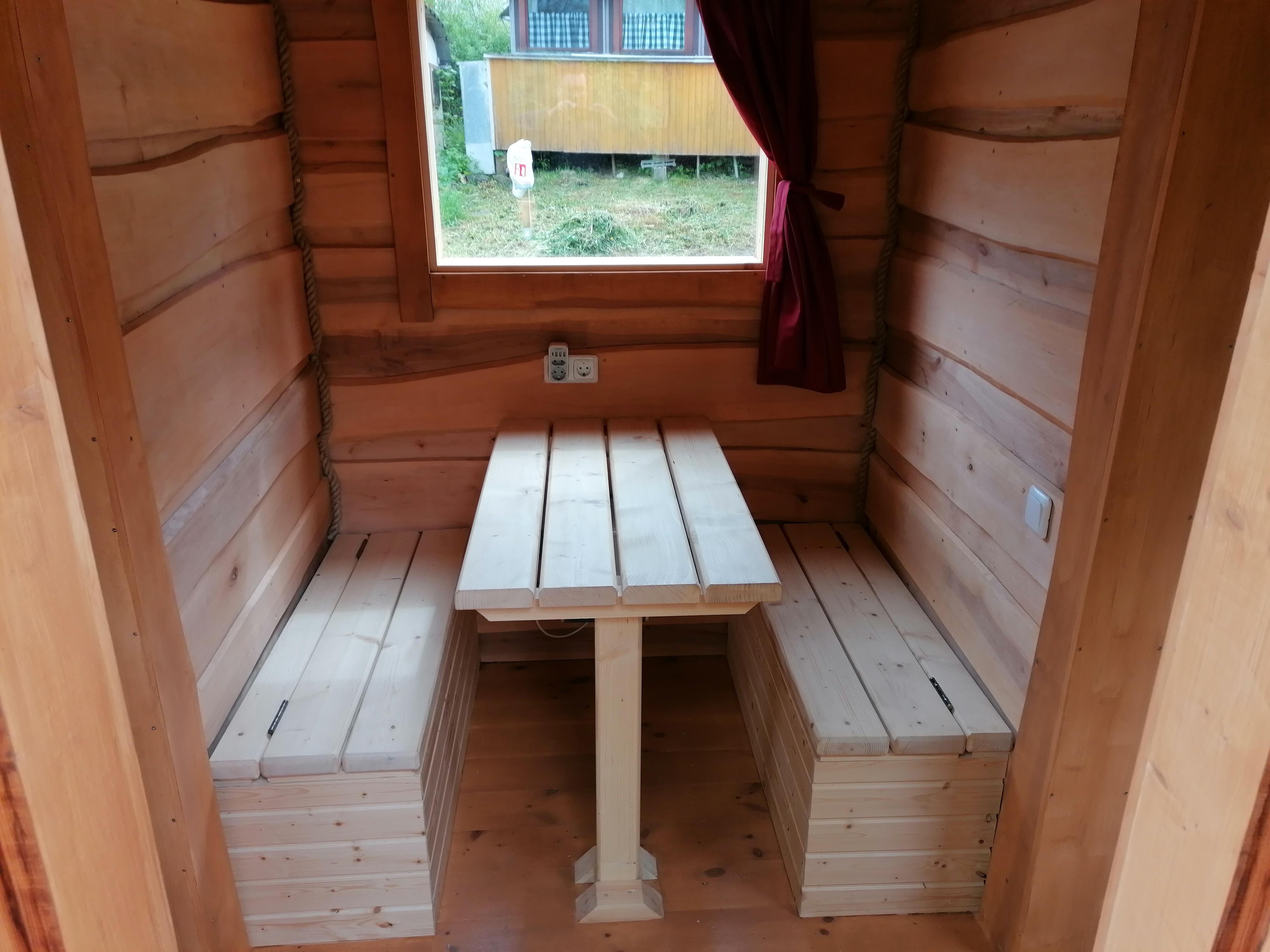 Unsere Schlafhöhle Heini bietet bequem Platz für bis zu 4 Personen - perfekt für Familien - sogar mit zwei Schlafbereichen und einem separaten Essbereich.