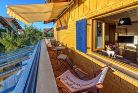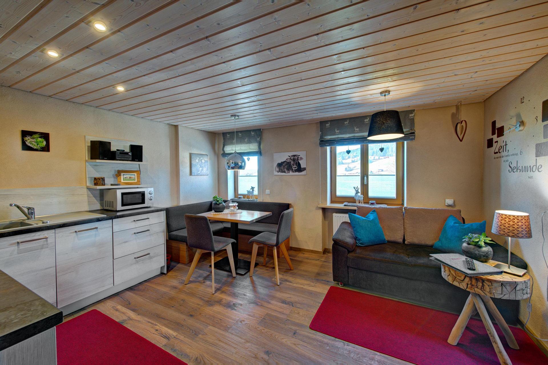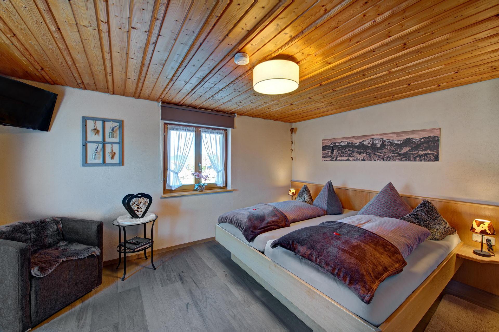 Schöne, gemütliche Ferienwohnung (60qm), für 2 - 4 Personen, 2 getrennte Schlafzimmer mit Waschgelegenheit , komplett eingerichtete Wohnküche, Balkon, Dusche/WC und Flur. Oberstaufen Plus-Gastgeber
