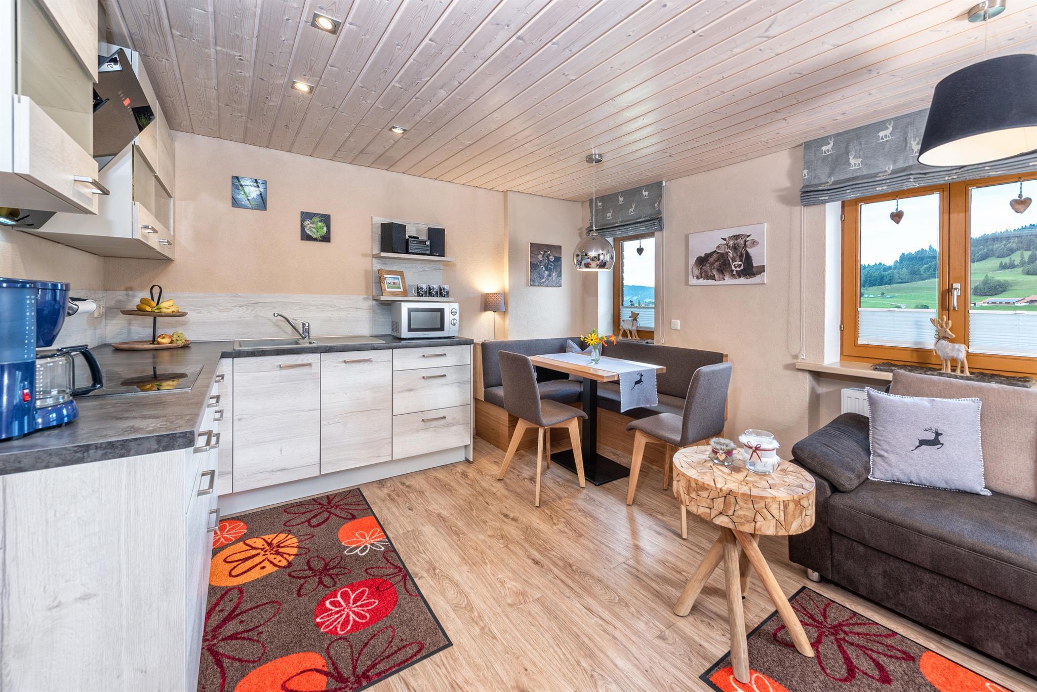 Unsere gemütlich eingerichtete, neu renovierte Ferienwohnung befindet sich ca. 2 km vom Ortskern Oberstaufen entfernt. Die Lage am Waldrand, inmitten grüner Wiesen, direkt am Premium-Wanderweg Kapfrunde ist Ausgangspunkt für viele schöne Wanderungen und Spaziergänge. Als unser Gast erhalten Sie zusätzlich zu unseren eigenen Leistungen die O-Plus-Karte, die Ihnen zahlreiche zusätzliche Leistungen bietet. Bitte haben Sie Verständniss, dass wir keine Haustiere aufnehmen.