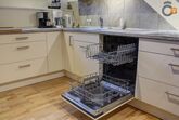 Die Ausstattung der Ferienwohnung beinhaltet: Waschmaschine, Spülmaschine, Kühlschrank mit Gefrierfach, Backofen, Cerankochfeld mit hochgelagertem E-Herd, Mikrowelle, Kaffeemaschine (Filtermaschine und Pad-Kaffeemaschine), Wasserkocher, Toaster, Fön, TV, Kinderhochstuhl.