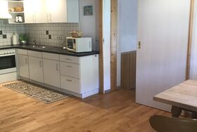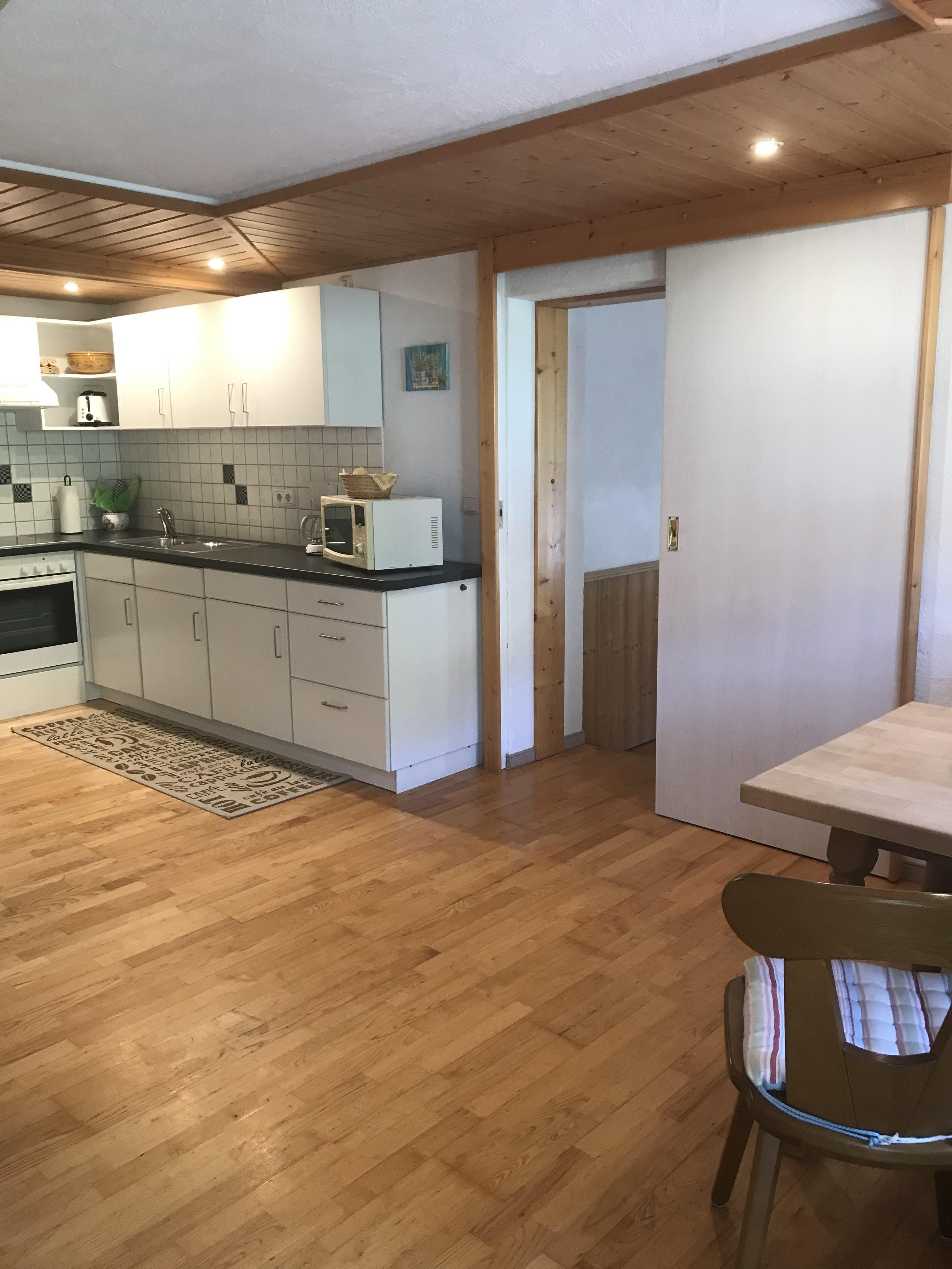 Küchenzeile, Spülmaschine, Backofen,Micro und gemütliche Essecke , große Terrasse mit Garten.
