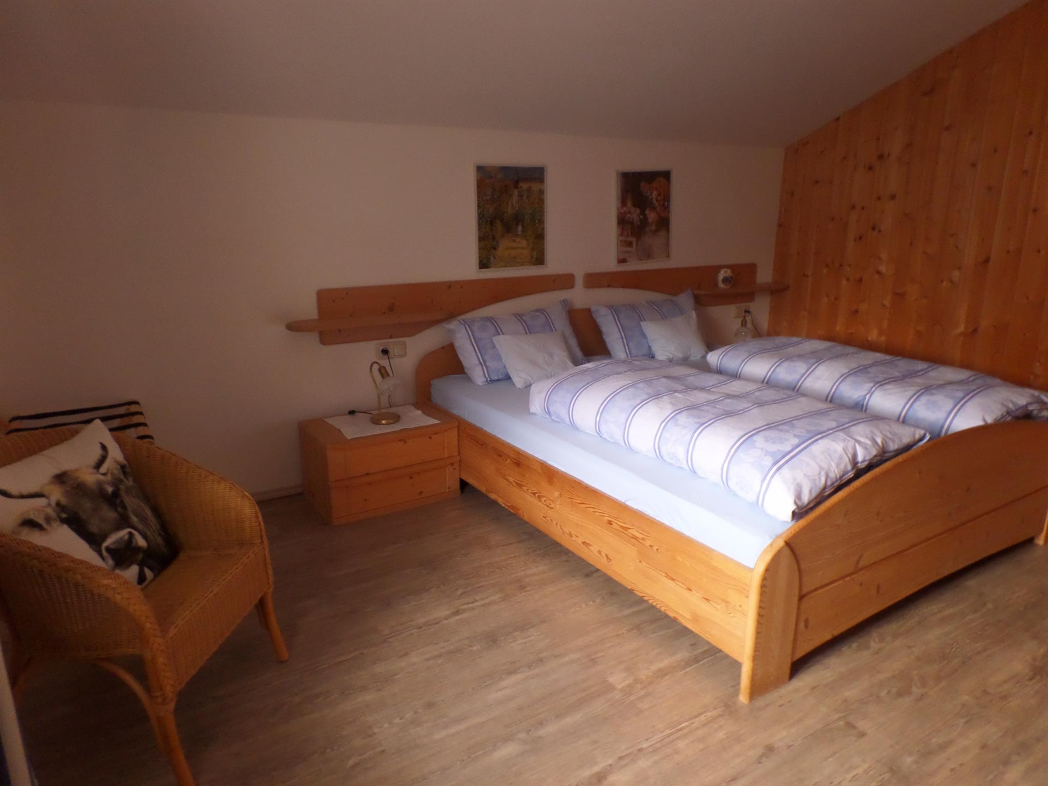 Gemütliche Ferienwohnung mit separatem Schlafzimmer, Betten in Komfort-Höhe mit verstellbarem Kopfteil, Wohn-/Schlafraum, separate Küche, reservierter PKW - Stellplatz oder Car-Port, Dusche WC, Telefon, Kabel-TV, Radio, grosser Ostbalkon mit herrlichem Bergblick. Unsere Ferienwohnung ist eine Nichtraucherwohnung - auf dem Balkon darf geraucht werden.