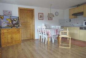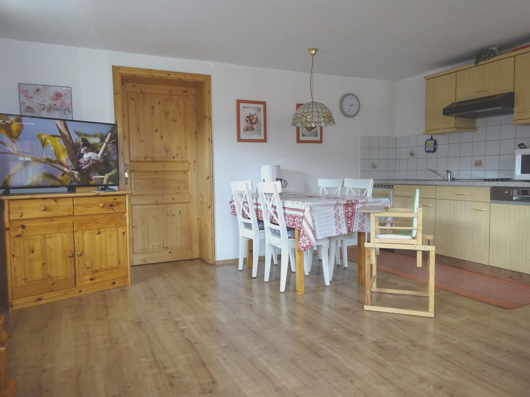 Die Küchenzeile ist komplett ausgestattet mit Geschirrspüler, Mikrowelle,Toaster, Kaffeemaschine, Kochfeld, Geschirr.