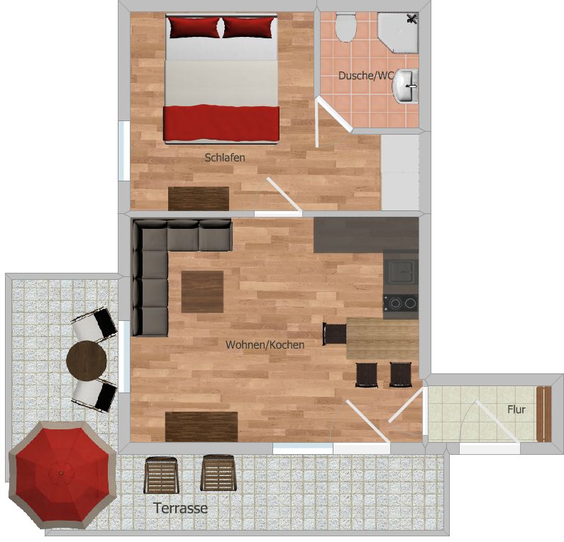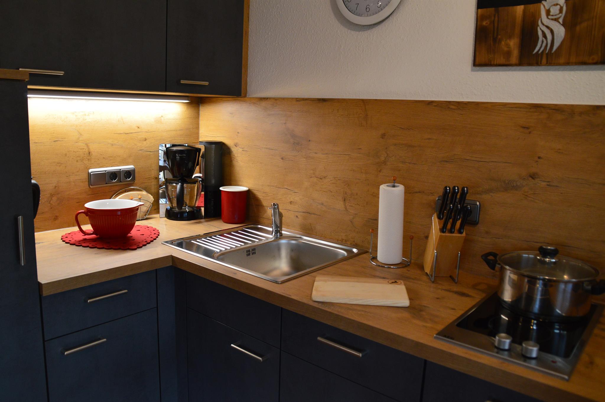 Hallo lieber Urlauber, unsere 40 qm große Ferienwohnung Sonnenschein im Erdgeschoß mit eigenem Eingang bietet Ihnen einen separaten Schlafraum, Dusche/WC, Wohnraum mit Schlafcouch und eine Küchenzeile mit Essplatz. Die Südwest-Terrasse lädt Sie sowohl zu einem Frühstück mit Sonnenaufgang als auch zu einem Grillabend mit Sonnenuntergang ein. Sie werden sich bei uns wohlfühlen.