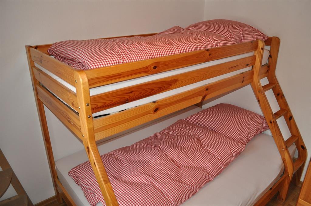 Geräumige Ferienwohnung für 2-5 Personen mit Südbalkon. Zwei sep. Schlafräume, davon ein Doppelschlafzimmer und ein Schlafzimmer mit Stockbett. Komplett ausgestattete, neuwertige Küche im Wohnbereich mit gemütlichem Essplatz. Badezimmer mit Dusche und WC. Eigener Eingang ebenerdig.