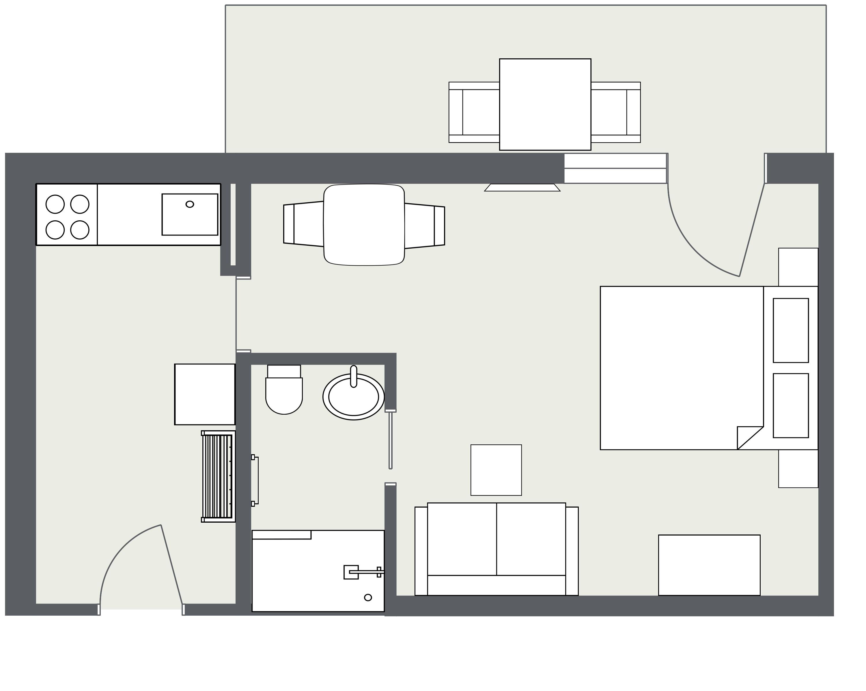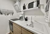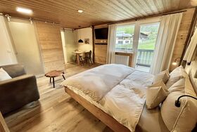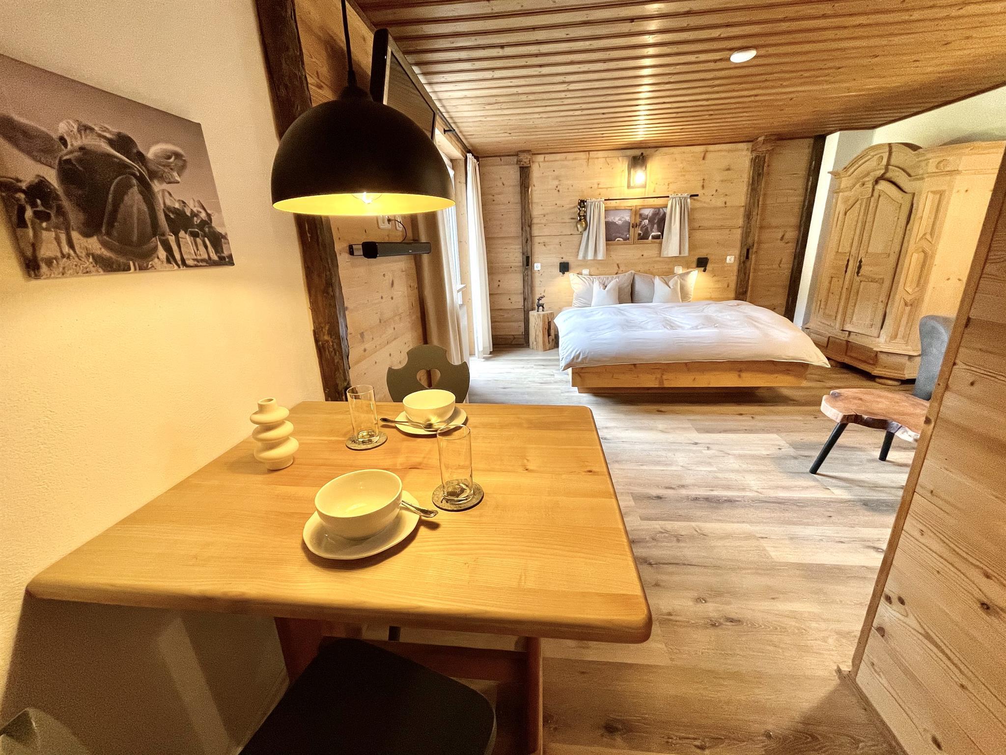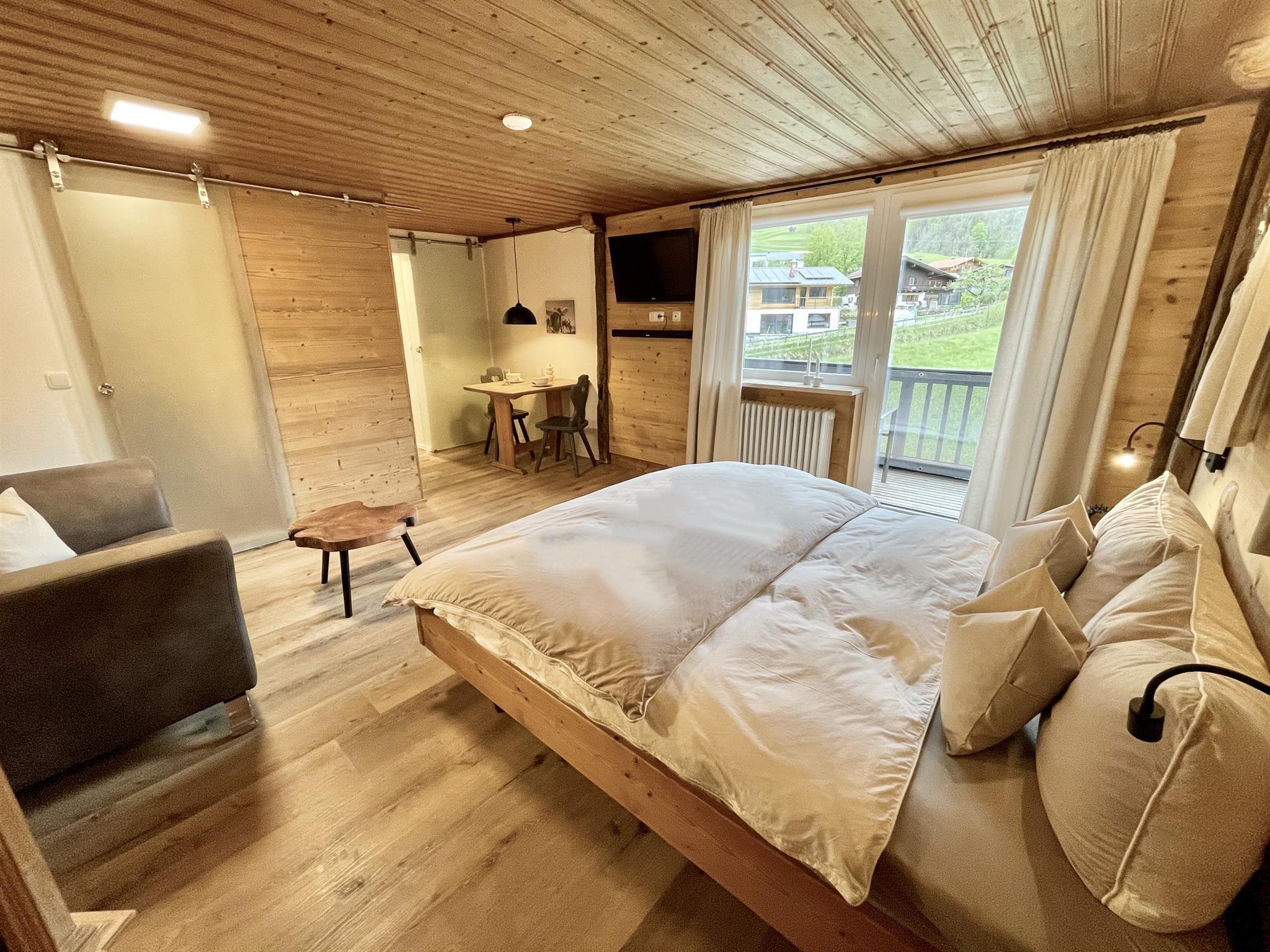 Unsere Ferienwohnung Spieser eignet sich hervorragend für 1-2 Personen. Sie verfügt über eine Grundfläche von 32 Quadratmeter und einen Balkon. Durch den Eingang gelangen Sie durch eine Garderobe und die Küche in das Wohn-/ Ess-/ Schlafzimmer. Dieses bietet eine Couchecke, einen Esstisch für 2 Personen, einen 32 Sat TV, eine Bluetooth Soundbar, ein Doppelbett (160cm x 200cm), einen Kleiderschrank, Verdunkelung und mehrere Beleuchtungsmöglichkeiten. Von hier aus gelangen Sie auch auf den Balkon.