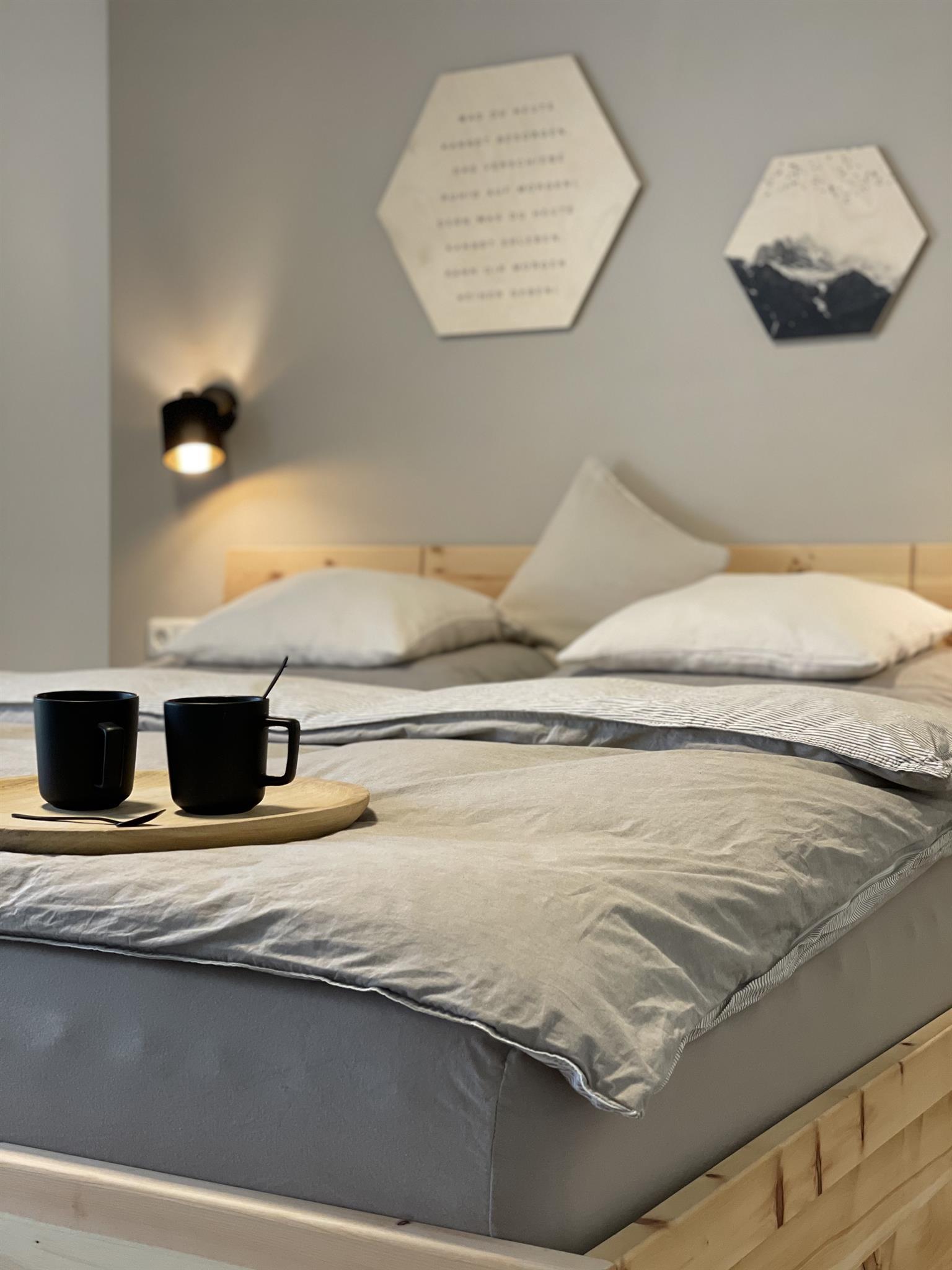 Unsere Ferienwohnung Alpschick eignet sich hervorragend für 2 Personen mit ausgefallenem Geschmack. Sie verfügt über eine Grundfläche von 35 Quadratmeter und einen Balkon. Durch den Eingang gelangen Sie in den Wohn- / Essraum mit offener Küche und kleiner Garderobe. Durch eine Glasschiebetür gelangen Sie in das Schlafzimmer mit angrenzendem Badezimmer. Die Wohnung ist im modernen Industriedesign eingerichtet und verfügt über einen wunderschönen, überdachten Balkon.