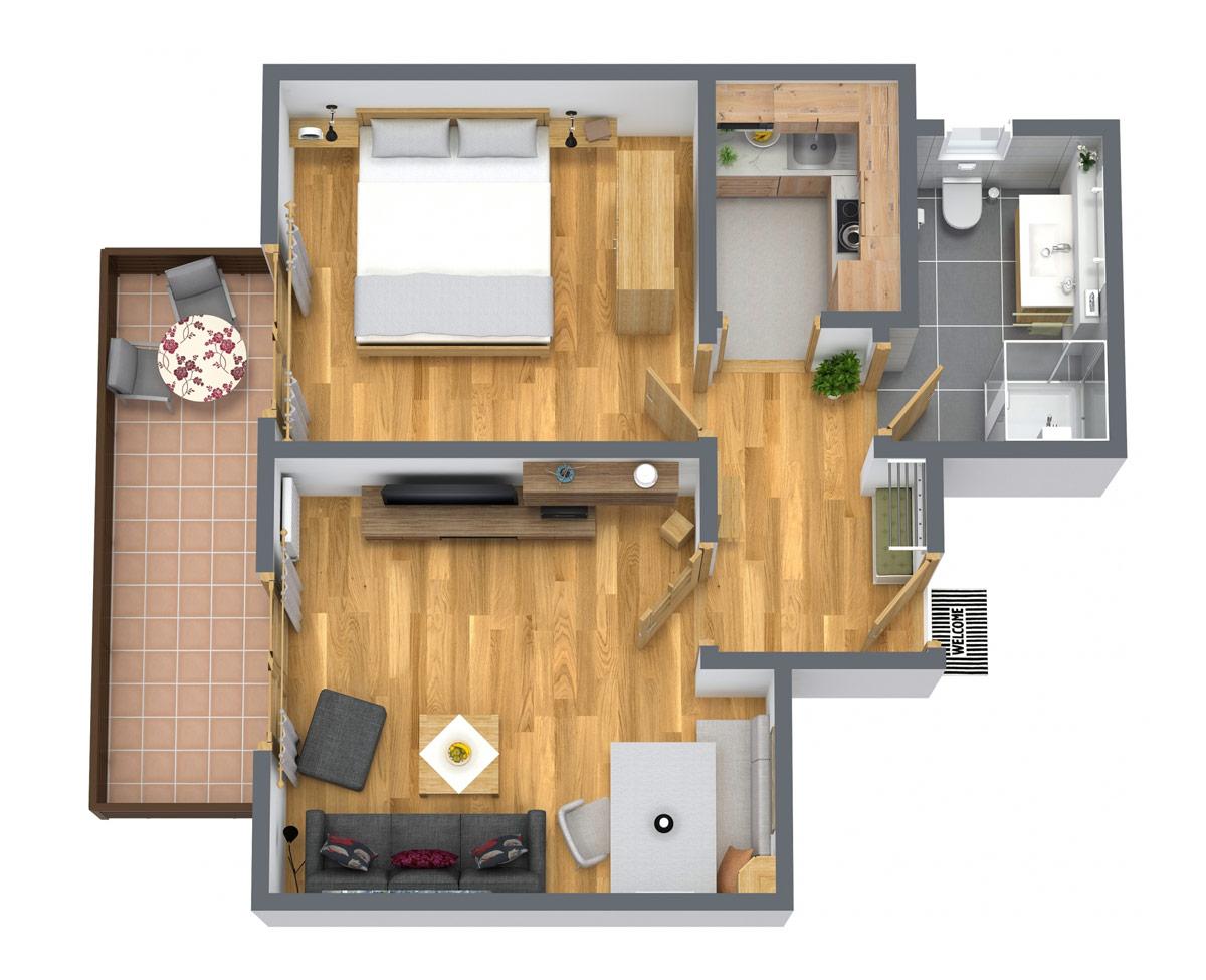 Unsere 3 Ferienwohnungen für 2 - 4 Personen haben alle einen Balkon und getrennte 1- oder 2-Schlafzimmer.