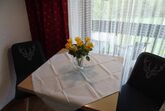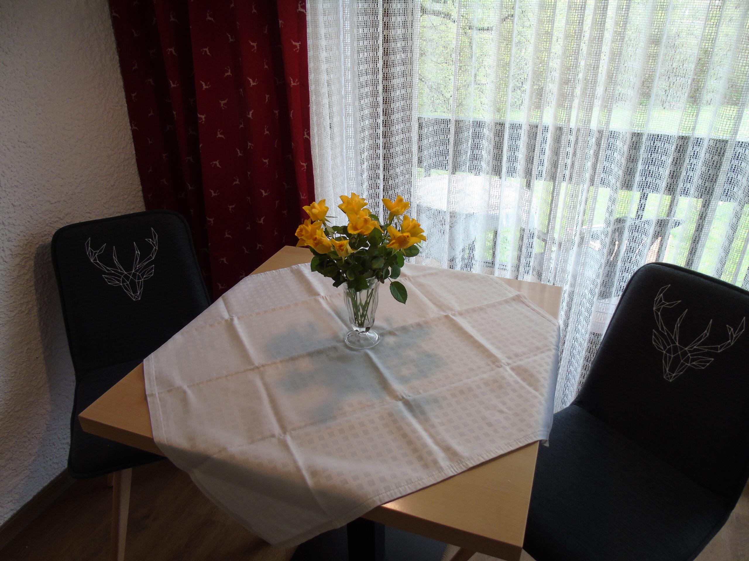 Unsere frisch renovierte Ferienwohnung Nr. 3 besticht durch den Balkon mit der schönsten Aussicht sowie den meisten Sonnenstunden. Genießen Sie die Abendsonne und den wunderbaren Ausblick auf unseren Garten sowie auf das Imberger Horn. Der Balkon verfügt über einen kleinen Tisch sowie zwei gepolsterten Stühlen, die zu gemütlichen Mahlzeiten an der frischen Luft einladen.