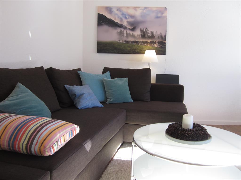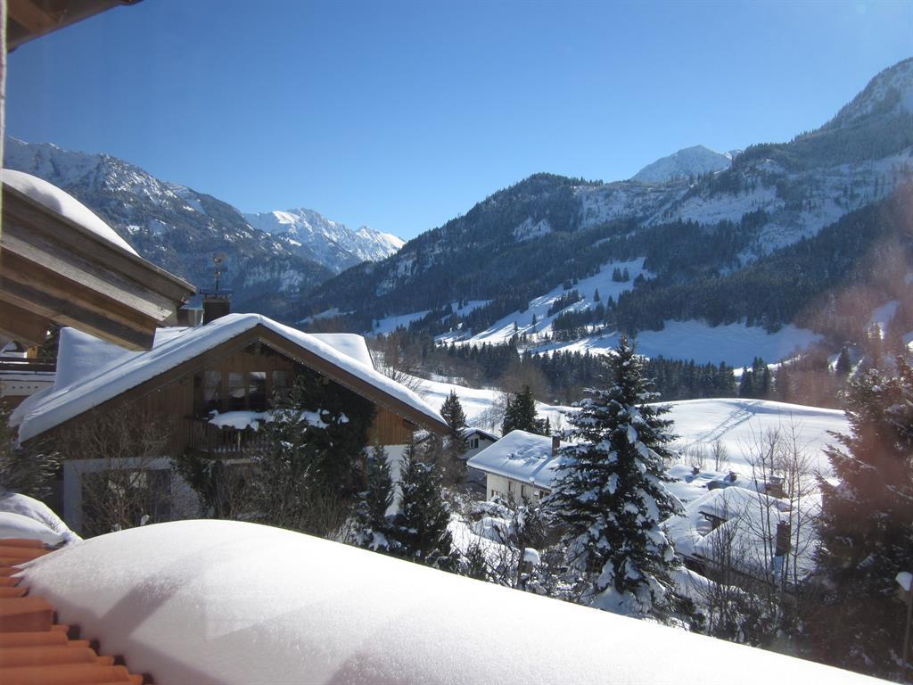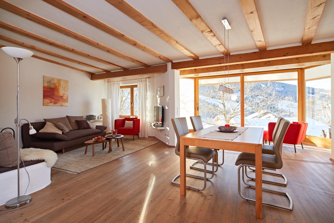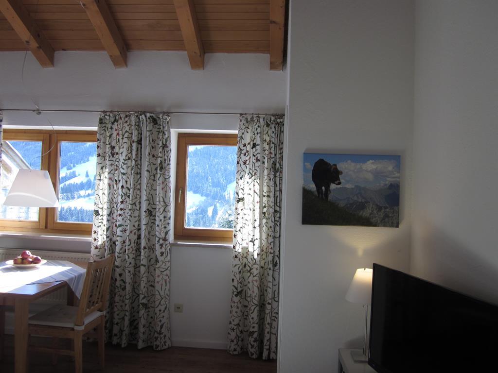 Sehr helle gemütliche Dachgeschosswohnung mit offenem Dachstuhl. Von Wohn- und Schlafraum herrlicher Ausblick auf Berge und Ostrachtal. Kleiner