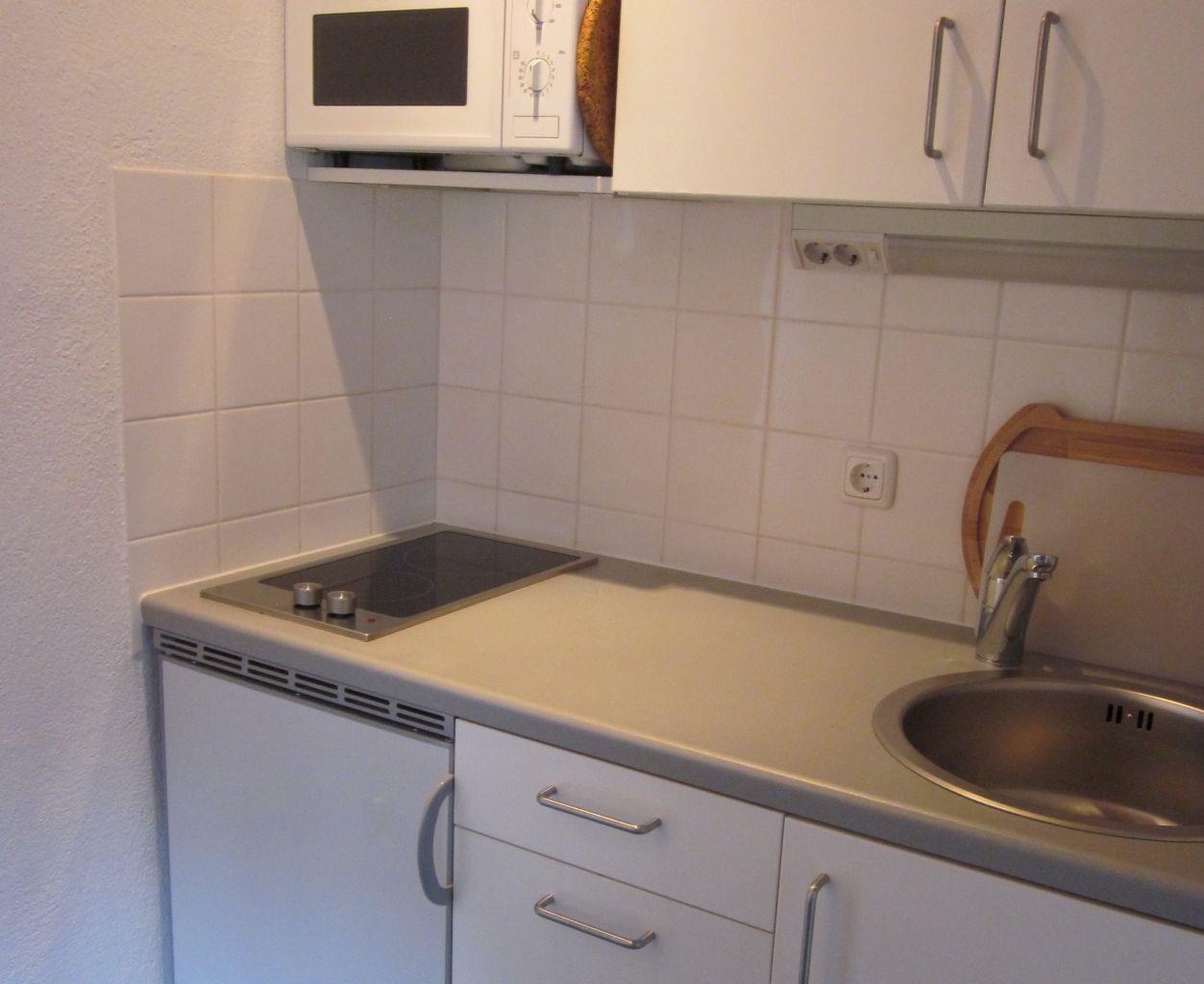 Westbalkon, großzügiges Duschbad, kleine Appartmentküche.