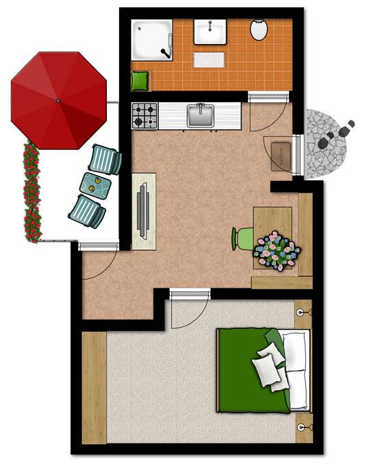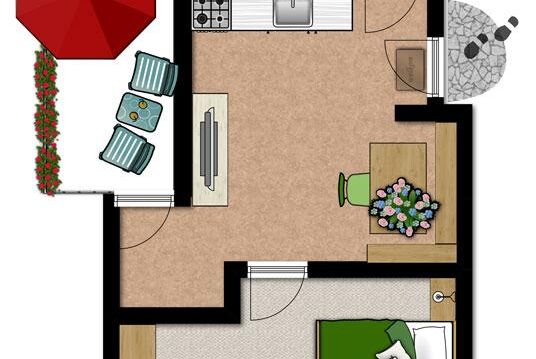 Kuschlige 3-Sterne Ferienwohnung für zwei, satten Fernblick in die Berge, windgeschützer Südbalkon,36m² groß, Schlafzimmer, gemütliche Wohnküche mit gepolsterten Eckbank, Flachbildschirm, Küchenzeile mit 2-Plattenherd, Microwelle, Kühlschrank, Kaffeemaschine, Toaster, Eicherkocher, reichlich Ess- und Kochgeschirr. Badezimmer mit Dusche und Kneippgießhandstück, Waschbecken und WC. Bett- Frottee und Küchenwäsche in der Wohnung.