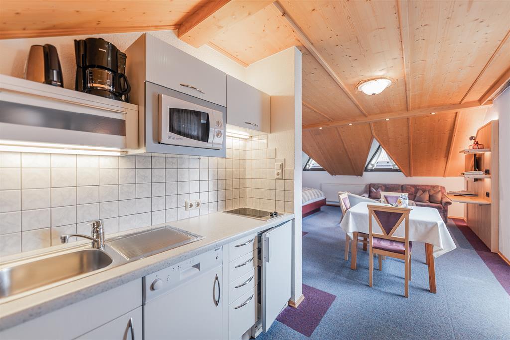Das Studio Apart Julia für 2 Personen mit südwestseitigem Balkon bietet Ihnen Komfort und Gemütlichkeit. Von Ihrer Wohnung aus können Sie einen malerischen Ausblick auf die Tiroler Bergwelt genießen. Die mit Liebe zum Detail eingerichtete Fewo lädt nach einem erlebnisreichen Tag zum Entspannen ein. Offener Schlaf-, Koch-, Wohnraum mit einem Doppelbett, Sitzecke mit einem Sofa und einem Flachbild-Sat-TV, Safe, Küchenzeile mit Geschirrspüler, Kaffeemaschine, Senseo Maschine, Mikrowelle, Kühlschrank, Standbackofen, 2-Plattenceranherd, Toaster, Wasserkocher und Esstisch; extra Badezimmer mit Dusche/WC und Bademantel; Größe ca. 42 m². Auf Anfrage auch für 3 Personen möglich!