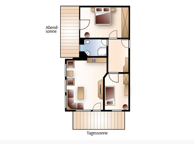 -Separate Schlafräume (Doppelbett im Elternschlafzimmer und Stockbett im Kinderschlafzimmer)
