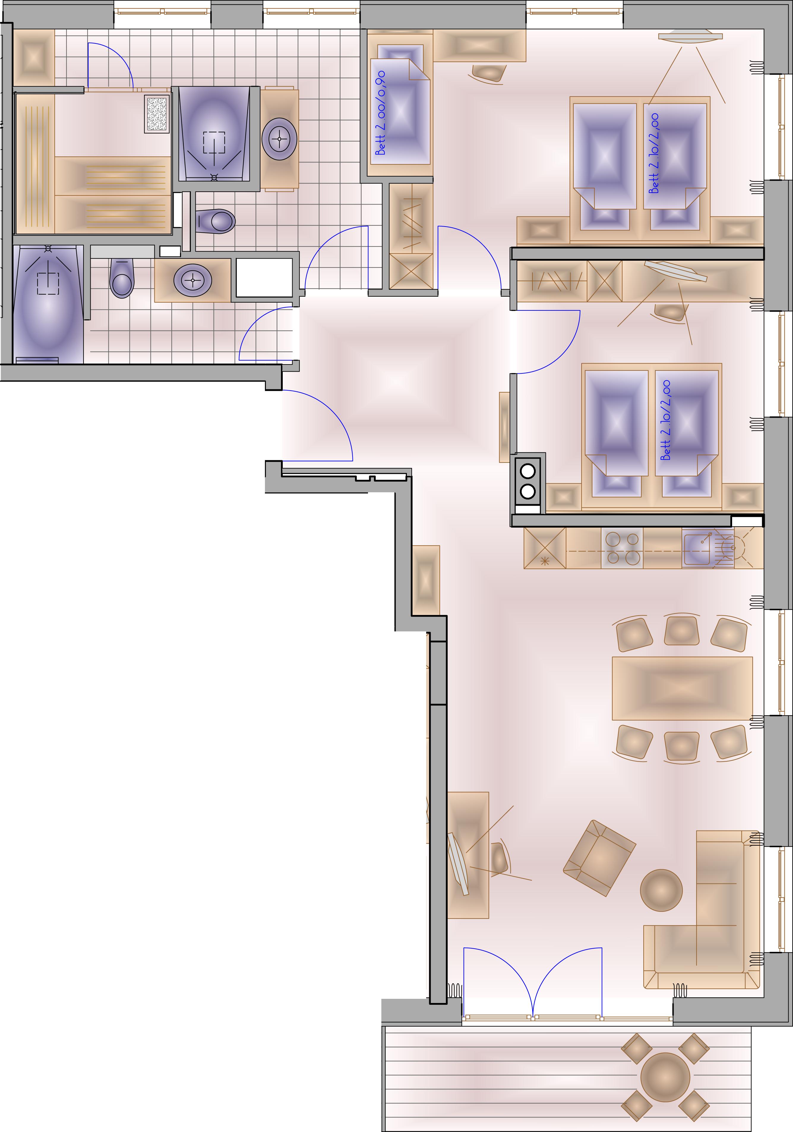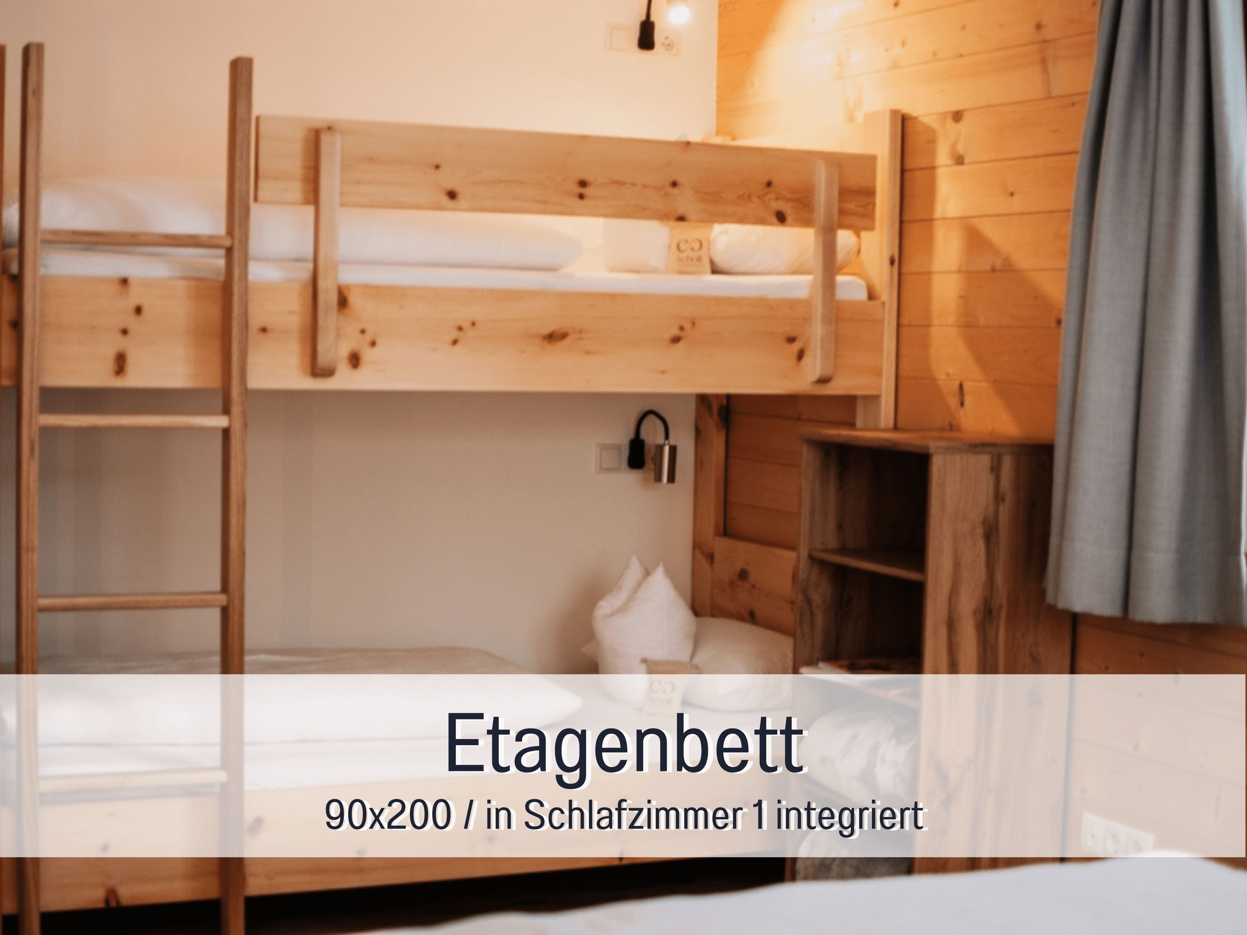 • zusätzliches Etagenbett (90x200cm) aus Zirbe in einem der SZ