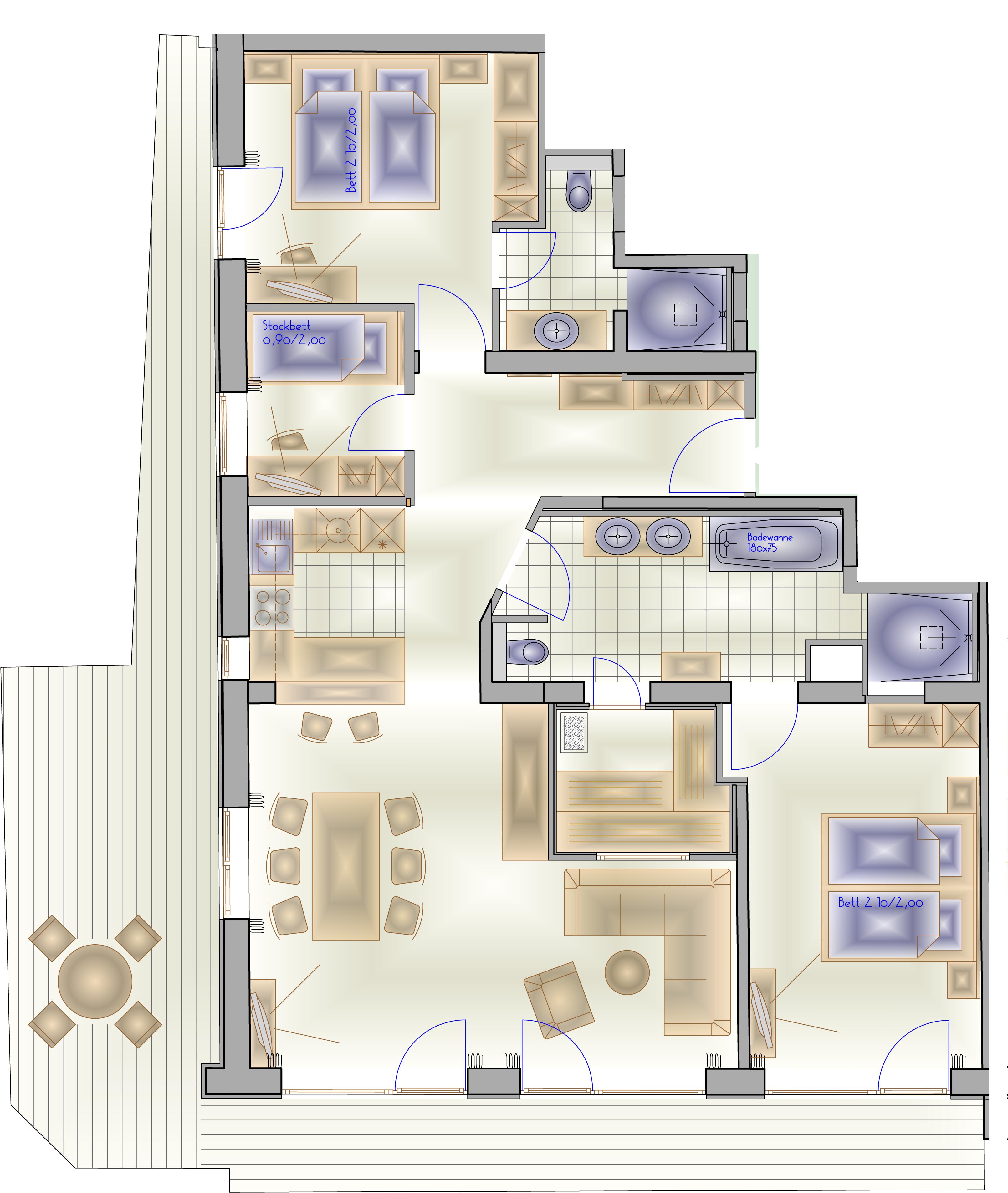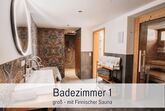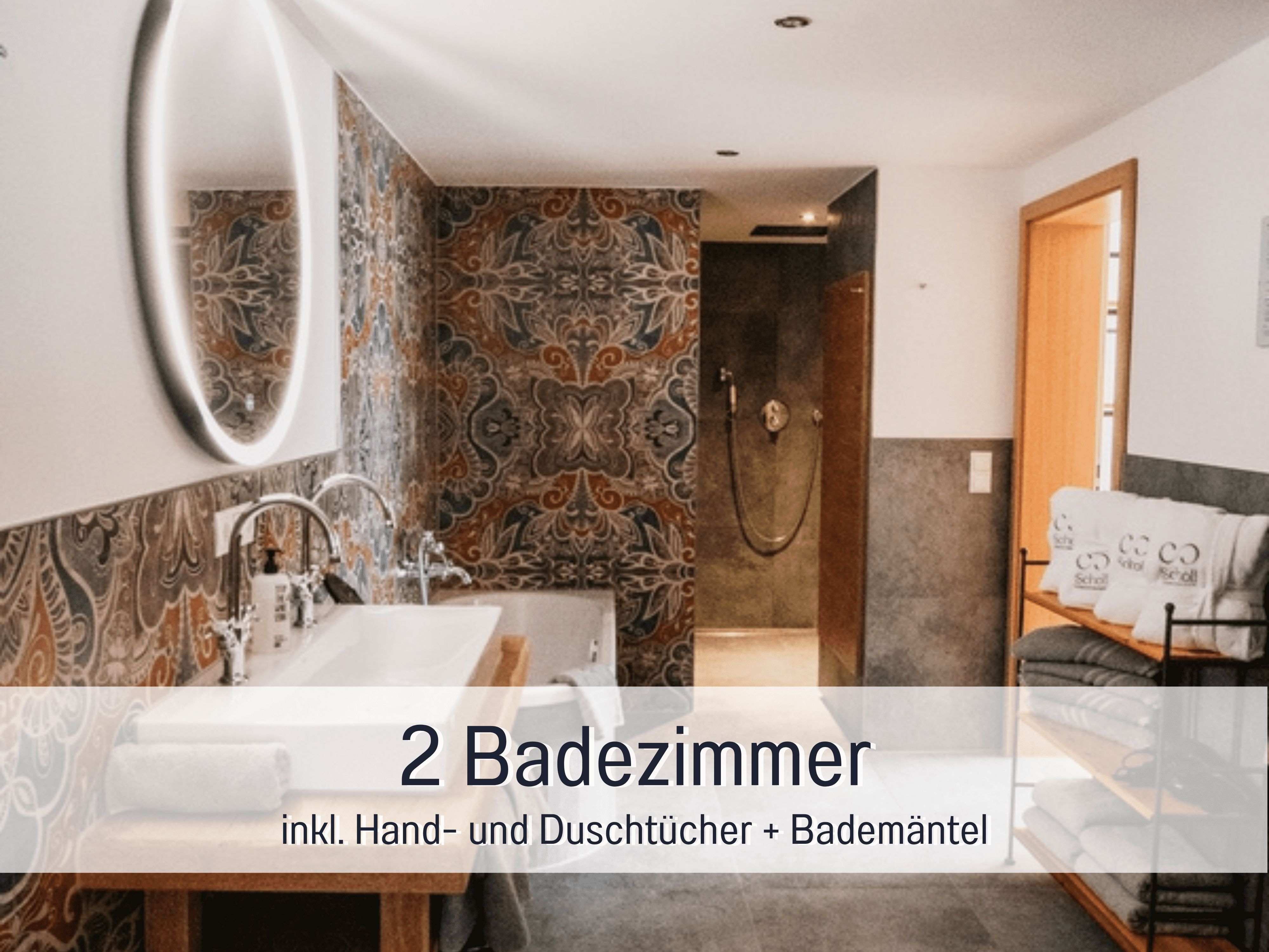 • zwei getrennte Schlafzimmer mit Doppelbetten aus Zirbe in Überlänge