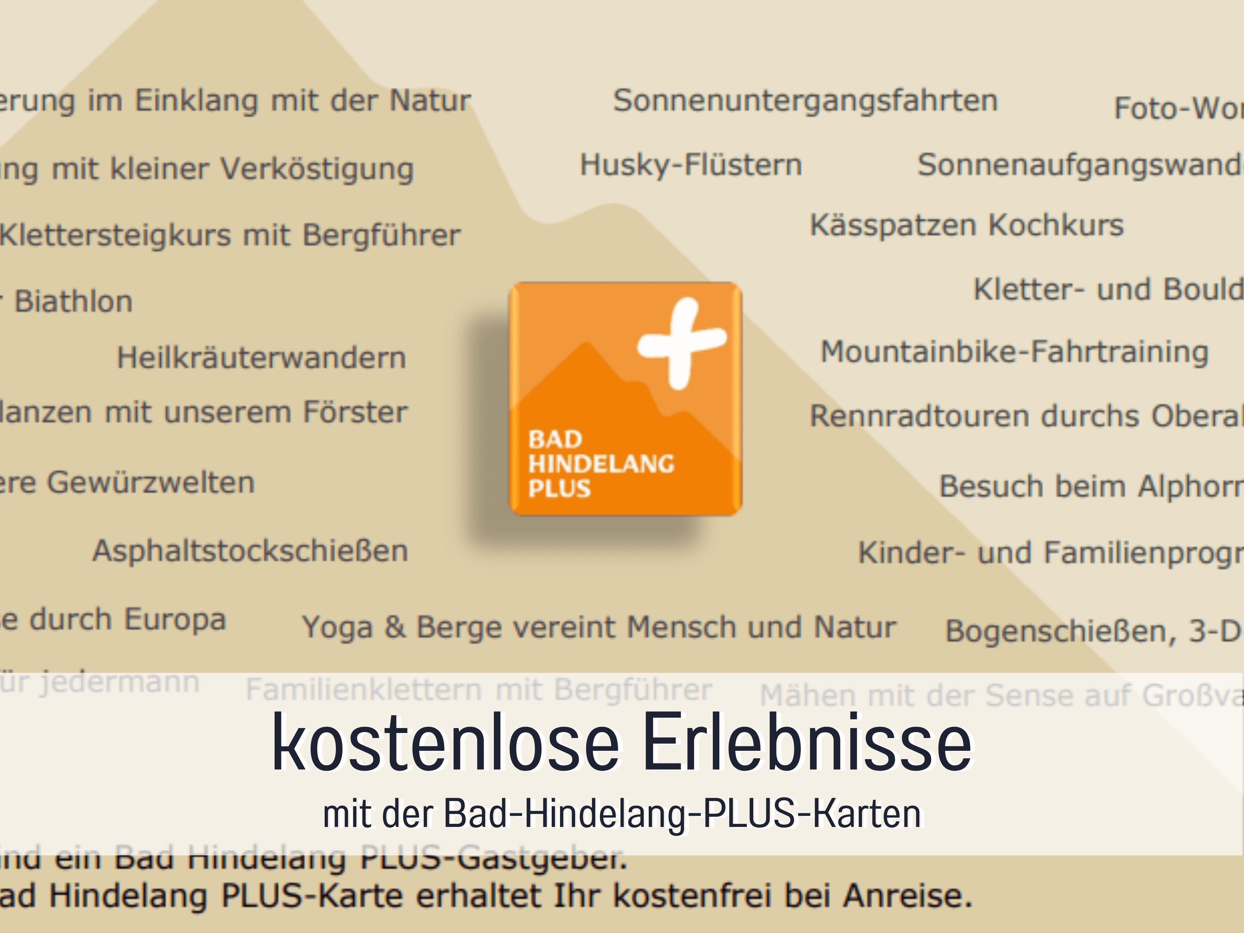 Ein besonderes Highlight: Erlebnisgarantie mit der Bad Hindelang PLUS Card - für Sie als unsere Gäste sogar kostenlos!