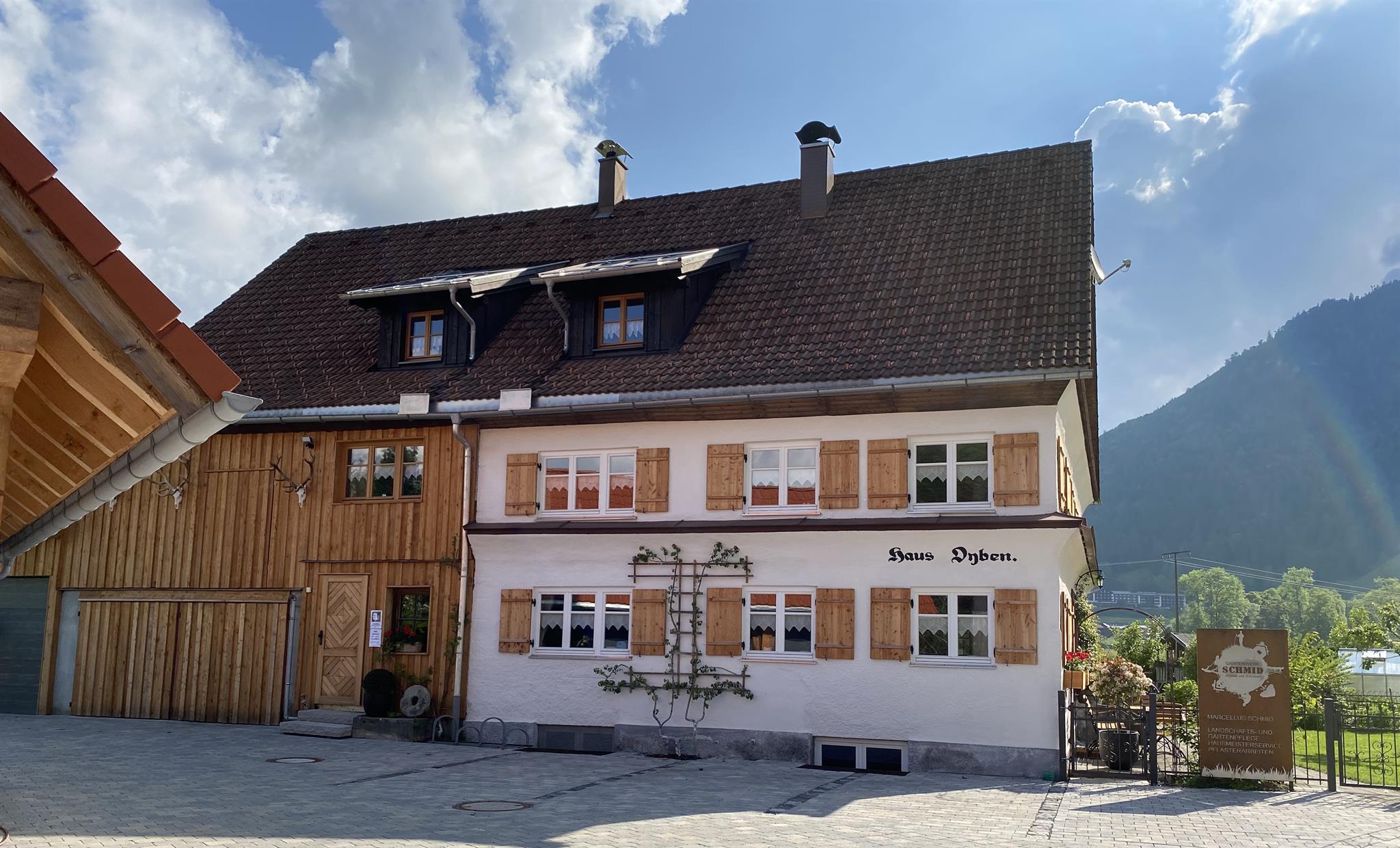 Das Haus Oyben befindet sich umgeben von Wiesen im Ortsteil Nordpol ausserhalb der Ortschaft Bad Oberdorf und Bad Hindelang. Im Haus befinden sich 2 neu gebaute Ferienwohnungen mit moderner, hochwertiger Ausstattung im Dachgeschoss. Ein Stellplatz für Ihr Auto befindet sich direkt am Haus. Ein Abstellraum für Sportgeräte steht kostenfrei zur Verfügung.
